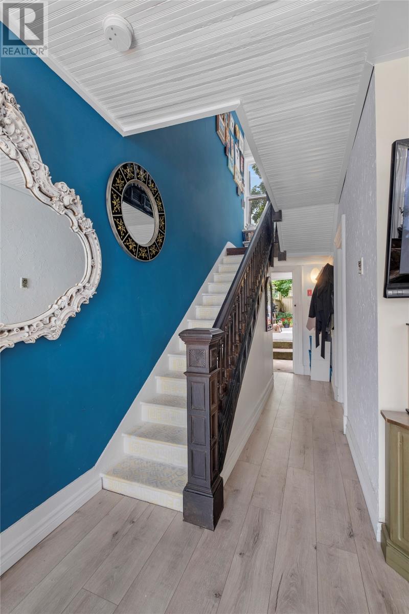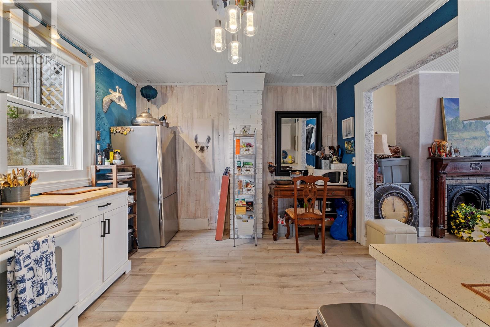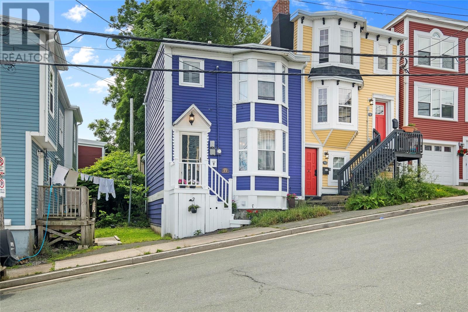 Efficient stylish character home looking for someone who's just as unique! Whether you're someone who doesn't want just another cookie cutter home, or who has an eye for AirB&B opportunities, this might be just the home for you. From the first glance you know this house isn't going to be boring. The purple pop of the siding color screams traditional NL - making even Jellybean row jealous. Once inside you have all the character you'd expect. From the original staircase handrail, high freshly painted ceilings, decorative fireplaces and quirky extras. There's a lovely open concept living room and kitchen area. There's a new kitchen cabinet, new fridge, an accent wall, and of course the owners decorative choices add to the ambiance. From the main floor you can walk right out into the private fenced yard with back patio. Lounge with coffee in hand in this secluded oasis or use your imagination, and gardening skills, to create your own paradise. Back in and up the stairs you'll pass an abundance of natural light streaming in through the large back windows. There's a generous sized primary bedroom and the second bedroom has another wonderful decorative fireplace. The full bathroom with ceramic tile is at the end of the hall. Venture downstairs and you'd expect to find a scary crawl space out of some Hallowe'en movie. But not here. We've got laundry and a storage room, furnace and electrical panel, all in a clean functional space which is especially appreciated in our downtown properties. Efficient and stylish, as mentioned before, are the name of the game here. Not to mention that all of this is just a 2 minute drive or 10 minute walk from all the amenities Come visit today! (id:22211)