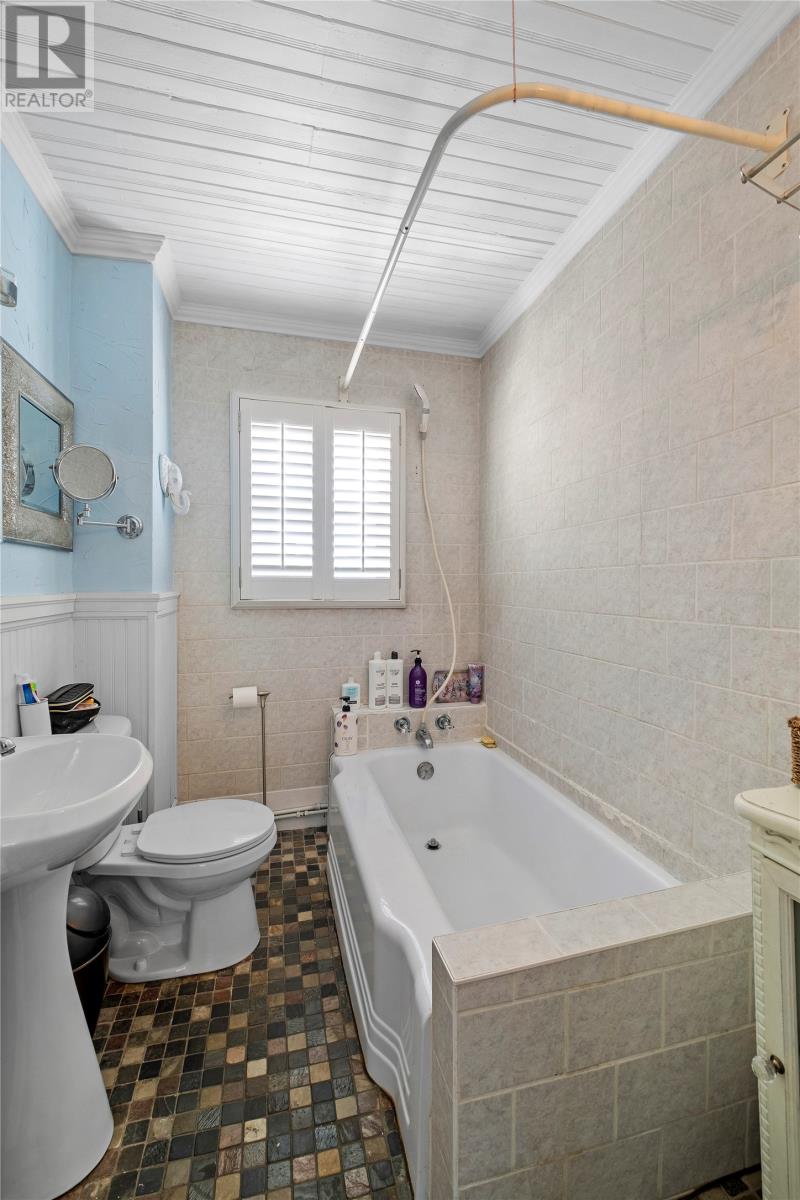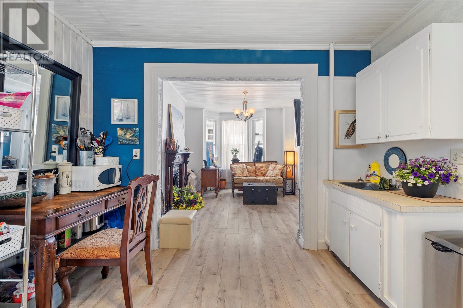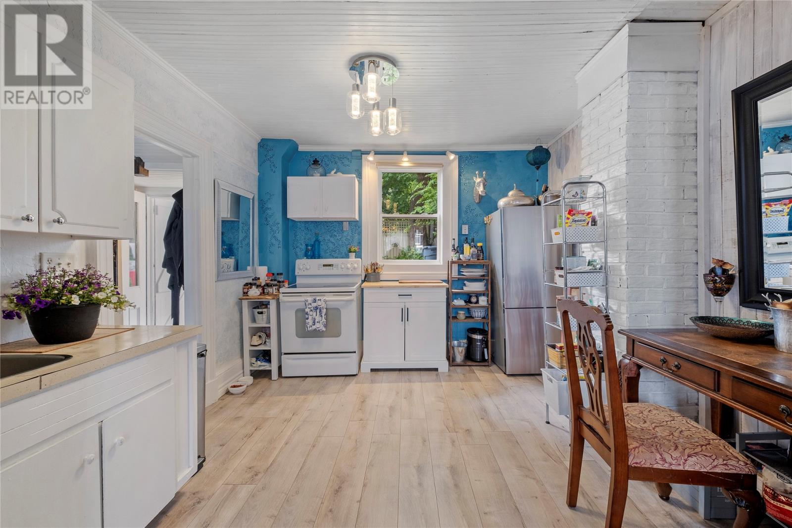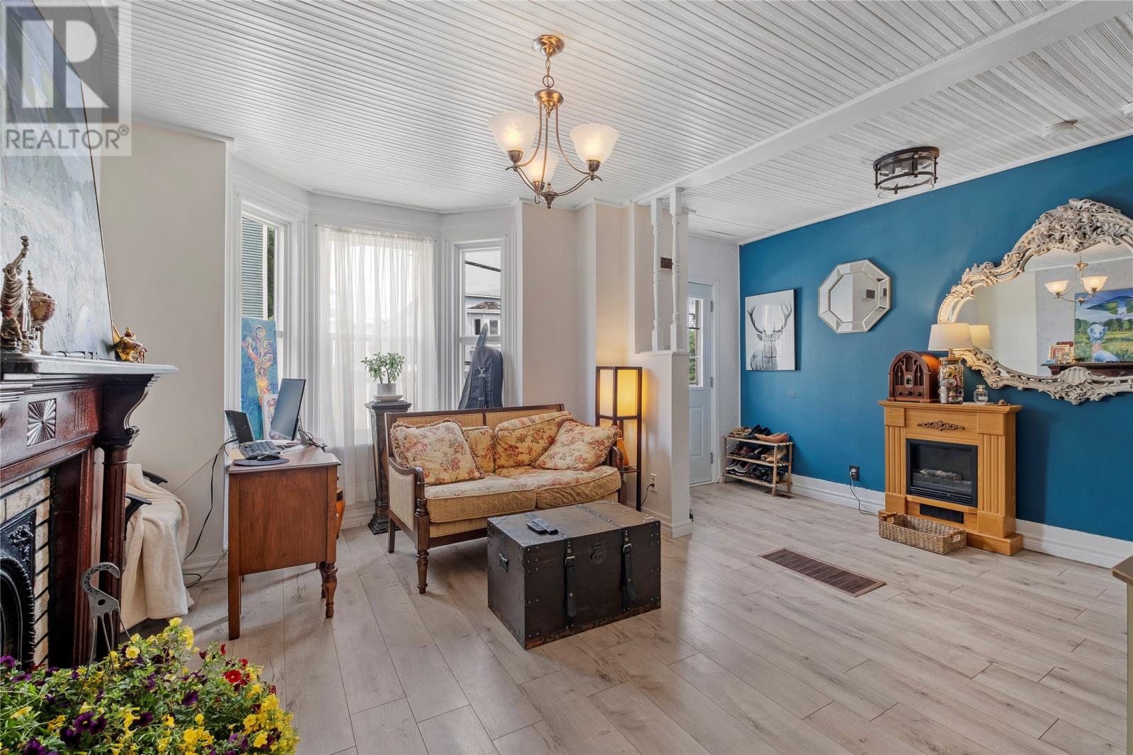 Efficient stylish character home looking for someone who's just as unique! Whether you're someone who doesn't want just another cookie cutter home, or who has an eye for AirB&B opportunities, this might be just the home for you. From the first glance you know this house isn't going to be boring. The purple pop of the siding color screams traditional NL - making even Jellybean row jealous. Once inside you have all the character you'd expect. From the original staircase handrail, high freshly painted ceilings, decorative fireplaces and quirky extras. There's a lovely open concept living room and kitchen area. There's a new kitchen cabinet, new fridge, an accent wall, and of course the owners decorative choices add to the ambiance. From the main floor you can walk right out into the private fenced yard with back patio. Lounge with coffee in hand in this secluded oasis or use your imagination, and gardening skills, to create your own paradise. Back in and up the stairs you'll pass an abundance of natural light streaming in through the large back windows. There's a generous sized primary bedroom and the second bedroom has another wonderful decorative fireplace. The full bathroom with ceramic tile is at the end of the hall. Venture downstairs and you'd expect to find a scary crawl space out of some Hallowe'en movie. But not here. We've got laundry and a storage room, furnace and electrical panel, all in a clean functional space which is especially appreciated in our downtown properties. Efficient and stylish, as mentioned before, are the name of the game here. Not to mention that all of this is just a 2 minute drive or 10 minute walk from all the amenities Come visit today! (id:22211)