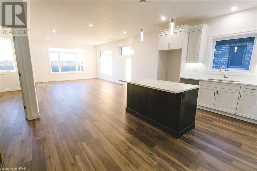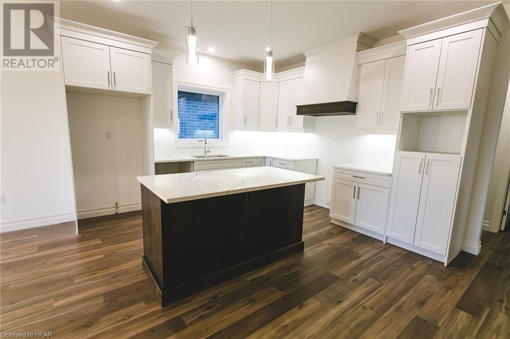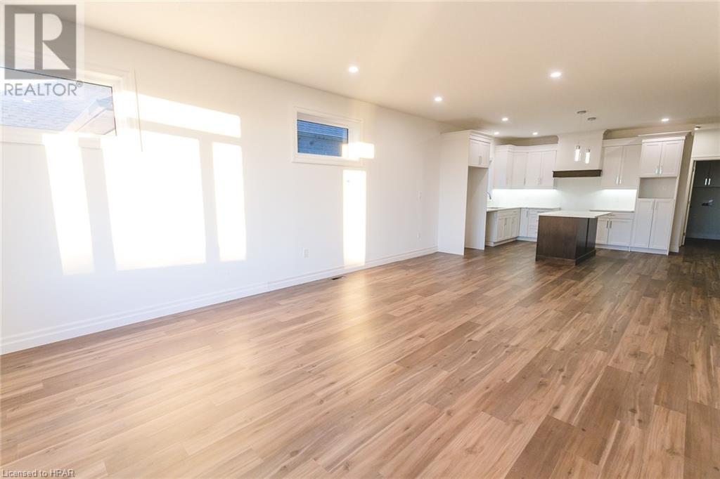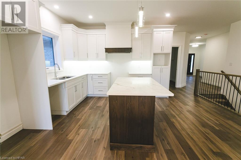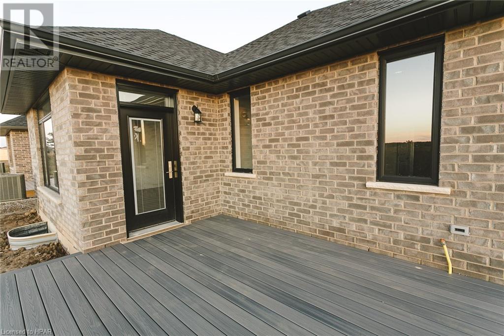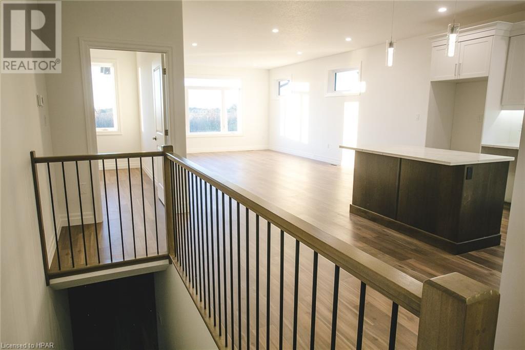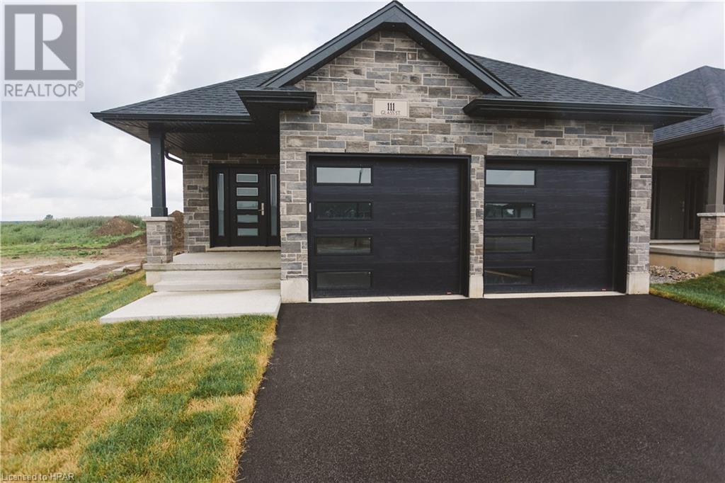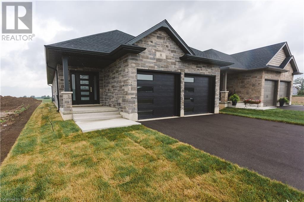 Beautiful Model home Bungalow with stone front and brick sides & backing onto fields in the North end of St. Mary's. Two bedrooms upstairs with another in the finished basement, three full baths, main floor laundry, center kitchen island with solid surface countertops, central air, owned water heater, water softener, and a private 13'-8 x 12' composite deck along with upgrades such as solid surface counters, walk in shower, paved driveway, & sodded yard all complement this beautiful space. Quality built by Larry Otten Contracting. (id:22211)