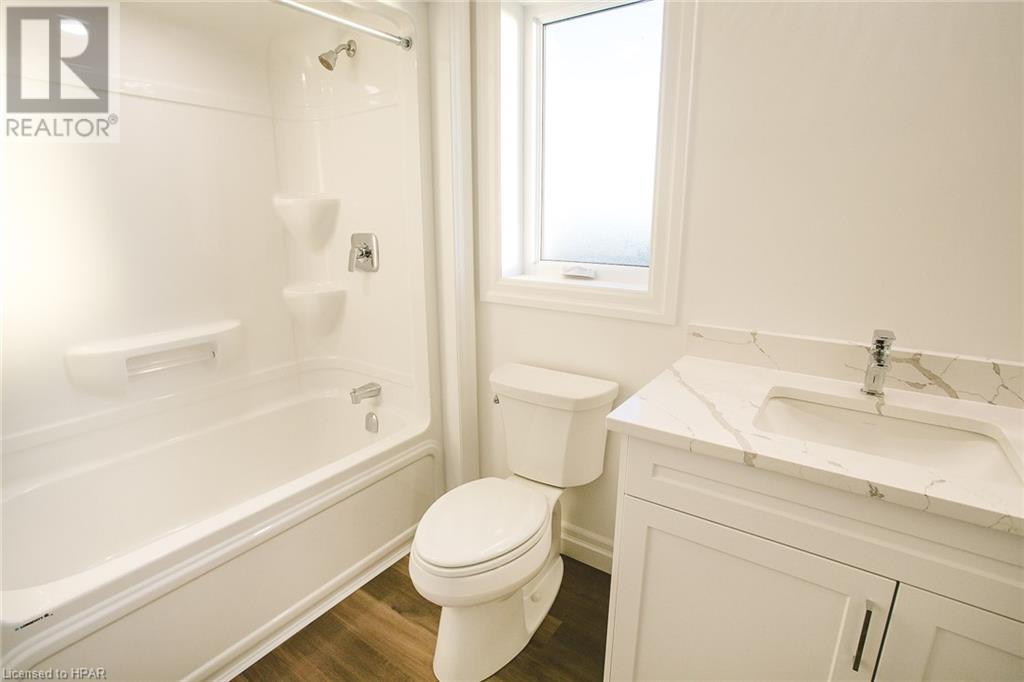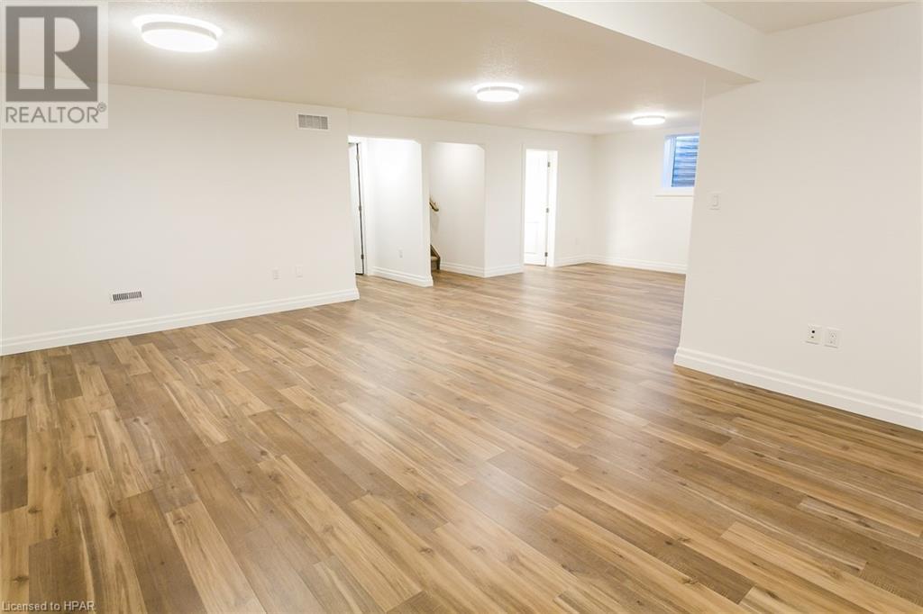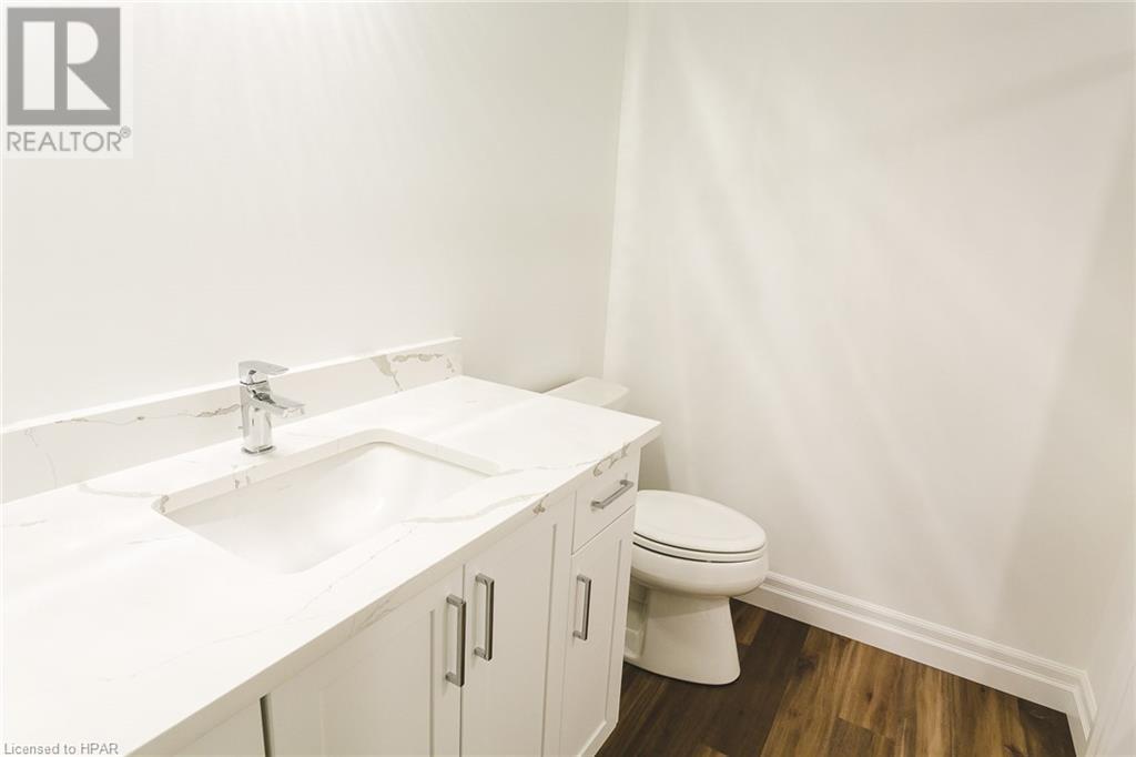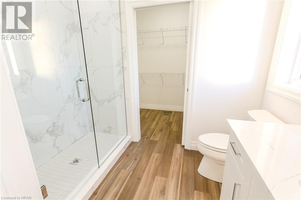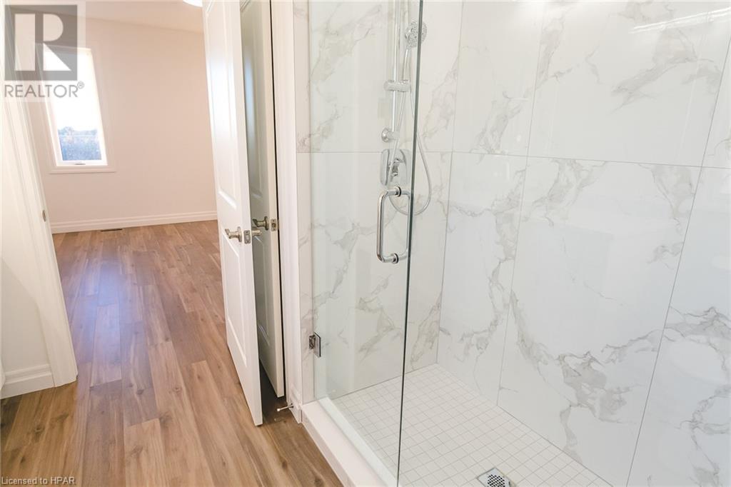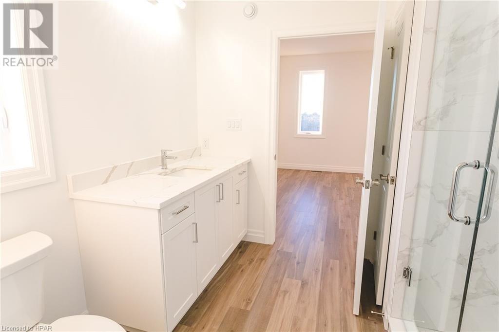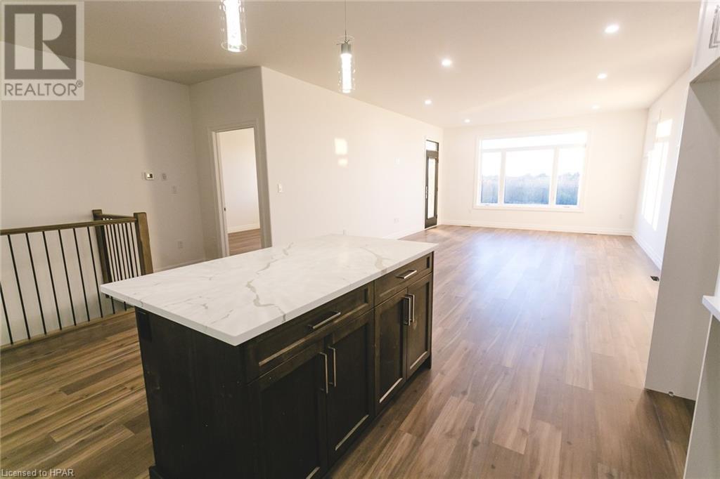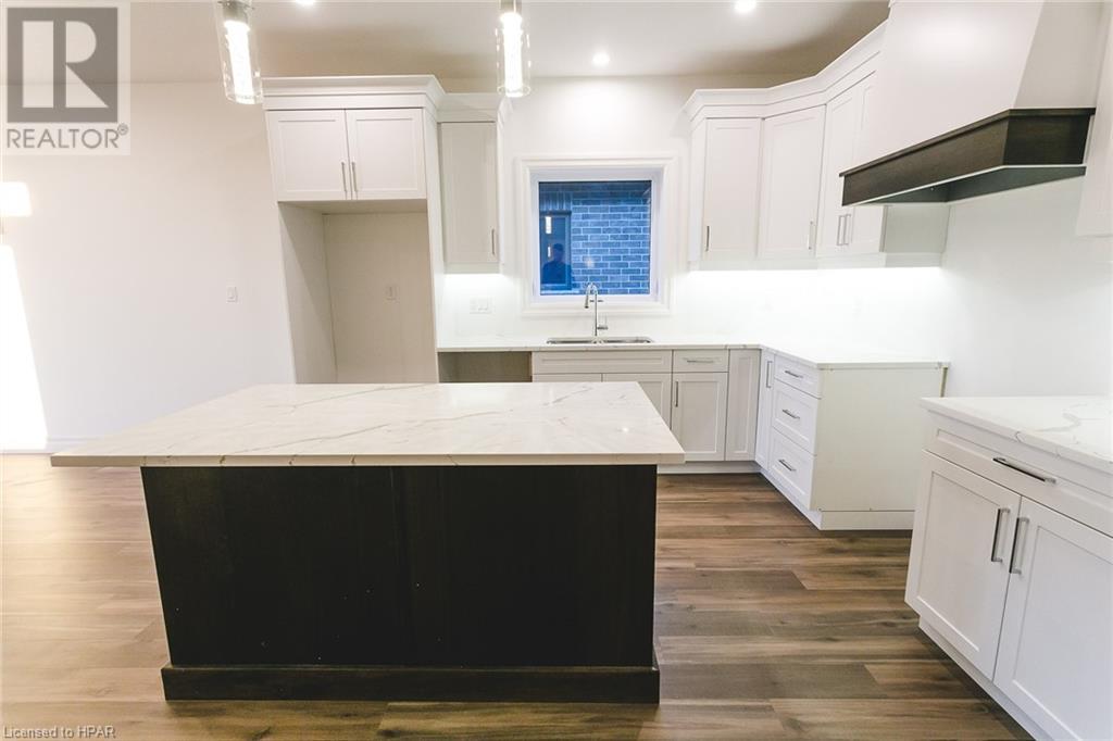 Beautiful Model home Bungalow with stone front and brick sides & backing onto fields in the North end of St. Mary's. Two bedrooms upstairs with another in the finished basement, three full baths, main floor laundry, center kitchen island with solid surface countertops, central air, owned water heater, water softener, and a private 13'-8 x 12' composite deck along with upgrades such as solid surface counters, walk in shower, paved driveway, & sodded yard all complement this beautiful space. Quality built by Larry Otten Contracting. (id:22211)