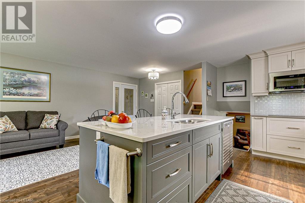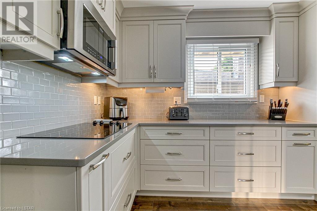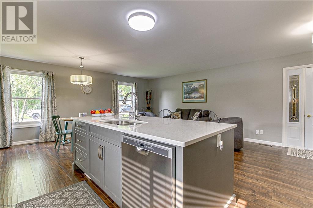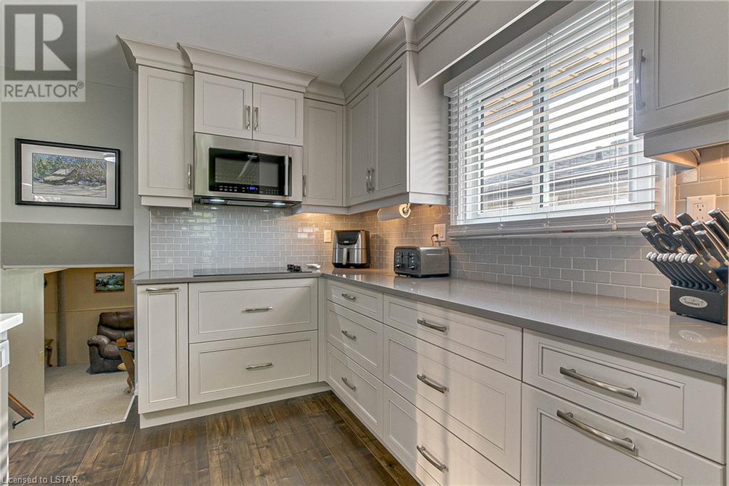 Nestled on a quiet street is this beautifully updated 3 bedroom, 1.5 bathroom back-split home on Erinlea Drive. Step into the heart of the home and be amazed by the open concept living/dining space with brand new kitchen (GCW) that is sure to inspire your inner chef. Modern design, quartz countertops and stainless steel appliances make this kitchen a standout feature. Natural light pours into the home through the newer vinyl windows, creating a bright and inviting atmosphere throughout. Upstairs, the primary bedroom offers a peaceful retreat with cheater ensuite for added convenience. Two additional well-appointed bedrooms provide ample space for family members, guests, or the flexibility to create a hobby room. The lower level of this home boasts additional living space, including a family room, perfect for movie nights and gatherings, and 2-piece bathroom. You'll also find a convenient office, providing a quiet space for work or study. The basement adds even more value with laundry, utility room, and ample storage space. Enjoy the tranquility of the neighbourhood with a fully fenced backyard, providing privacy and security for all your outdoor activities. Embrace the beauty of nature in the sunroom, a cozy space to relax, read a book with your morning coffee, or evening wine. Located in a family-friendly neighbourhood, this home is close to schools, parks, shopping, and more, making it an ideal location for your growing family. Book your showing today! (id:22211)