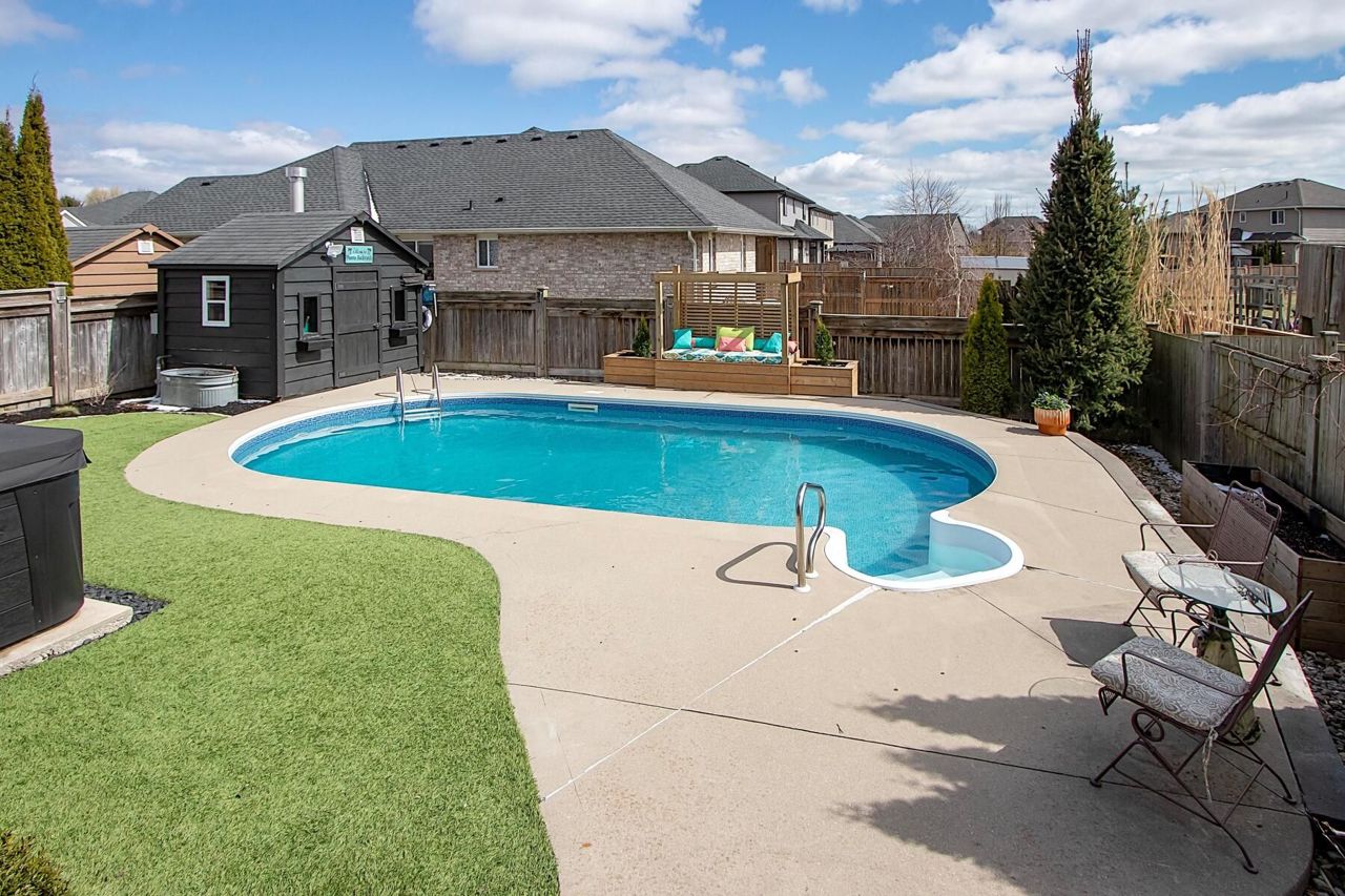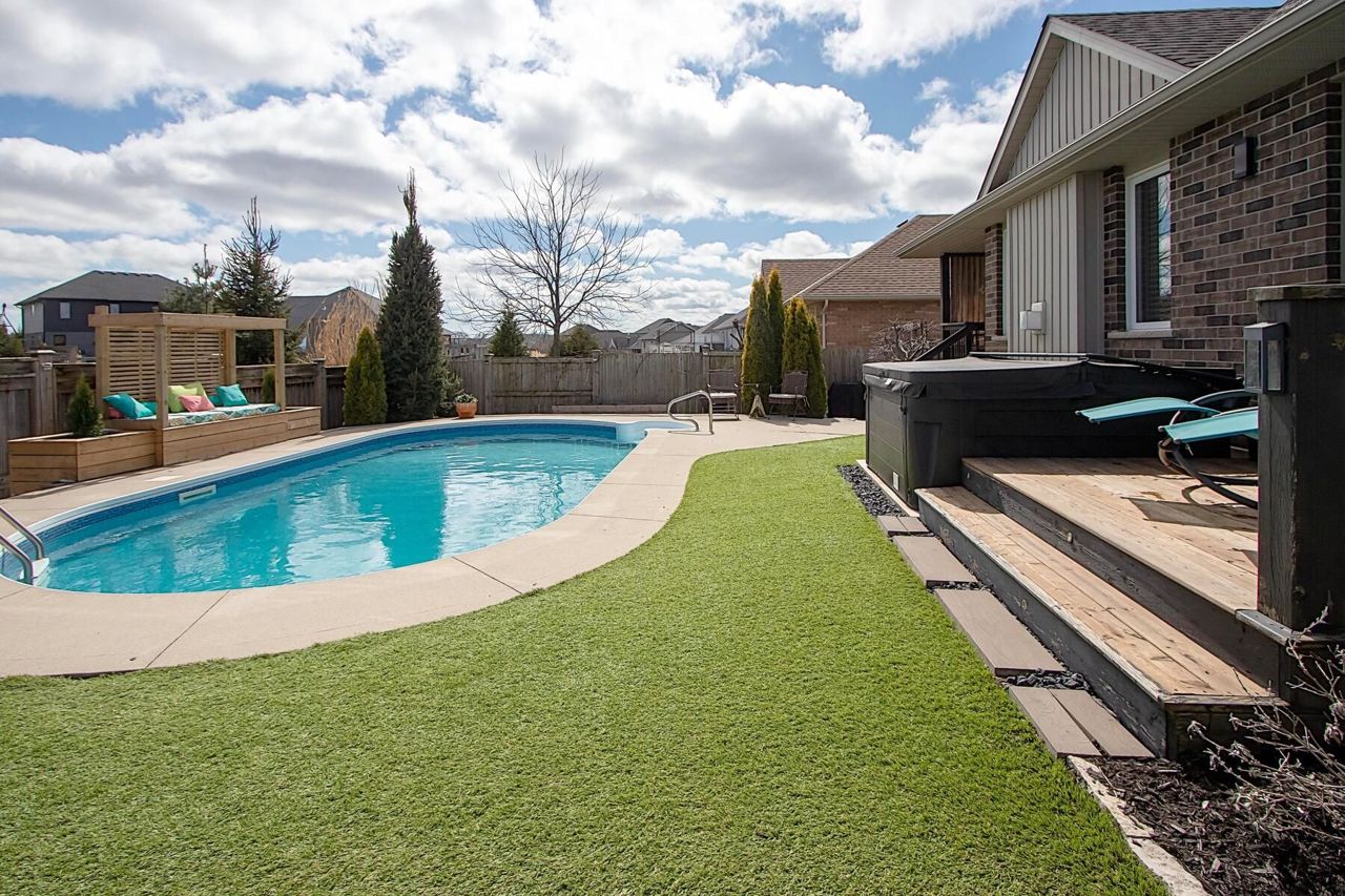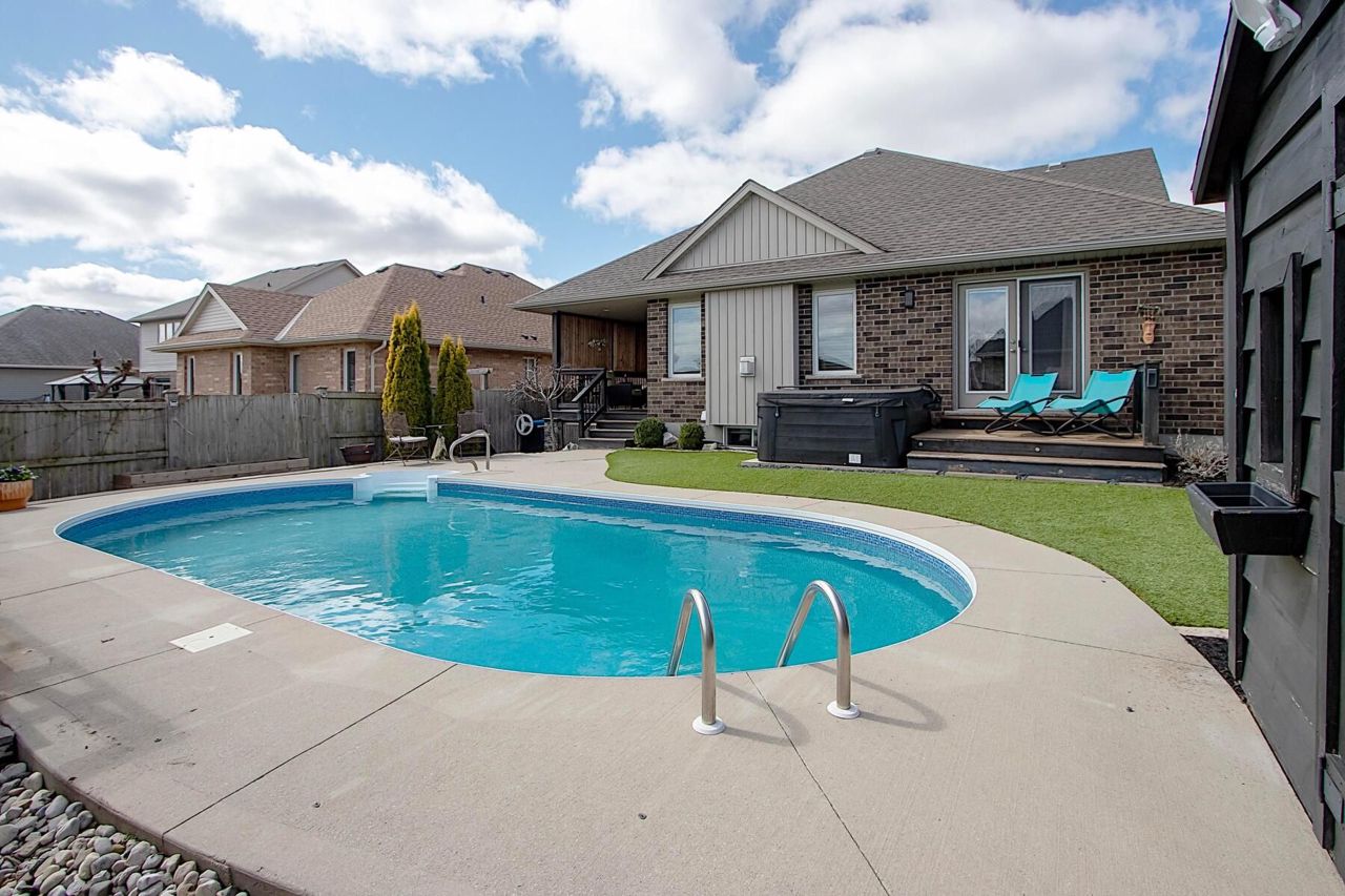 Welcome to 70 Shaw Valley Drive! Well cared for and maintained home in the desirable Shaw Valley community in St. Thomas. The main floor has a fantastic open concept floor plan featuring a gorgeous kitchen with loads of cabinets, large island and walk in pantry. Warm and inviting family room with vaulted ceiling and stunning floor to ceiling gas fireplace. Double car garage enters into laundry room & mudroom with two large closets, sink & counter top. Get ready to entertain in style this summer! Cozy, covered deck off kitchen provides shade and leads to a beautiful backyard oasis with a heated inground pool, concrete patio, custom built seating, hot tub & low maintenance artificial turf. Primary bedroom with ensuite bath & patio doors for easy access to the backyard! Generous sized second main floor bedroom. Lower level features lovely spacious family room with another gas fireplace, a third bedroom and a 3 piece bathroom. Located close to all amenities and only a short drive to London, HWY 401 and Port Stanley!