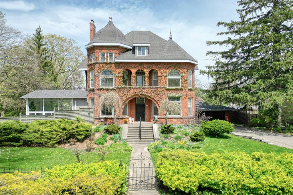 Discover the magic of living in the 1895-built "Trow House," a heritage-designated home in Stratford, Ontario. Predominantly placed in a mature neighbourhood just blocks from the downtown core w/ its shops, restaurants & of course the theater, is a stunning property that has retained much of its original charm & character. The 4-season sunroom offers a newer plus to the impressive home, w/ heated floors & natural light, while the fully fenced corner lot provides plenty of space for outdoor activities & gardening. With over 5500 square feet of finished & above grade living space, & boasting 9 bedrooms & 4 bathrooms, this property is perfect for generational living & work-from-home professionals. Previously occupied by Dame Maggie Smith & built for Thomas Trow, the son of one of Stratford's earliest pioneers, this home is recognized for its Romanesque & Queen Anne Revival architecture. It has a stunning 3-storey tower w/ a conical roof finial & stained glass windows in many of the rooms**Meticulously maintained & mechanically updated by the current family for nearly 40 years. Detached double car garage & plenty of parking, don't miss this rare opportunity to own a unique piece of Stratford's rich history