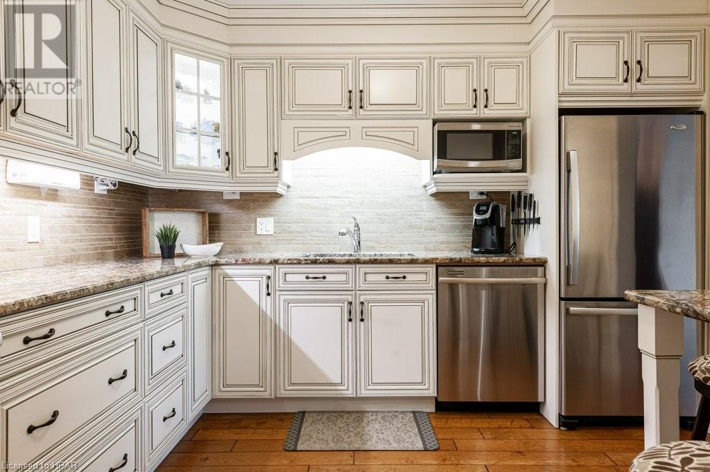 Your search for the perfect Stratford condo will be complete when you walk through the door of The Huntingdon & into this meticulous 2 bedroom, 2 bath unit. The stunning view is the first thing you notice upon entering, as your eye is drawn to panoramic windows in the living room. You’ll also see the hand scraped hardwood floors, walls that are ready for your art collection & there are crown mouldings there to tie the space together. The L-shaped kitchen offers granite countertops, stainless steel appliances & built-in table for dining or additional prep space. The primary bedroom will accommodate your furniture, a sizeable walk-in closet for your wardrobe & a spa-like ensuite with a soaker tub for relaxation. Plus, your guests & family can enjoy their own bedroom & a handy 3-piece bath across the hall. The unit comes with an underground parking spot, so the car can stay parked while you walk about town. And when you’re living on the idyllic banks of the Avon River, you can easily immerse yourself in Stratford’s renowned arts & culture scene - Art in The Park, Summer Music, The Festival Theatre & The Tom Patterson Theatre are all just a stone’s throw away. Do you hear the trumpeter’s call? He’s calling you into 206-30 Front St.! (id:22211)