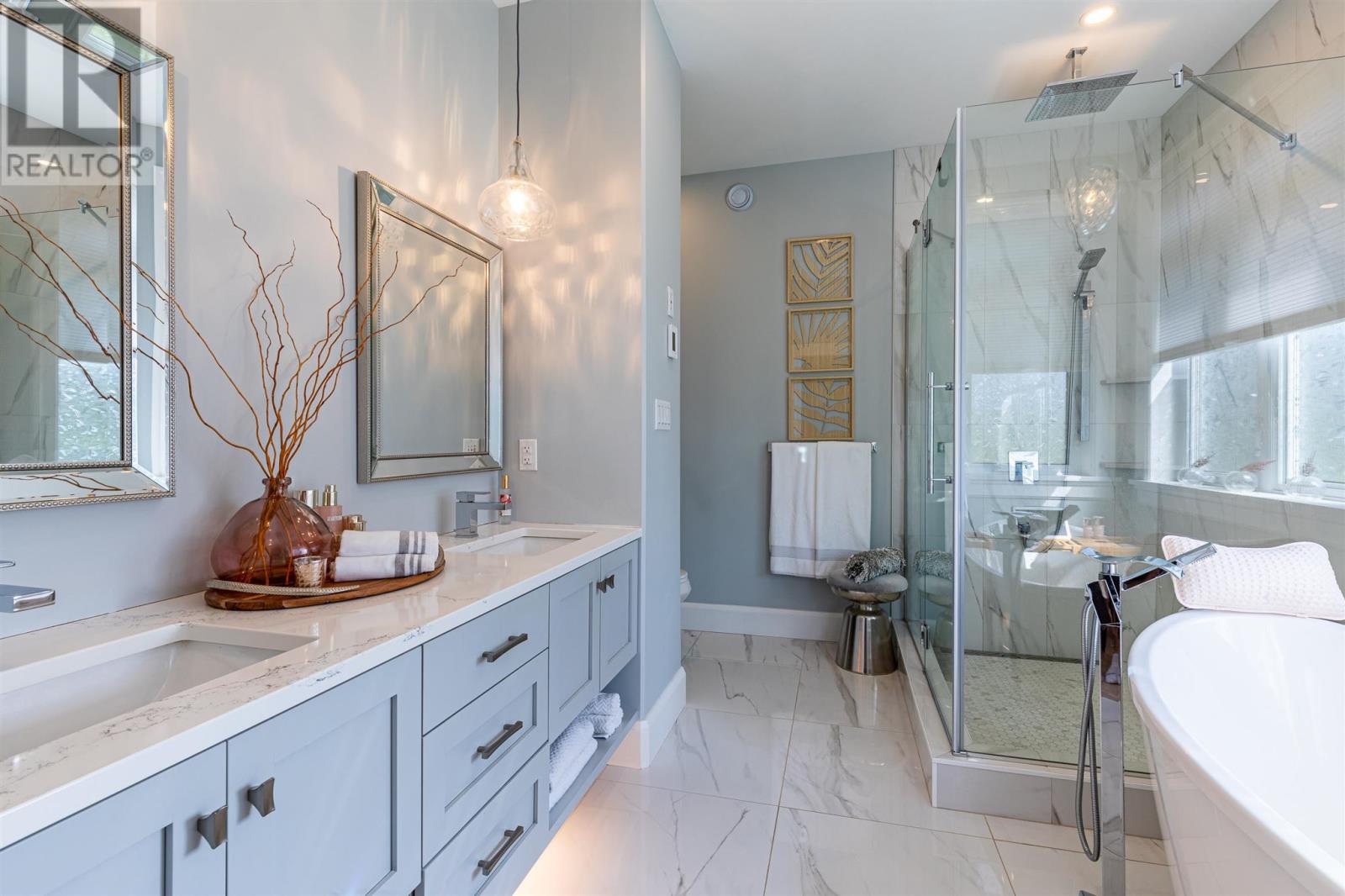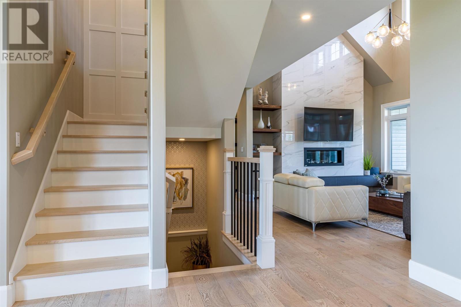 (Video and virtual tour available) Immaculate 2 year old, custom-built home by Burden Construction. Executive style home situated in the highly sought after sub-division of Strawberry Hill. As you enter the front door, you will see the high quality workmanship of this home. A large custom-built open concept kitchen, family room, dining room, breakfast nook and a large butlers pantry. It boasts high quality stainless steel appliances which includes a propane cooking stove, fridge, and dishwasher. The island is breathtaking for you to host family and friends. Finished with high quality quartz countertops. Every detail of this home has been planned out and executed with the highest degree of quality. From the engineered hardwood flooring, stylish feature walls, magnificent marble wall and propane fireplace insert. The master bedroom has 15 feet ceiling with breathtaking master ensuite with soaker tub and customer glass shower. High quality features and exquisite lighting. As we go up the solid Oak staircase to the second level, there are two oversized bedrooms with walk-in closets, the second full bathroom with in floor heating and all bedrooms have independent cooling and heating units for your comfort. The basement has been just completed which features a large media/games room perfect for entertaining guests. Outside you will find a professionally landscaped lot with shrubs, trees and a stone patio, privacy fences and a covered Torrefied Ash Decks with hot tub. Home comes with the balance of the New Home Warranty. All measure are approximate and should be verified if deemed important. Optional package to purchase all furnishings, décor and electronics is $40,000. Listing agent is related to vendor. Property Disclosure Statement completed. (id:22211)