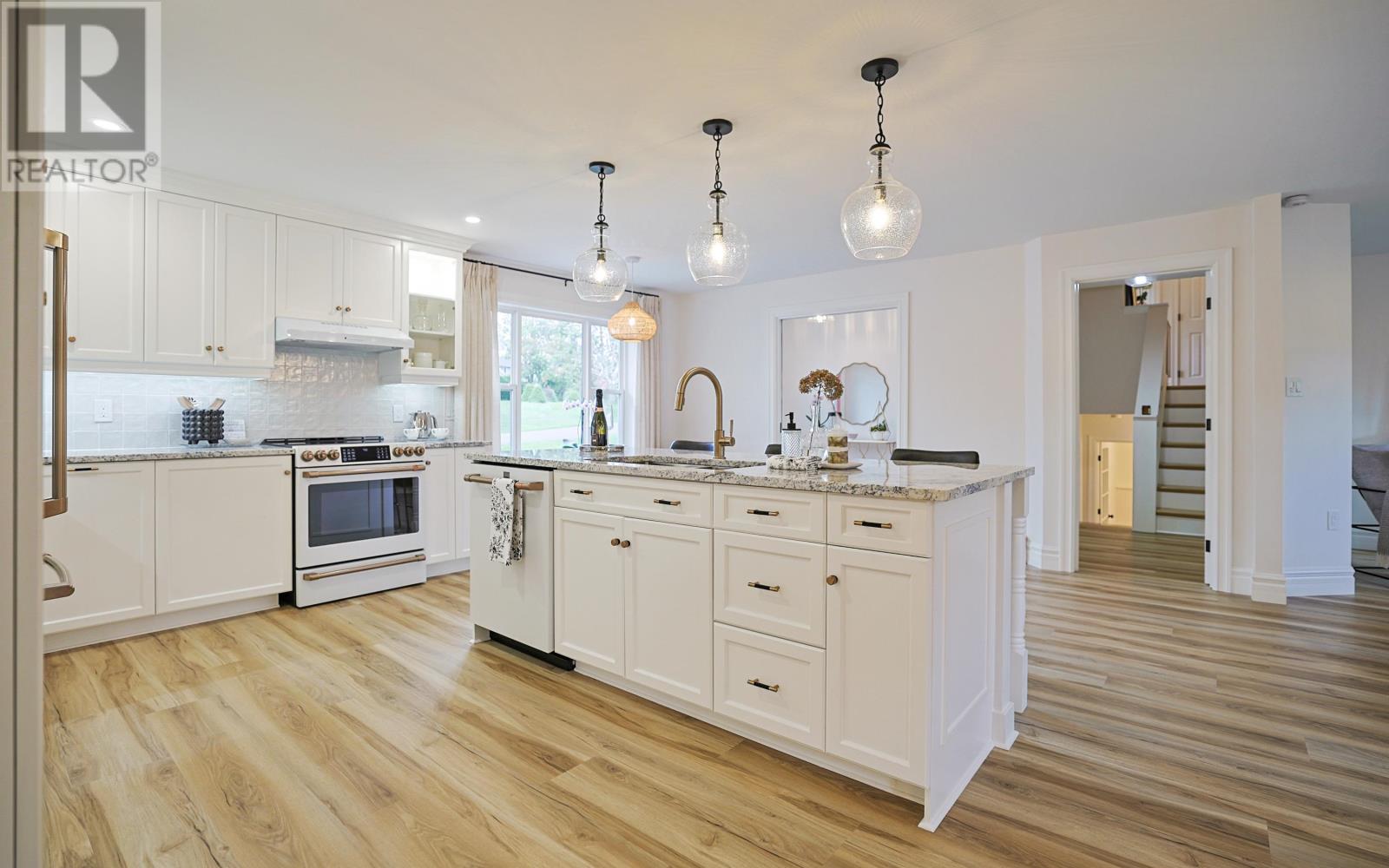 Absolutely stunning completely renovated stylish home in one of the nicest subdivisions in Stratford, a nature lovers dream! This 4 bedroom 4 bathroom home backs on to a totally private yard with access to the water inlet, providing a gorgeous park like setting. The main floor features an open concept living space, modern kitchen with granite counters, island, GE Cafe appliances and stylish fixtures. There is a spacious mudroom and half bath plus fully renovated large garage. Upstairs there are three bedrooms including primary suite with walk in closet and ensuite. Lower level features a family room with walk out plus additional bedroom and full bath including soaker tub and laundry. There is also a fully sound proofed media room perfect for family movie nights. Updates include enhanced energy efficiency with new heat pumps, furnace, insulation and window updates. Electrical updated to 200 amp service, new thermostats and wiring, all new eves and underground downspouts, new custom decks backing on to the waterview lot with walking paths and access. Move in ready, one of a kind home. All measurements approximate. (id:22211)