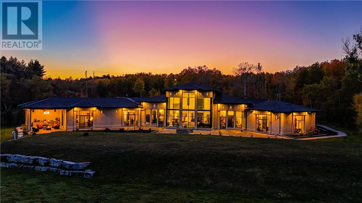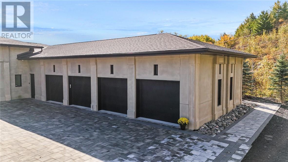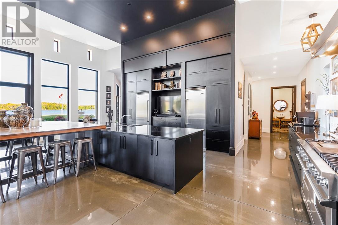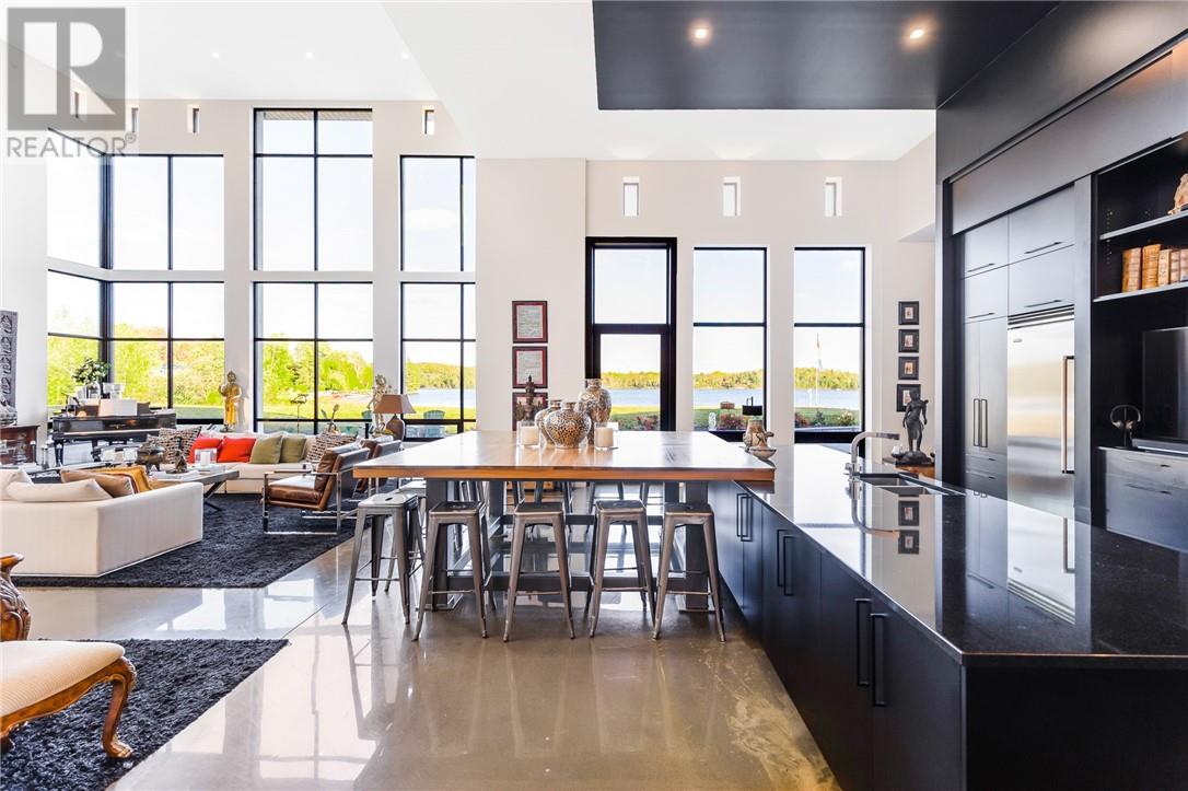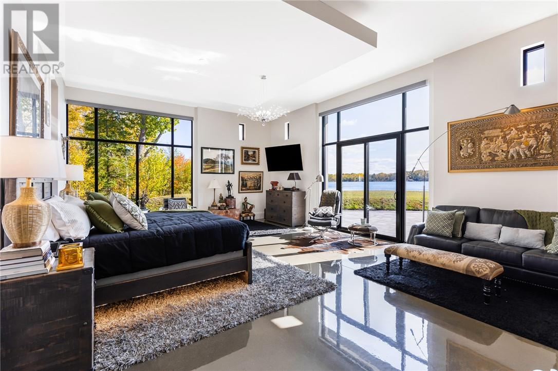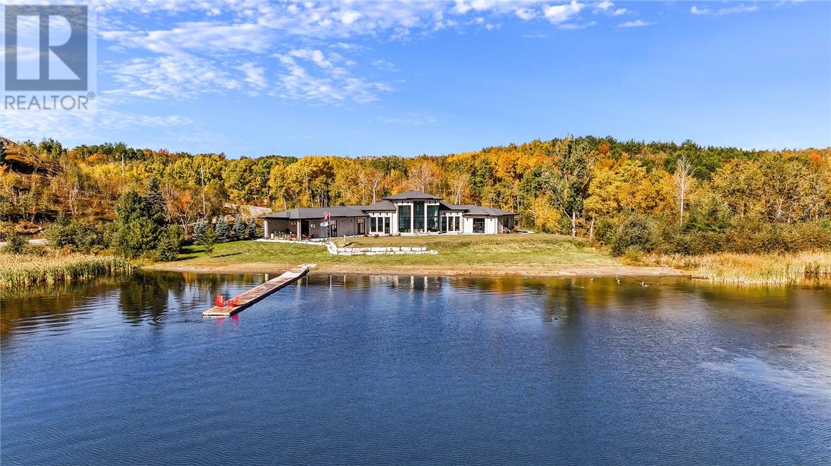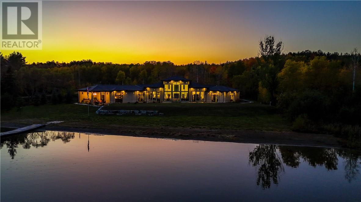 Welcome to 1221 Keast Drive, an extraordinary 7,900 sq ft, single-level waterfront estate set along the shores of Ramsey Lake. This luxurious property perfectly balances elegance, privacy, and convenience, offering a prime location just a short walk from the Medical School, University, and HSN. Spanning nearly two acres of level land, the estate features an impressive 800 ft of pristine water frontage, including a private 200 ft sand beach. Step inside to the grand great room, where 24 ft ceilings and expansive floor-to-ceiling windows flood the space with natural light and provide stunning views of the lake. The gourmet kitchen is a chef’s dream, with 16 ft ceilings, custom cabinetry by Trandz Kitchens, and top-of-the-line commercial appliances. A butler’s kitchen adds functionality, ideal for entertaining or daily use. The home’s layout includes six generously sized bedrooms, three full bathrooms, and two powder rooms. The primary suite serves as a private retreat, offering panoramic views of the lake, a spa-like ensuite and a walk-in closet. A dedicated theatre room with stadium seating offers the perfect movie night experience. The rec room and bar seamlessly lead to an outdoor kitchen, making indoor-outdoor living effortless. Additional features include a laundry room with two washers and dryers, two mechanical rooms housing all essential systems, and a state-of-the-art fire suppression system. The home is constructed with premium Avac Beton architectural panels from Quebec, ensuring durability and style. Designed by renowned architect Roch Belair, this estate is a modern masterpiece. A 1,800 sq ft heated garage provides ample storage for vehicles and equipment. An invisible fence provides security for pets, while two large humidifiers maintain balanced indoor humidity levels during the winter months. 1221 Keast Drive represents a rare opportunity to own an architectural gem in one of Sudbury’s most prestigious and sought-after locations. (id:61201)
