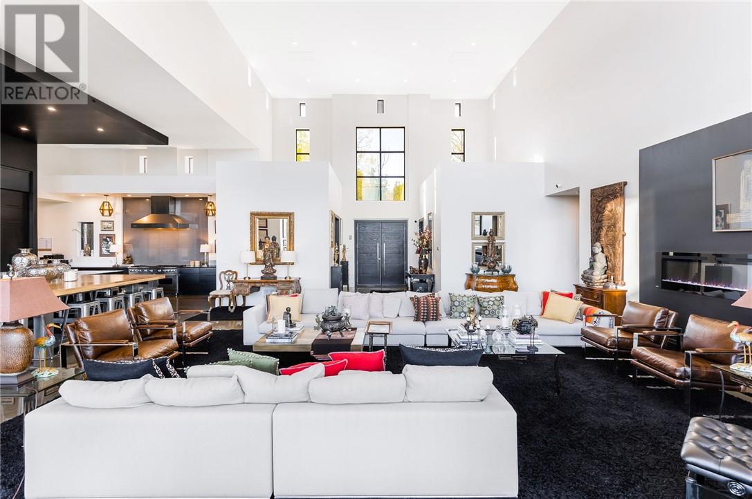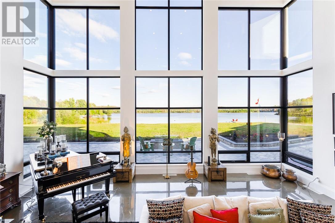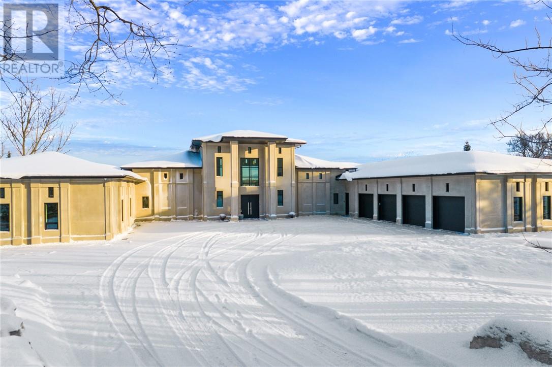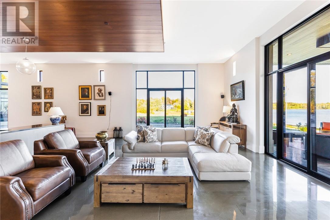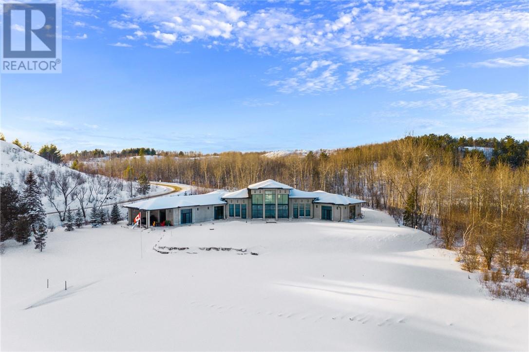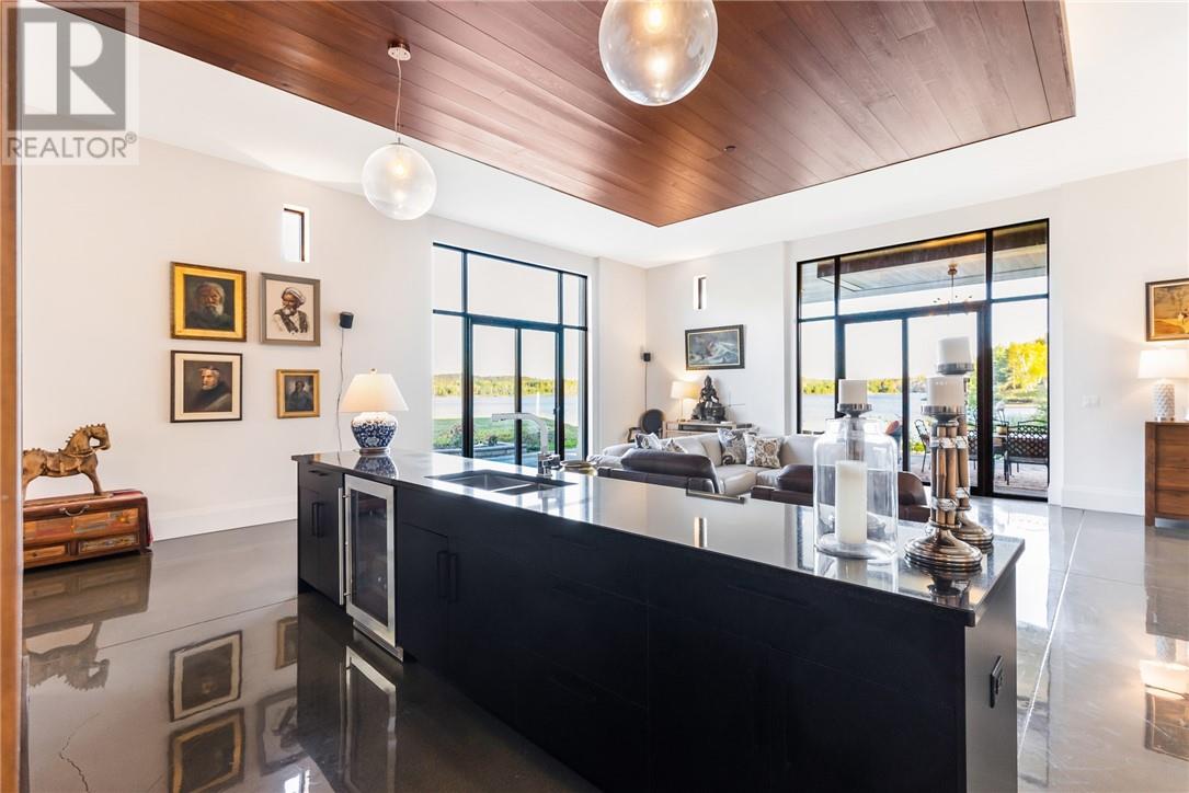 Welcome to 1221 Keast Drive, an extraordinary 7,900 sq ft, single-level waterfront estate set along the shores of Ramsey Lake. This luxurious property perfectly balances elegance, privacy, and convenience, offering a prime location just a short walk from the Medical School, University, and HSN. Spanning nearly two acres of level land, the estate features an impressive 800 ft of pristine water frontage, including a private 200 ft sand beach. Step inside to the grand great room, where 24 ft ceilings and expansive floor-to-ceiling windows flood the space with natural light and provide stunning views of the lake. The gourmet kitchen is a chef’s dream, with 16 ft ceilings, custom cabinetry by Trandz Kitchens, and top-of-the-line commercial appliances. A butler’s kitchen adds functionality, ideal for entertaining or daily use. The home’s layout includes six generously sized bedrooms, three full bathrooms, and two powder rooms. The primary suite serves as a private retreat, offering panoramic views of the lake, a spa-like ensuite and a walk-in closet. A dedicated theatre room with stadium seating offers the perfect movie night experience. The rec room and bar seamlessly lead to an outdoor kitchen, making indoor-outdoor living effortless. Additional features include a laundry room with two washers and dryers, two mechanical rooms housing all essential systems, and a state-of-the-art fire suppression system. The home is constructed with premium Avac Beton architectural panels from Quebec, ensuring durability and style. Designed by renowned architect Roch Belair, this estate is a modern masterpiece. A 1,800 sq ft heated garage provides ample storage for vehicles and equipment. An invisible fence provides security for pets, while two large humidifiers maintain balanced indoor humidity levels during the winter months. 1221 Keast Drive represents a rare opportunity to own an architectural gem in one of Sudbury’s most prestigious and sought-after locations. (id:61201)