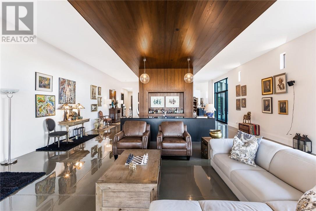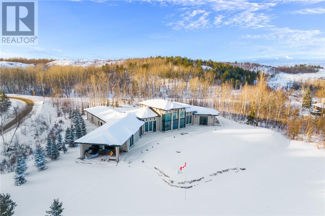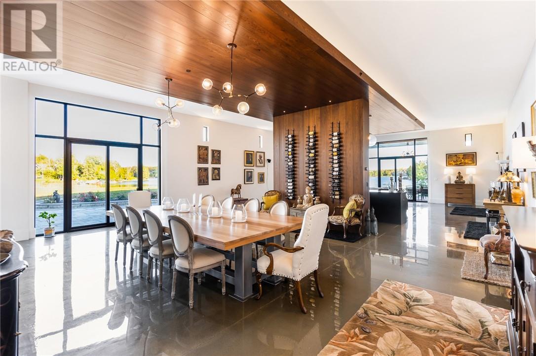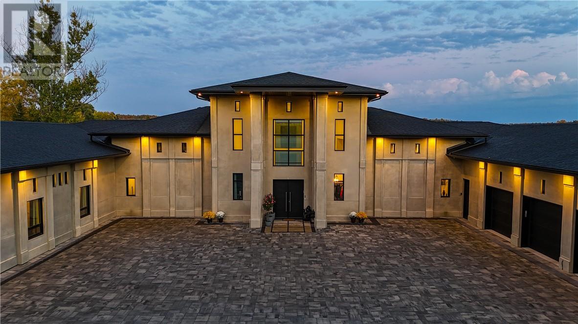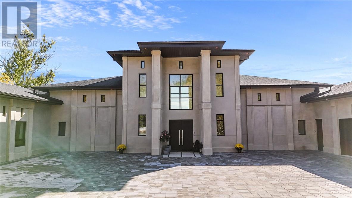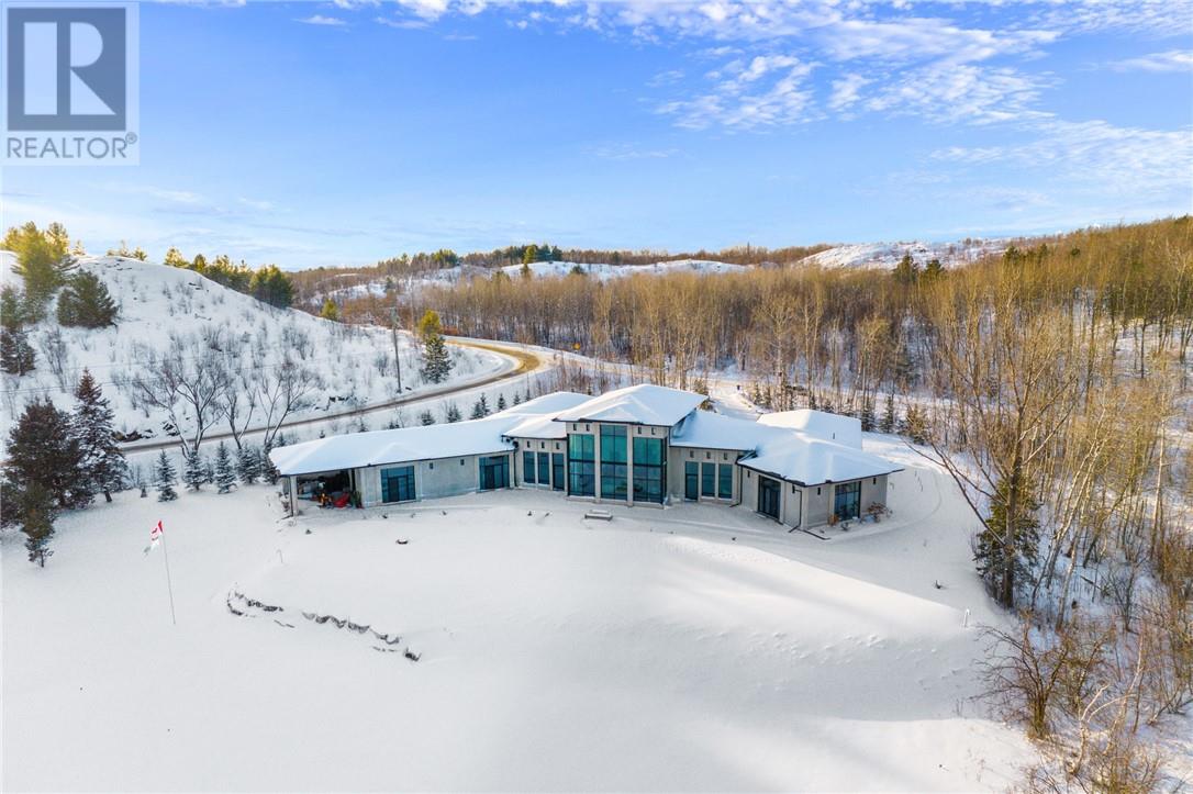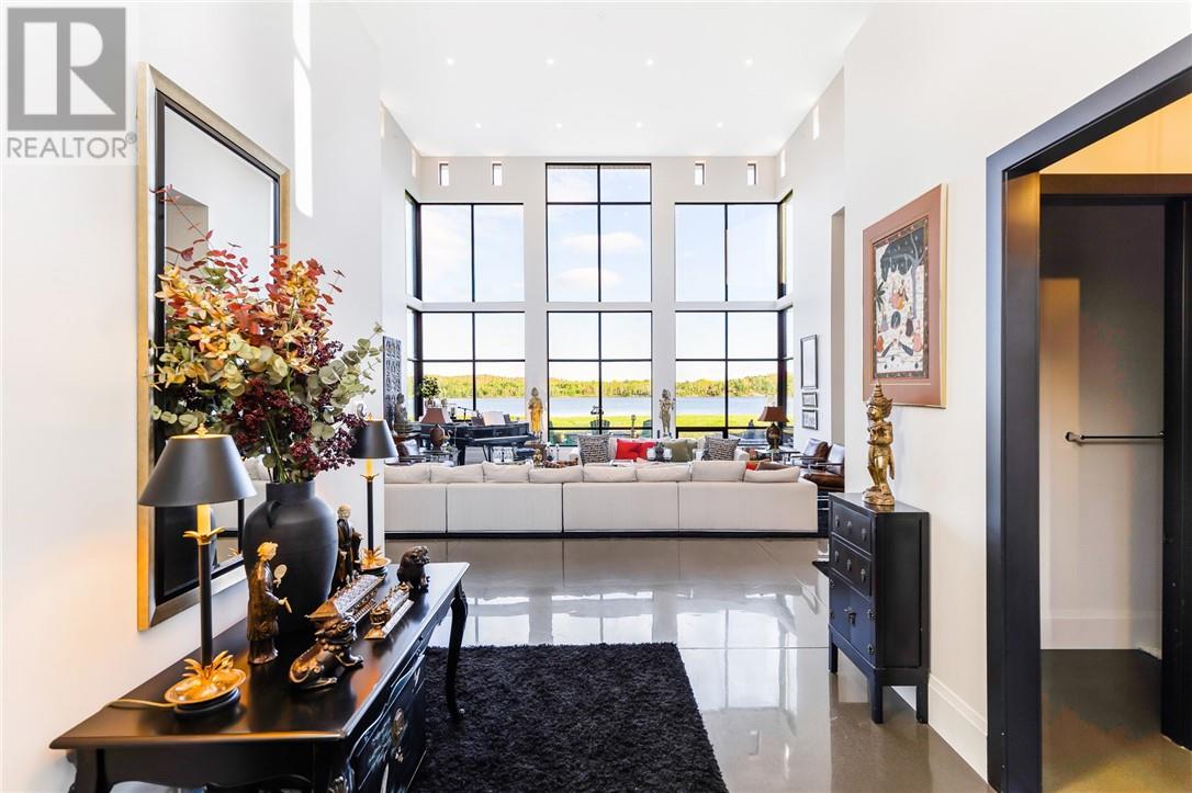 Welcome to 1221 Keast Drive, an extraordinary 7,900 sq ft, single-level waterfront estate set along the shores of Ramsey Lake. This luxurious property perfectly balances elegance, privacy, and convenience, offering a prime location just a short walk from the Medical School, University, and HSN. Spanning nearly two acres of level land, the estate features an impressive 800 ft of pristine water frontage, including a private 200 ft sand beach. Step inside to the grand great room, where 24 ft ceilings and expansive floor-to-ceiling windows flood the space with natural light and provide stunning views of the lake. The gourmet kitchen is a chef’s dream, with 16 ft ceilings, custom cabinetry by Trandz Kitchens, and top-of-the-line commercial appliances. A butler’s kitchen adds functionality, ideal for entertaining or daily use. The home’s layout includes six generously sized bedrooms, three full bathrooms, and two powder rooms. The primary suite serves as a private retreat, offering panoramic views of the lake, a spa-like ensuite and a walk-in closet. A dedicated theatre room with stadium seating offers the perfect movie night experience. The rec room and bar seamlessly lead to an outdoor kitchen, making indoor-outdoor living effortless. Additional features include a laundry room with two washers and dryers, two mechanical rooms housing all essential systems, and a state-of-the-art fire suppression system. The home is constructed with premium Avac Beton architectural panels from Quebec, ensuring durability and style. Designed by renowned architect Roch Belair, this estate is a modern masterpiece. A 1,800 sq ft heated garage provides ample storage for vehicles and equipment. An invisible fence provides security for pets, while two large humidifiers maintain balanced indoor humidity levels during the winter months. 1221 Keast Drive represents a rare opportunity to own an architectural gem in one of Sudbury’s most prestigious and sought-after locations. (id:61201)