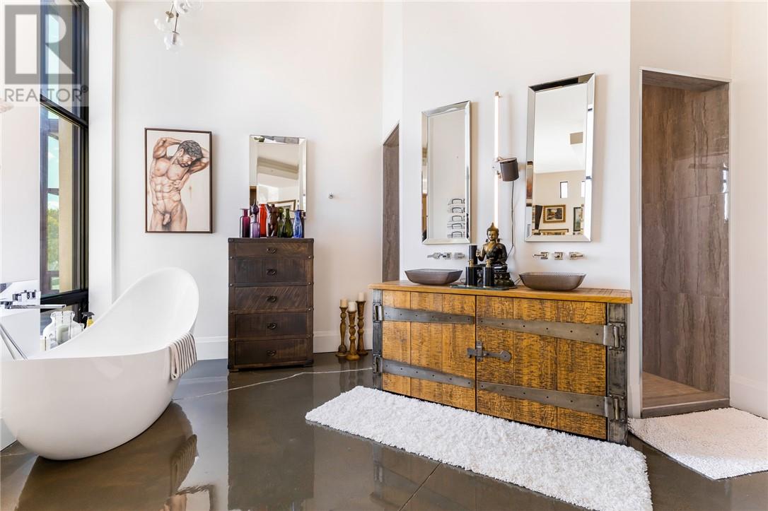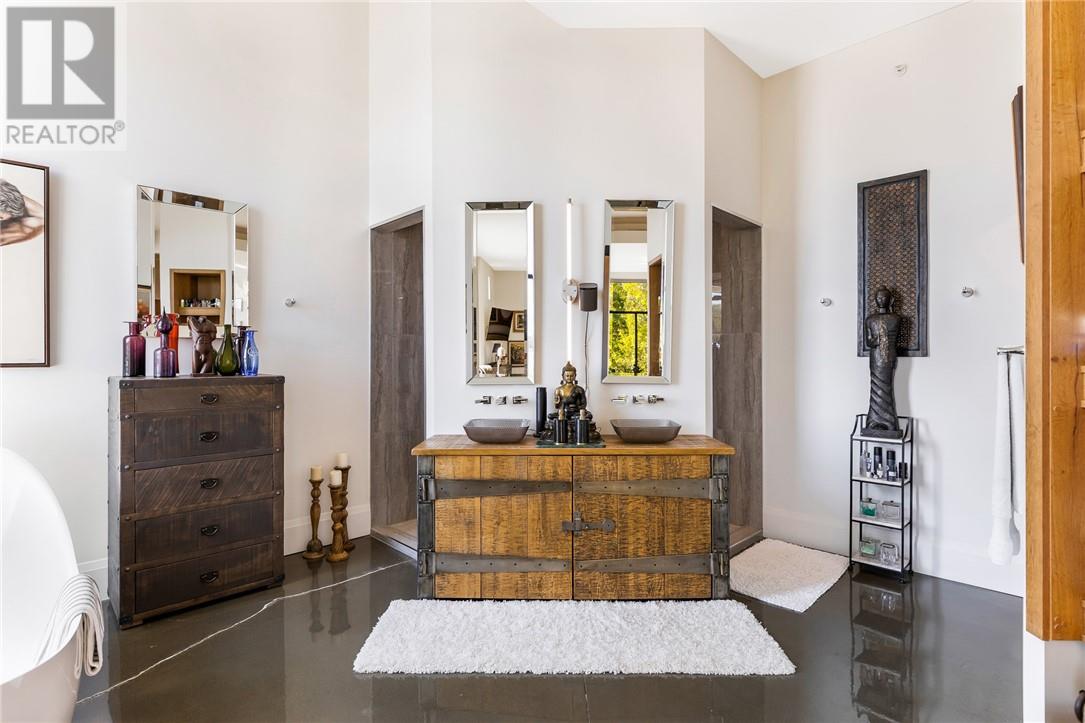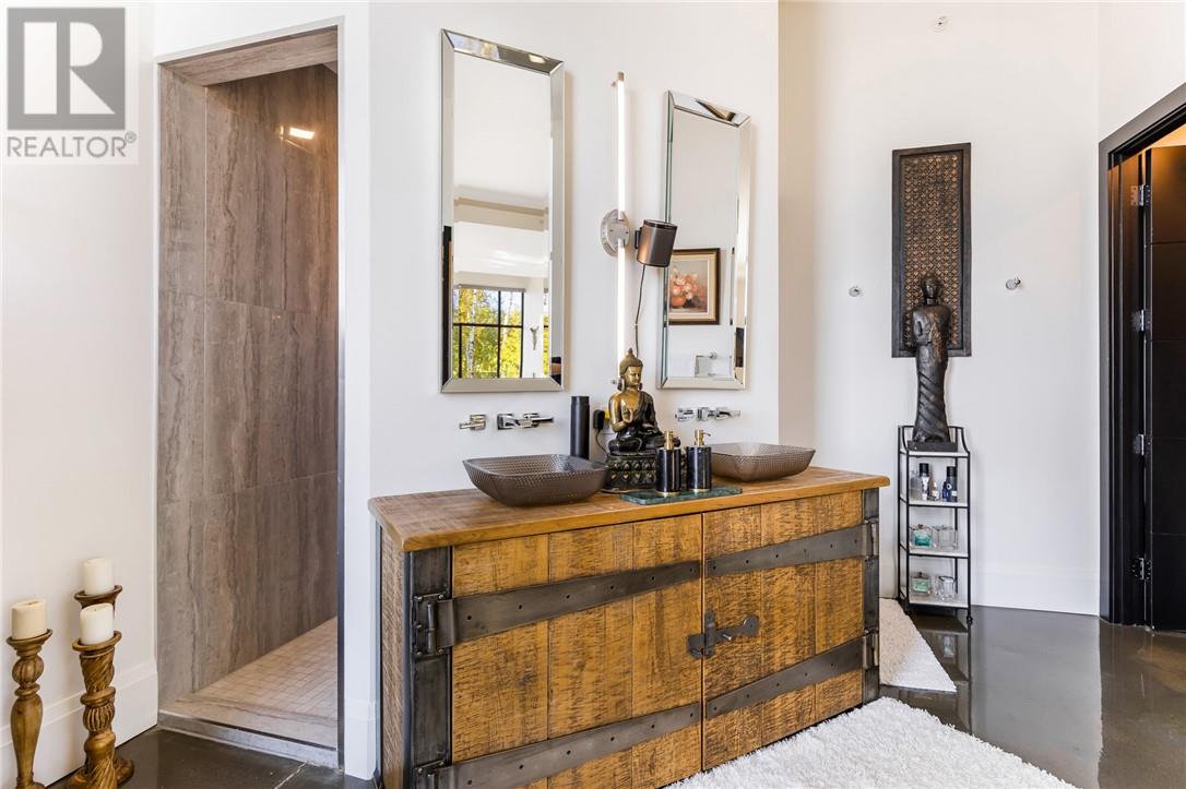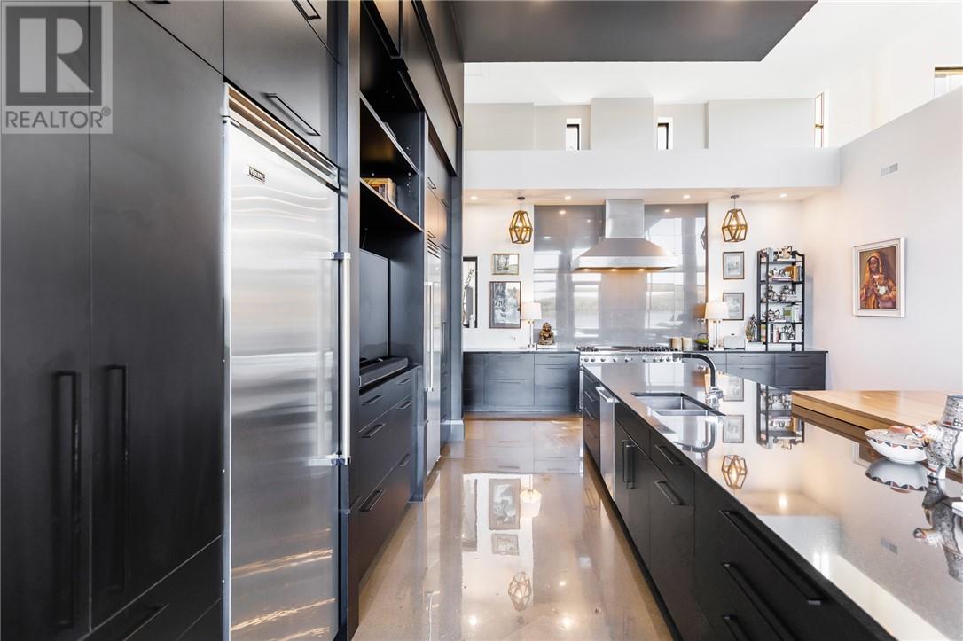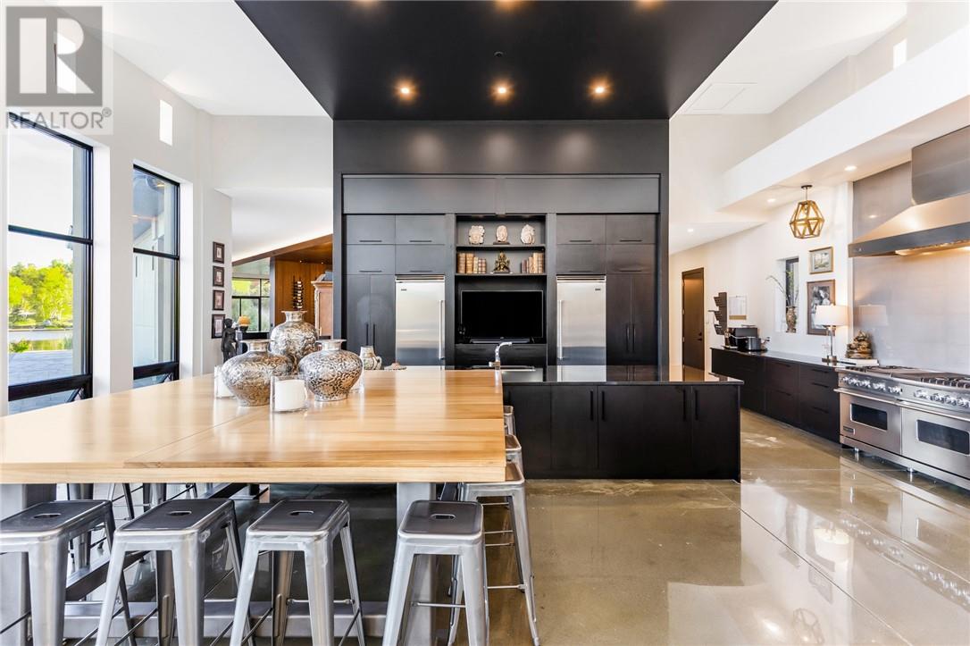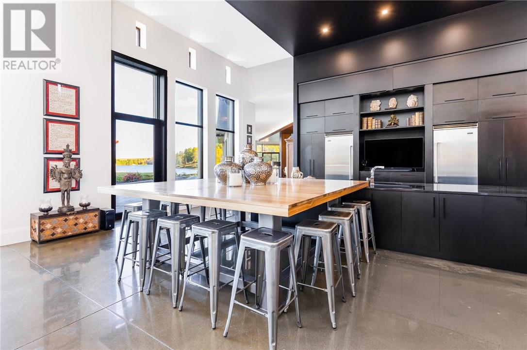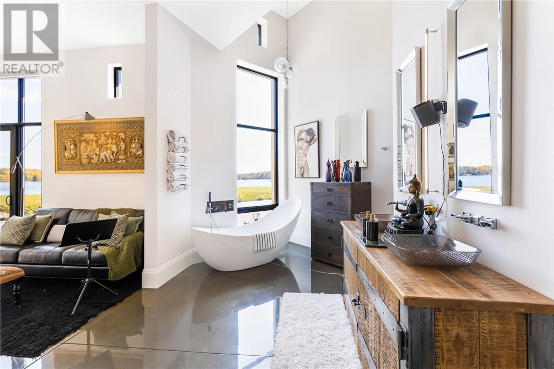 Welcome to 1221 Keast Drive, an extraordinary 7,900 sq ft, single-level waterfront estate set along the shores of Ramsey Lake. This luxurious property perfectly balances elegance, privacy, and convenience, offering a prime location just a short walk from the Medical School, University, and HSN. Spanning nearly two acres of level land, the estate features an impressive 800 ft of pristine water frontage, including a private 200 ft sand beach. Step inside to the grand great room, where 24 ft ceilings and expansive floor-to-ceiling windows flood the space with natural light and provide stunning views of the lake. The gourmet kitchen is a chef’s dream, with 16 ft ceilings, custom cabinetry by Trandz Kitchens, and top-of-the-line commercial appliances. A butler’s kitchen adds functionality, ideal for entertaining or daily use. The home’s layout includes six generously sized bedrooms, three full bathrooms, and two powder rooms. The primary suite serves as a private retreat, offering panoramic views of the lake, a spa-like ensuite and a walk-in closet. A dedicated theatre room with stadium seating offers the perfect movie night experience. The rec room and bar seamlessly lead to an outdoor kitchen, making indoor-outdoor living effortless. Additional features include a laundry room with two washers and dryers, two mechanical rooms housing all essential systems, and a state-of-the-art fire suppression system. The home is constructed with premium Avac Beton architectural panels from Quebec, ensuring durability and style. Designed by renowned architect Roch Belair, this estate is a modern masterpiece. A 1,800 sq ft heated garage provides ample storage for vehicles and equipment. An invisible fence provides security for pets, while two large humidifiers maintain balanced indoor humidity levels during the winter months. 1221 Keast Drive represents a rare opportunity to own an architectural gem in one of Sudbury’s most prestigious and sought-after locations. (id:61201)