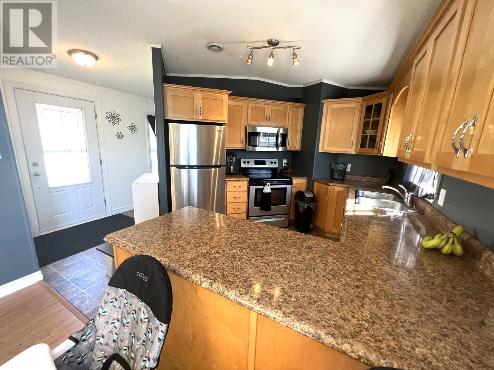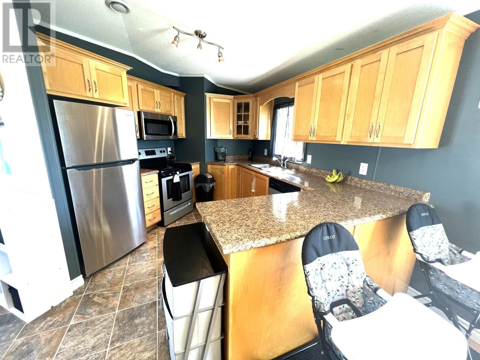 This well-maintained mini home is situated in the Evergreen trailer park, conveniently located just off South Drive. It offers a spacious layout with dimensions of 16 x 77 feet, featuring three bedrooms and two bathrooms. The open concept design integrates the kitchen and living room, creating a welcoming and functional living space. The property includes an en suite bathroom, providing added privacy and convenience. Several recent upgrades have been made to enhance the home's functionality and aesthetics. These upgrades include new plumbing, new heat tapes installed throughout the underneath of the entire mini home, a new refrigerator, and a new washer dryer set as of July 2023. Additionally, the interior of the mini home has been freshly painted in 2023, giving it a renewed and modern look.The monthly lot fee for this property is $150.00, which includes the use of two parking spots. The neighborhood offers proximity to various amenities, including shopping centers, parks, and a golf course. Overall, this well-maintained mini home provides a comfortable and convenient living space in a desirable location. (id:22211)