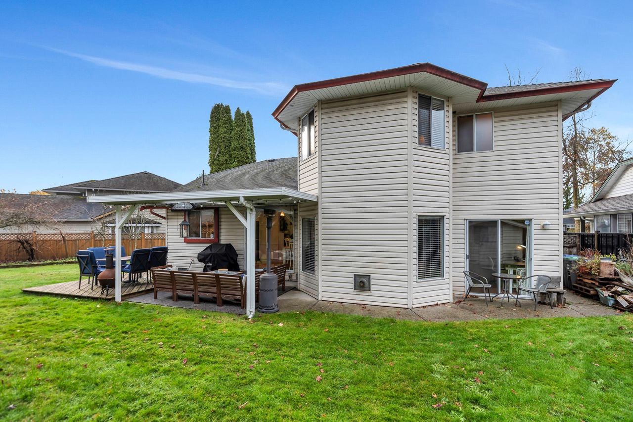 Fraser Heights! What a wonderful place to raise your family! This charming home exudes warmth and comfort and is ideally located in a quiet cul de sac just steps away from PACIFIC ACADEMY SCHOOL. The main level of this beautiful home features real hardwood floors, two cozy gas fireplaces, a stylish and practical kitchen with a pantry, sleek stainless steel appliances, and glass doors to the back patio. Also on this level is a convenient OFFICE that can double as a 5TH BEDROOM. Upstairs are 4 SPACIOUS BEDROOMS plus two washrooms including an ensuite in the primary bedroom. The spacious backyard provides loads of space for family fun, a firepit area, and a garden space with fruit trees. Ideal location close to shopping, transit, the rec centre and Tynehead park. AMAZING VALUE! Call now!