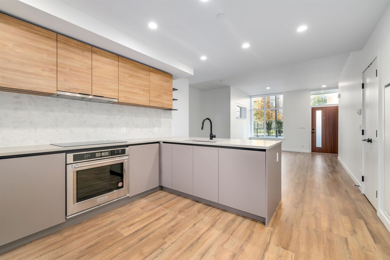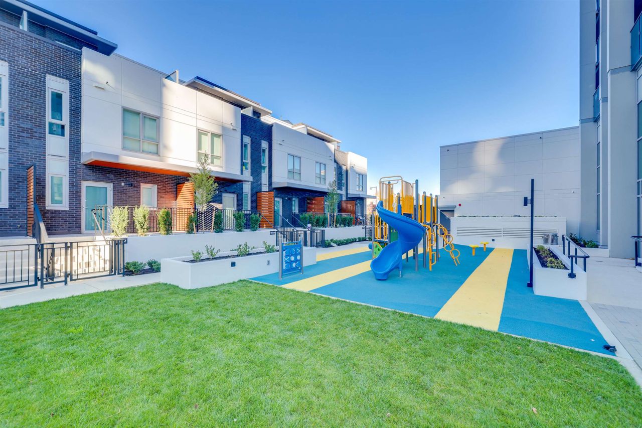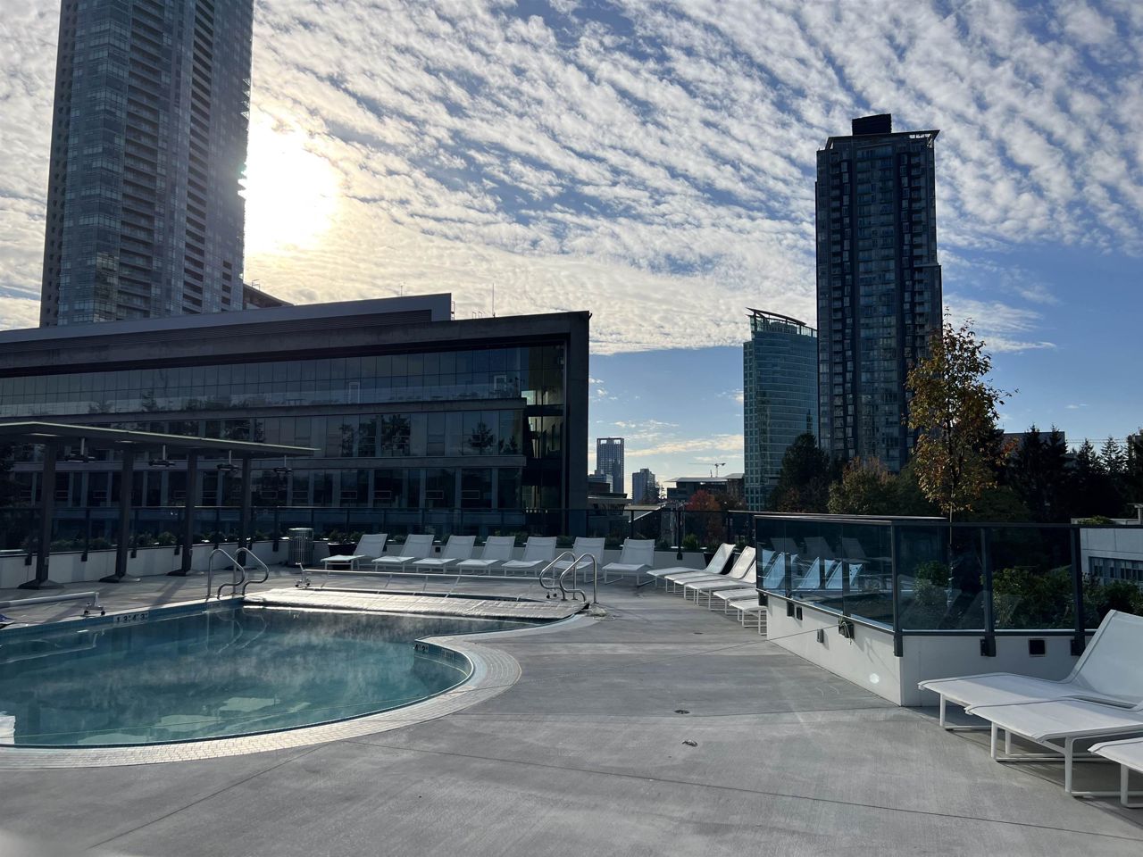University District South by BOSA. This rare Townhouse unit features all floor upgrades, exclusive individual AC and HRV fresh air system. Over 23,000 square feet of world class amenities including fitness centre, yoga room, meeting room, bike training room, pool table, ping pang table, lounge, heated pool, poolside dining terrace with fire pit, BBQ and a temperature control parcel delivery area. Walking distance to major transit, shopping, restaurants, Kwantlen University, SFU and Recreation centre. Enjoy the mountain view from your roof-top deck and BBQ in the summer evening. This unit is conveniently located in the centre of the complex.