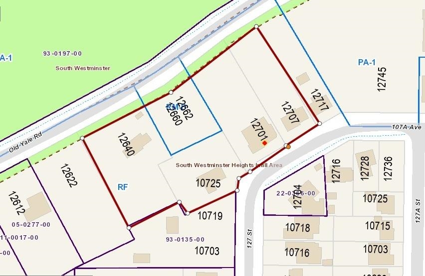 Unmissable Land Assembly Opportunity in Surrey! Five exceptional properties available - 12640 OLD YALE RD SURREY V3V 3Y2 MLS#R2801036, 12660 OLD YALE RD SURREY V3V 3Y2 MLS#R2800347, 10725 127 ST SURREY V3V 5K4 MLS#R2781927, & 1/2 INTEREST in 12701 107A AVE SURREY V3V 3J3 MLS#R2798434, & 12707 107A AVE SURREY V3V 3J3 MLS#R2802395. Can be purchased together or separately. All properties are part of the South Westminster Heights Neighbourhood Concept Plan (NCP), offering substantial development potential. Buyers can apply for an NCP amendment and increased FSR. This prime location in the heart of Surrey presents an amazing investment opportunity. Act now to unlock the full potential of these properties.