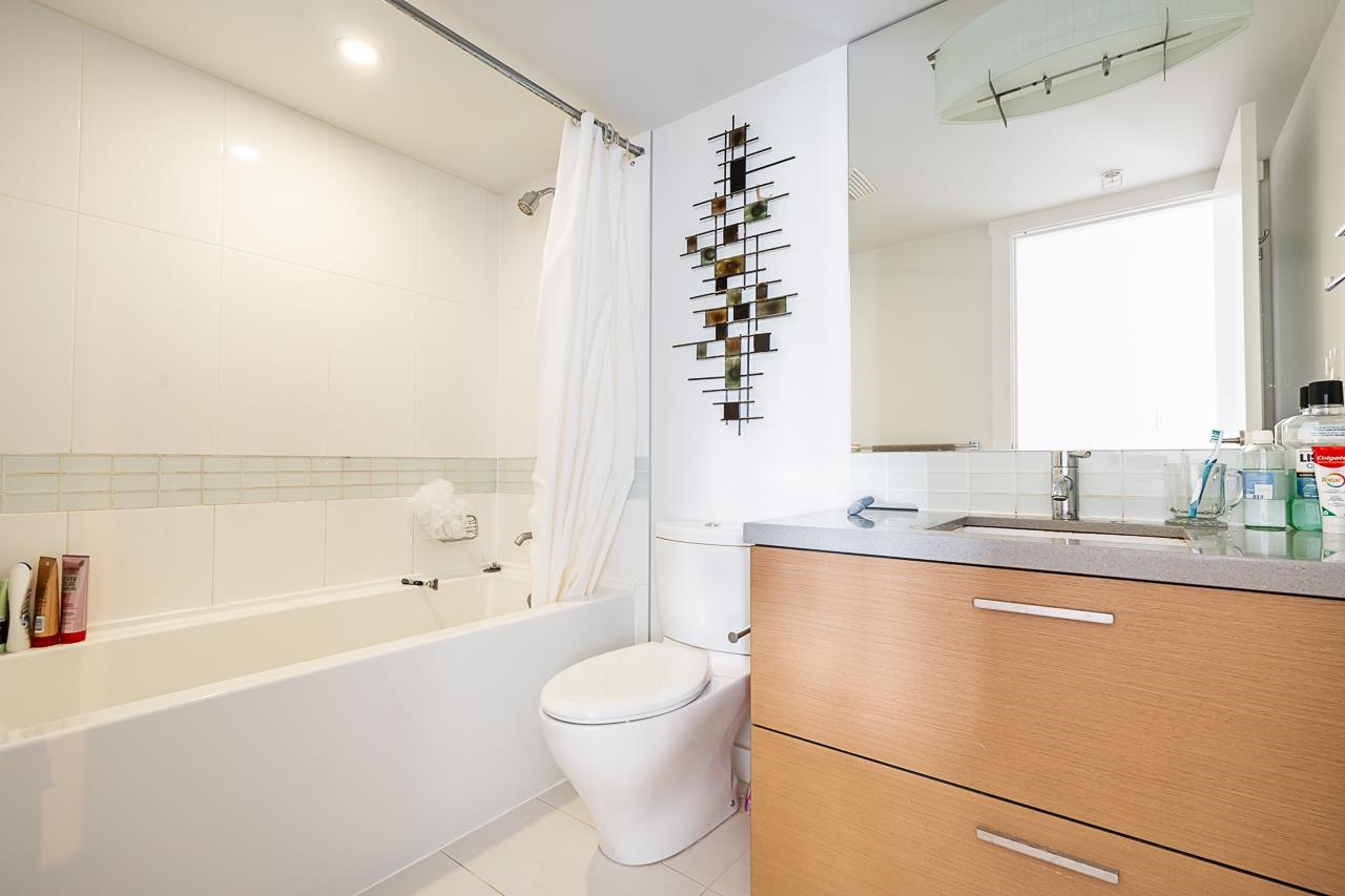 Welcome to City Point! This well-laid out corner unit, 1 bdrm + flex space features second-to-none views of the Fraser River & Mountains, a contemporary kitchen design with quartz countertops, soft close cabinetry, stainless steel appliances, laminate flooring, in-suite laundry, and 10-foot ceilings. Amenity room, full gym and courtyard. Steps away from Gateway Skytrain Station, Central City Mall, SFU, all shops, schools, and parks. Secured underground parking stall and locker. Hot water is included in the strata fee. Recently renovated in 2022.