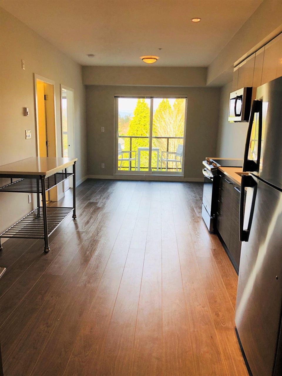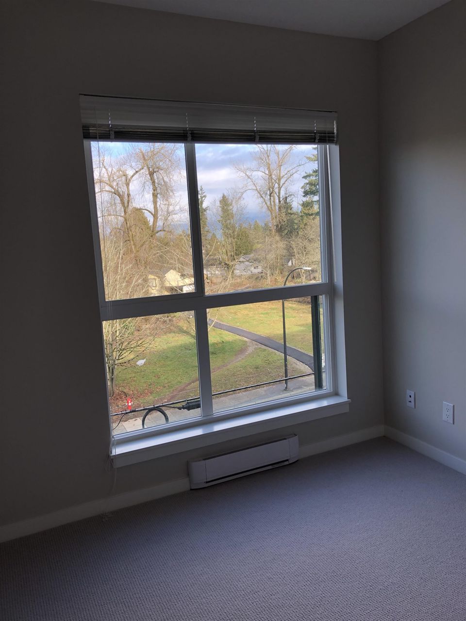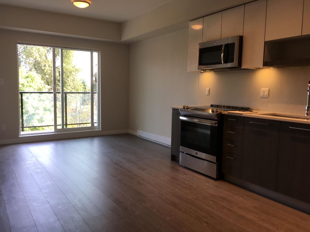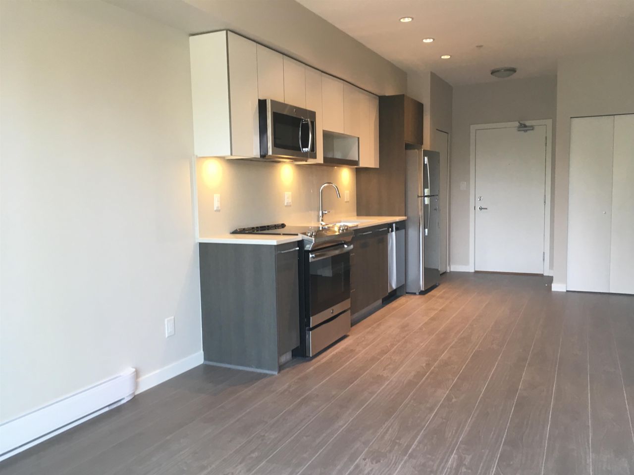 Situated on the fourth floor of Venue, a well-built wood frame building, awaits a well maintained rarely available one bedroom and den overlooking a grassy breezeway. Wide plank laminate floors throughout, with carpet in the bedroom this home offers a modern feel. The sleek GE appliance package and quartz countertops only add to the modern aesthetic of this unit. The bathroom offers Moen and Duravit fixtures. Stacker washer and dryer are tucked next to the den, off of the kitchen area. High ceilings create a bright and spacious feel. The suite comes with a moveable quartz top island. Call today to book your appointment.