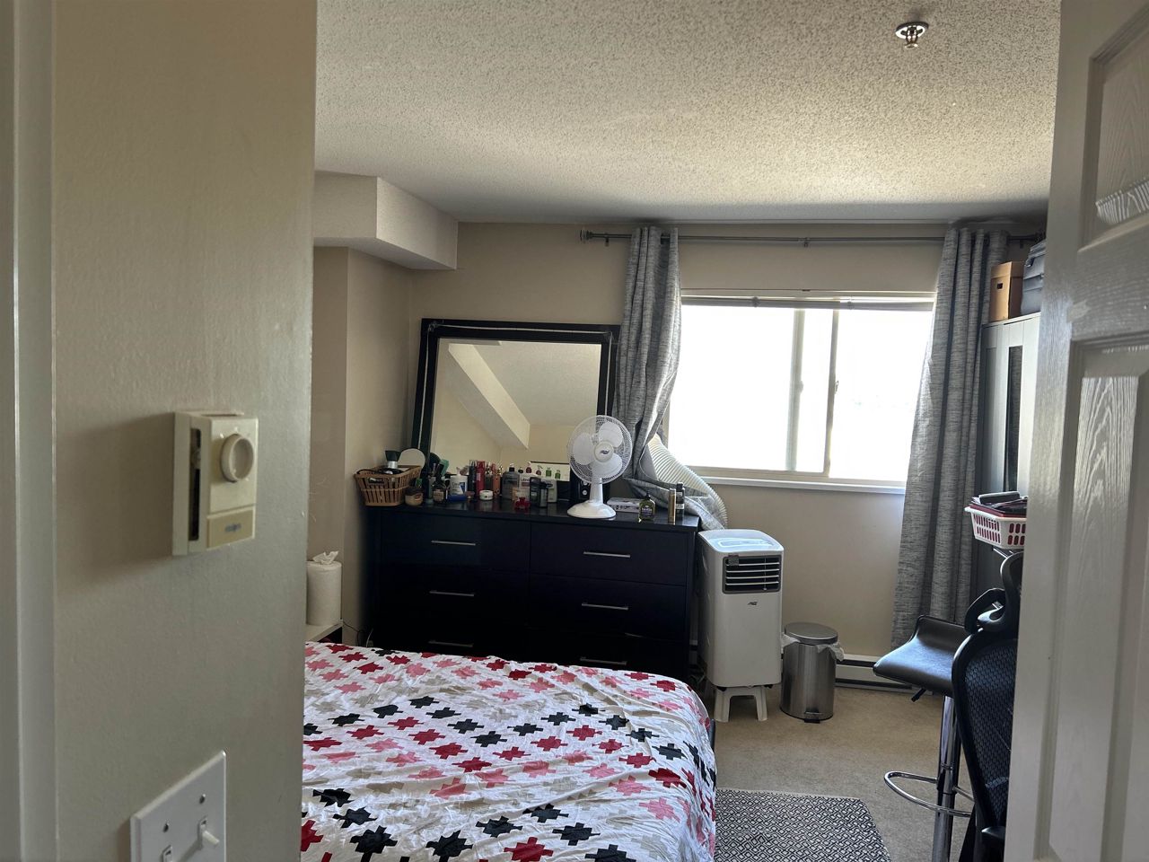 This end unit 1 bedroom suite is located on the top floor in Earls Court complex. Efficient layout makes good use of space and and offers a large balcony. Primary bedroom is larger than most 1 bedroom units and will accommodate house sized furniture and a desk area if desired. Located close to shopping, schools and transportation, this suite should be your next home. Parking stall # 85 and locker # 17. As per the tenant's request - Showings on Wednesday and Sunday between 7.00 pm and 8.00pm. Thanks for your understanding.