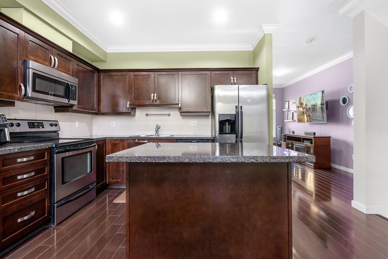 Stunning rare 4 bedroom, 4 bathroom townhome in Ravina. This spacious 3-level residence offers an unbeatable location just steps away from Bell Centre, High School & Elementary School. The well-designed kitchen, complete with stainless steel appliances and an island. This beautiful home backs into greenbelt with a large backyard and direct access to children play area, great for kids, bbq. Features include: 9 ft ceilings, crown moulding, granite counter tops in kitchen and bathrooms, laminate flooring, double side by side garage, walk out basement, deck and patio. The bottom level offers versatility, ideal for a large bedroom or a recreation room, with its own full bath and easy access to the fenced backyard.