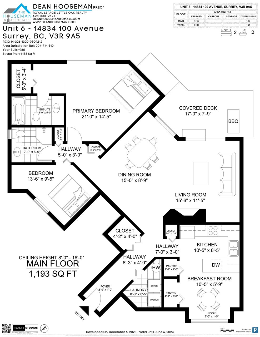 Legal DescriptionSTRATA LOT 6, PLAN NWS2427, SECTION 32, RANGE 1, NEW WESTMINSTER LAND DISTRICT, TOGETHER WITH AN INTEREST IN THECOMMON PROPERTY IN PROPORTION TO THE UNIT ENTITLEMENT OF THE STRATA LOT AS SHOWN ON FORM 1