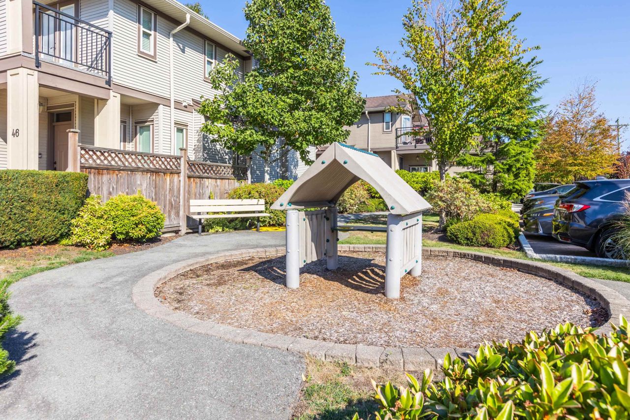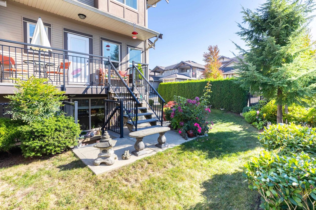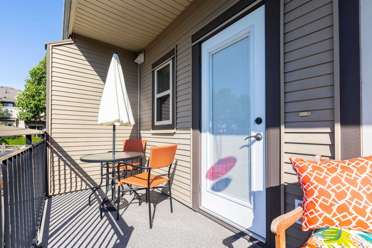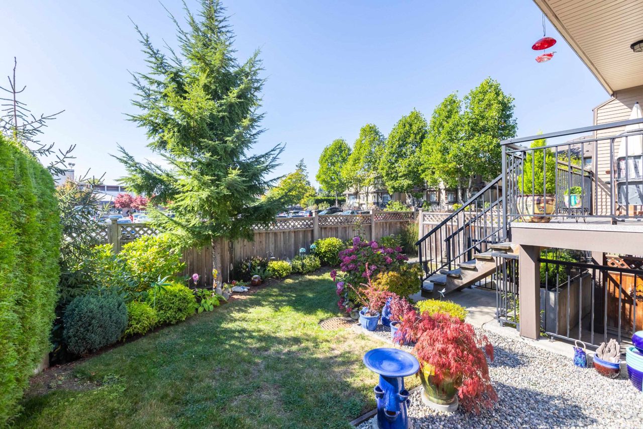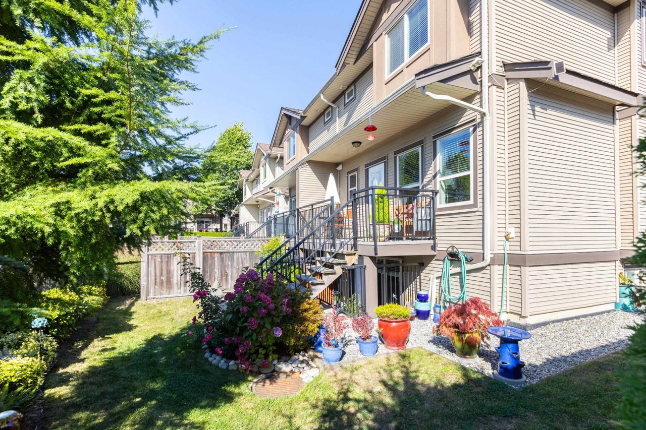 FANTASTIC VALUE! PORTER’S COVE! STUNNING DUPLEX style end unit With HUGE wraparound yard & partly covered multi-tied patio. Bright & spacious open plan. 4 bedrms, 4 bathrms (3 with deep soaker tubs) & 9’ ceilings. Built-in speakers on main & wired for surround sound & home theatre in basement. Living rm w/fireplace open dining rm, family rm & GOURMET kitchen w/SS appliances, granite counters & access to yard. 3 large bedrms up – master w/walkin closet, full ensuite & balcony for morning coffee or evening wine. Fully finished basement w/large windows, sep entry, own covered patio, bathrm, bedrm & large games rm w/wet bar. Fantastic complex minutes to everything. 1 pet. Rentals allowed. Regent Christian School & Pacific Life Bible Collage just steps away.