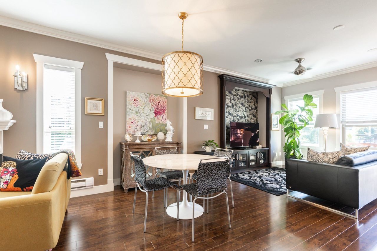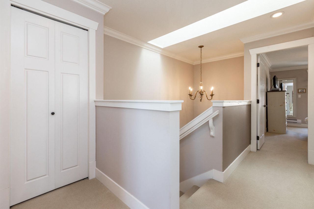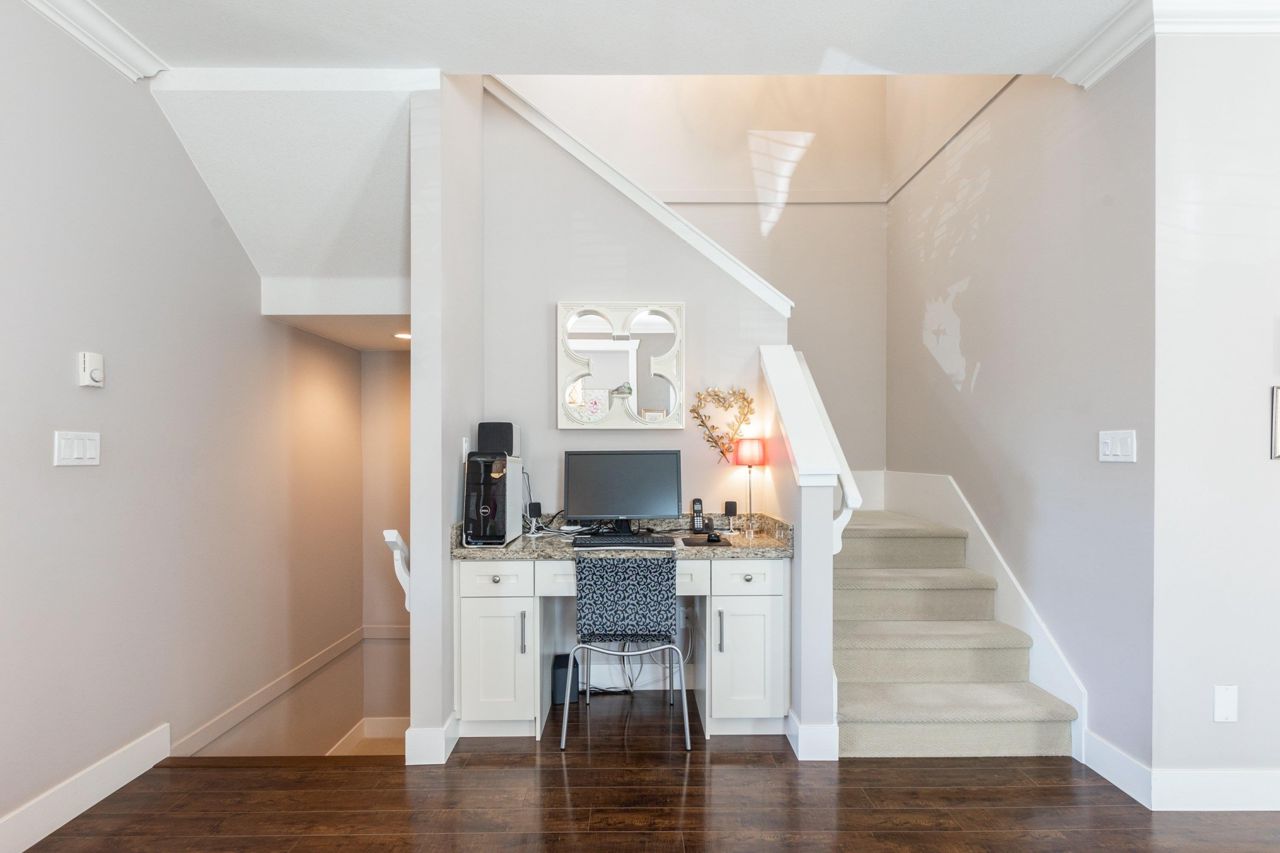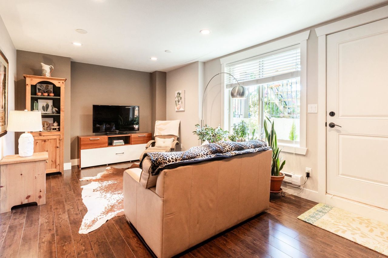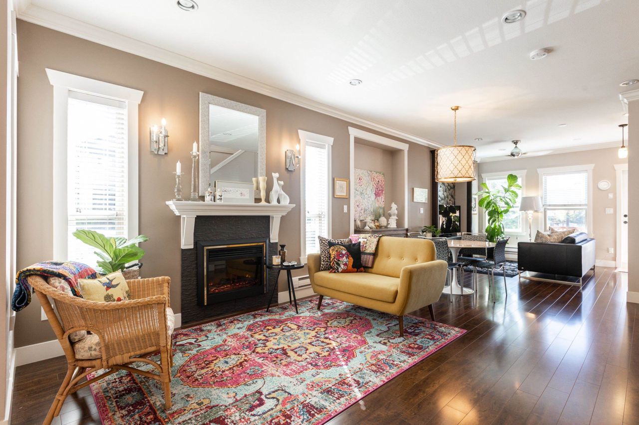 FANTASTIC VALUE! PORTER’S COVE! STUNNING DUPLEX style end unit With HUGE wraparound yard & partly covered multi-tied patio. Bright & spacious open plan. 4 bedrms, 4 bathrms (3 with deep soaker tubs) & 9’ ceilings. Built-in speakers on main & wired for surround sound & home theatre in basement. Living rm w/fireplace open dining rm, family rm & GOURMET kitchen w/SS appliances, granite counters & access to yard. 3 large bedrms up – master w/walkin closet, full ensuite & balcony for morning coffee or evening wine. Fully finished basement w/large windows, sep entry, own covered patio, bathrm, bedrm & large games rm w/wet bar. Fantastic complex minutes to everything. 1 pet. Rentals allowed. Regent Christian School & Pacific Life Bible Collage just steps away.