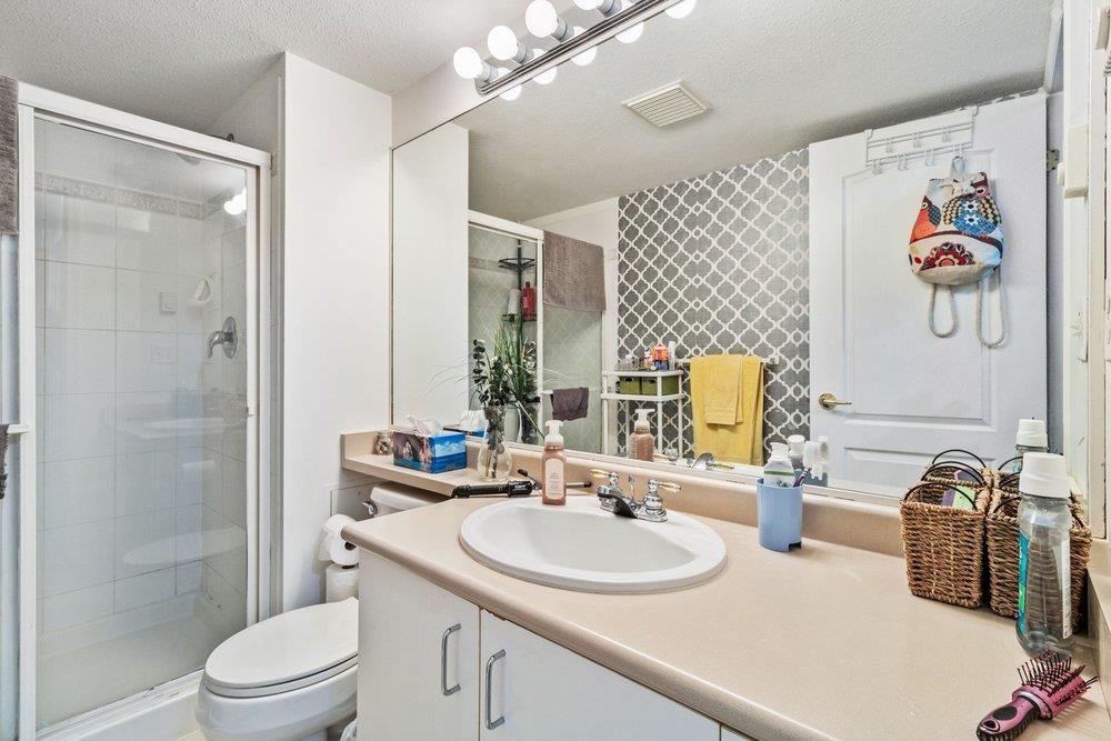 Invest in your new home in South Surrey's Waterford House: an incredible location surrounded by parks, shopping & access to transit. Featuring a smart floorplan, this bright, open-concept 2 bedroom, 2 bathroom condo concept overlooks the building's private greenspace. This home is perfect for entertaining w/ spacious kitchen & dining room. The well situated living room offers gas fireplace & access to your balcony. Unit includes a full sized laundry room with side by side washer/dryer & storage. The large west-facing private patio incl gas outlet. No Age restrictions. Schedule your private showing today!
