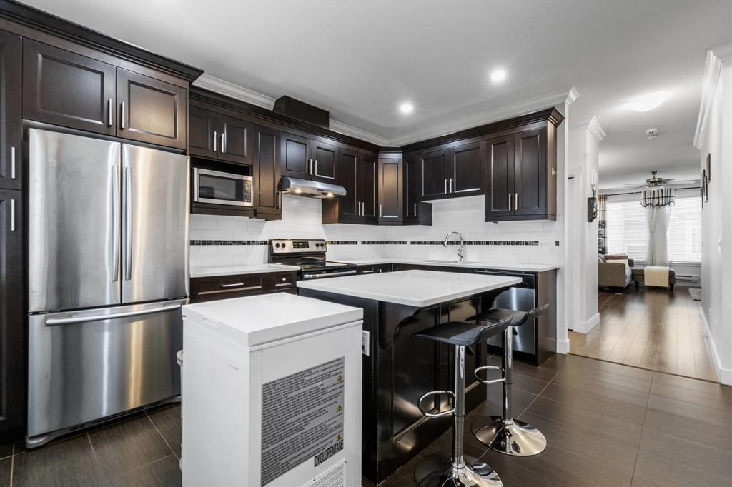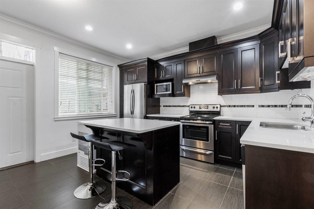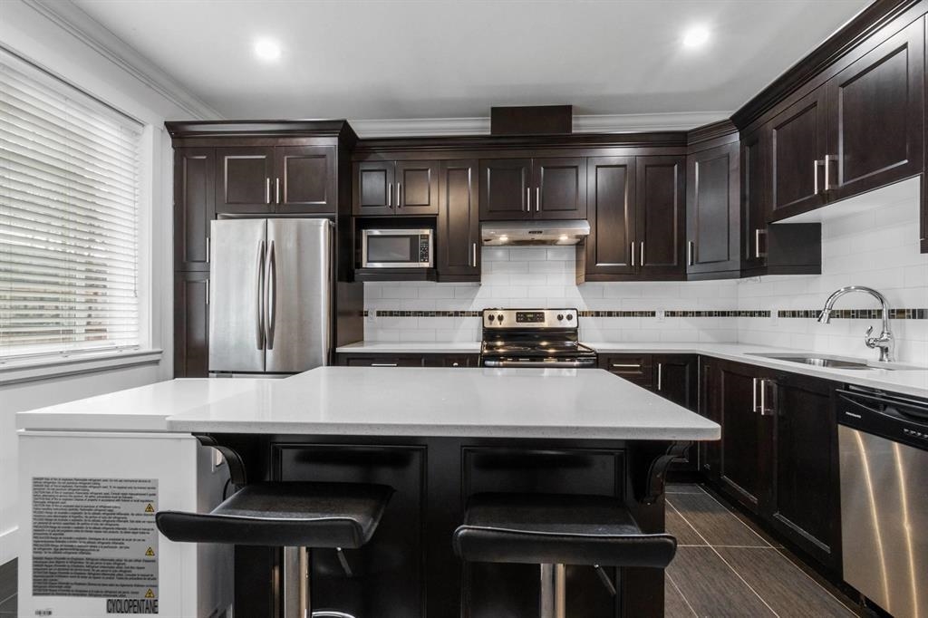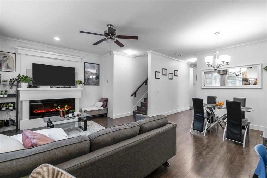 Welcome to this well maintained 4BD & 3Bath Guildford townhome. A functional main floor plan with elegant fire place in living area open and next to sizeable dining area for your family meal enjoyment. Convenient power room is also in place. Bright, eat-in kitchen with stainless steel appliance, rich cabinetry, quartz counter & large island with breakfast bar face your generous, fully fenced backyard. Naturally well-lit bedrooms on upper level & private den with half bath below easily converts to suit your needs. Centrally located. Minutes to Guildford Town Centre, restaurants, grocery with easy access to HWY 1.