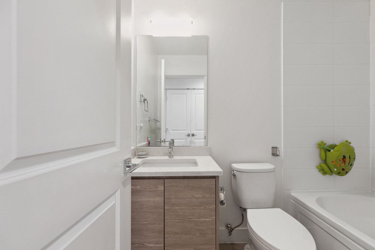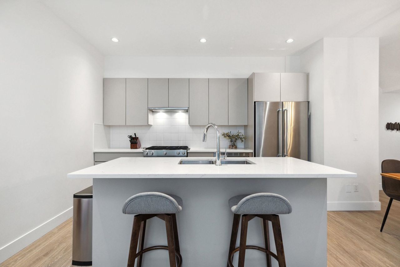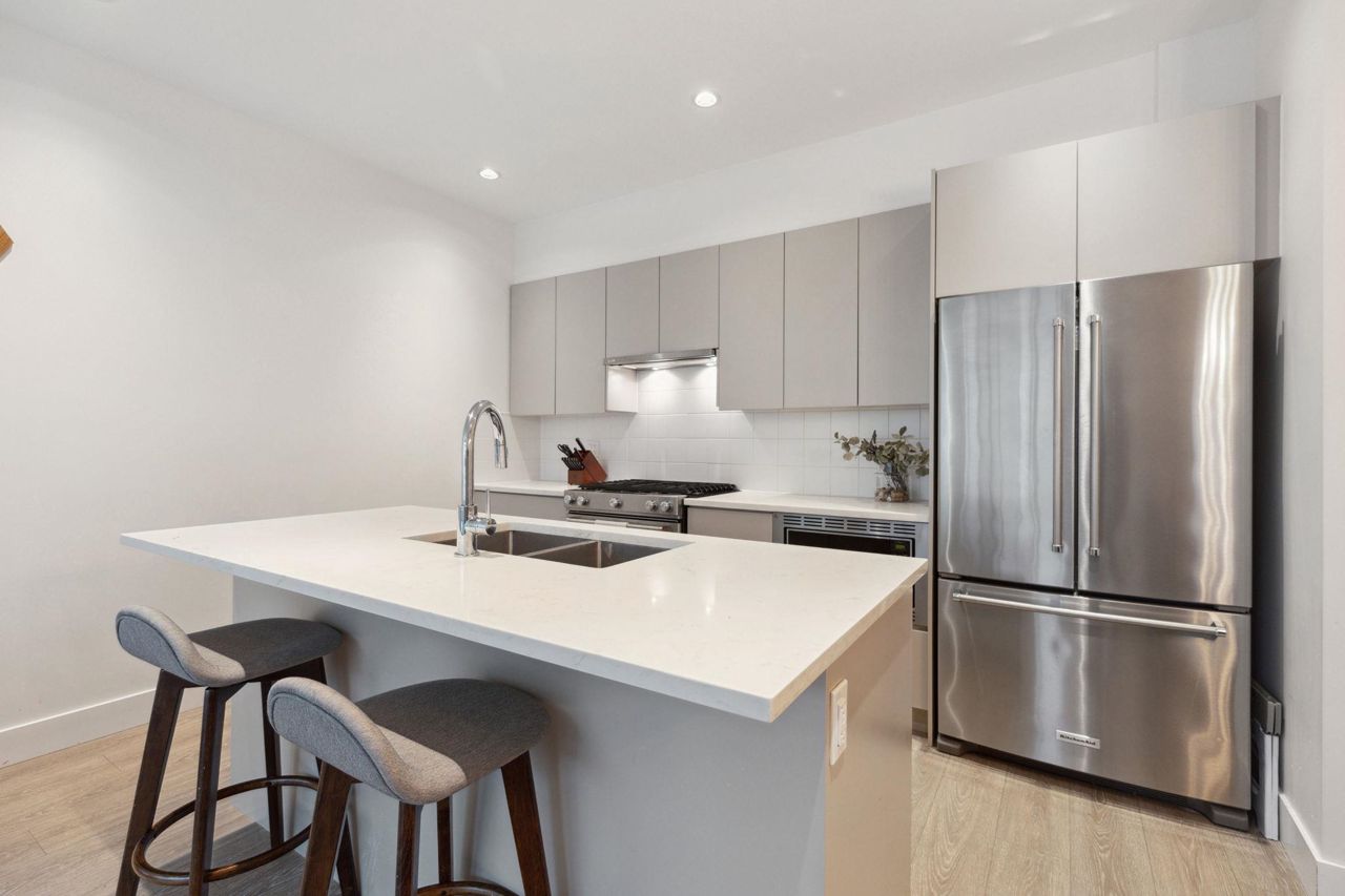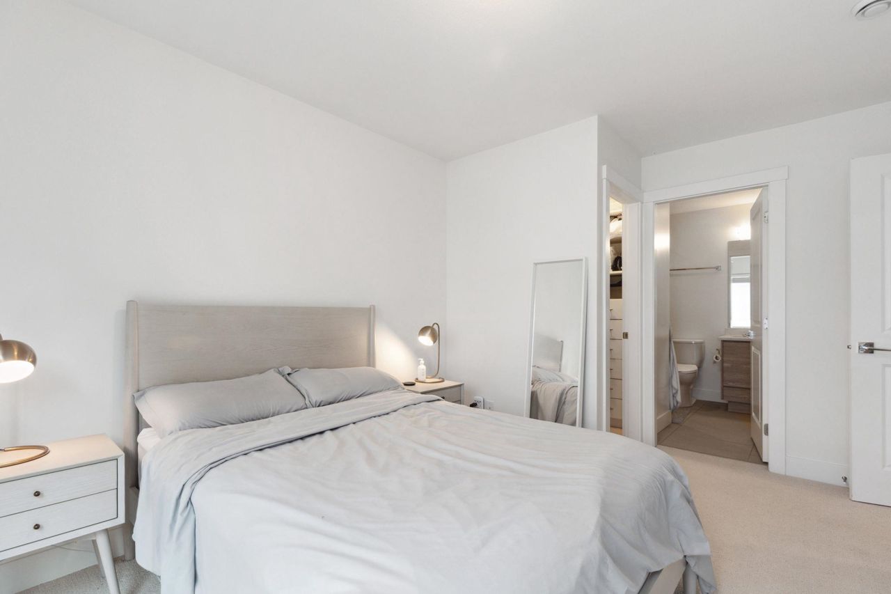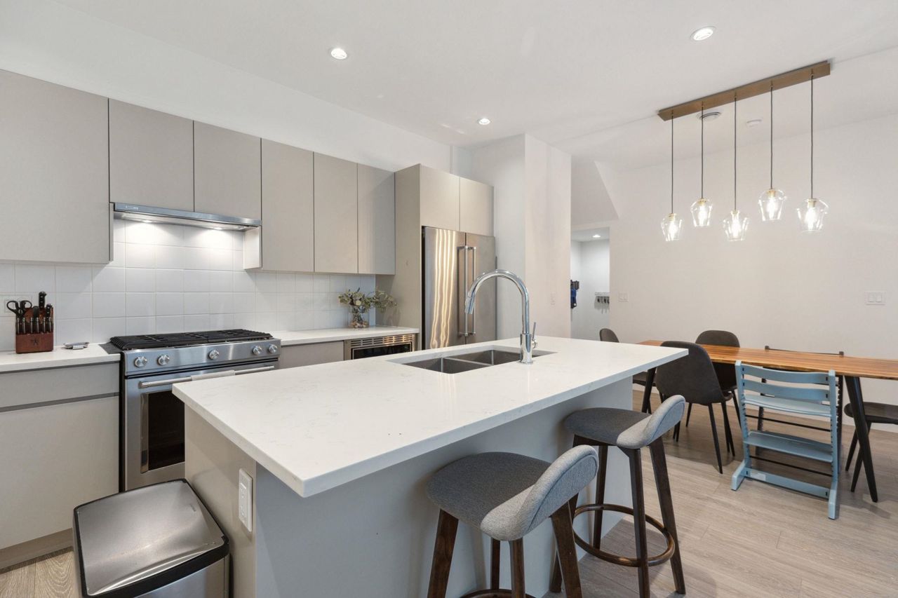 Welcome to Berkeley Village in South Surrey, a townhouse complex built in 2019. This 2 bed + den and 2.5 bath home has a double side by side garage and spacious open concept main floor. The well equipped kitchen features a gas range, large island, and a spacious dining area. Also a den for an office or nursery and a powder bath. The two bedrooms are and the primary suite features a walk in closet with custom organizer and ensuite bath. Laundry is conveniently on the above floor. The top floor boasts a huge rooftop patio with gas bib. Amenities include club house, gym, guest suite and playground. Minutes to shopping at Morgan Creek/Grandview Central/Grandview Central and Edgewood Park and Elementary School. Open House Sat/Sun Nov 4&5 2-4PM