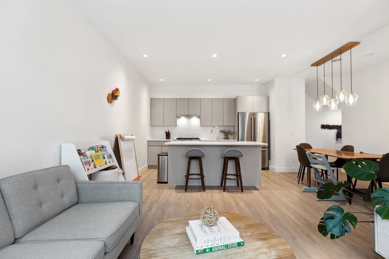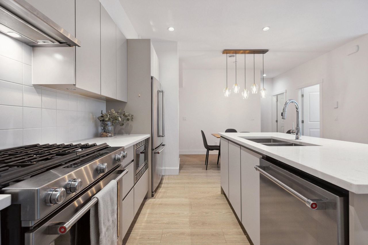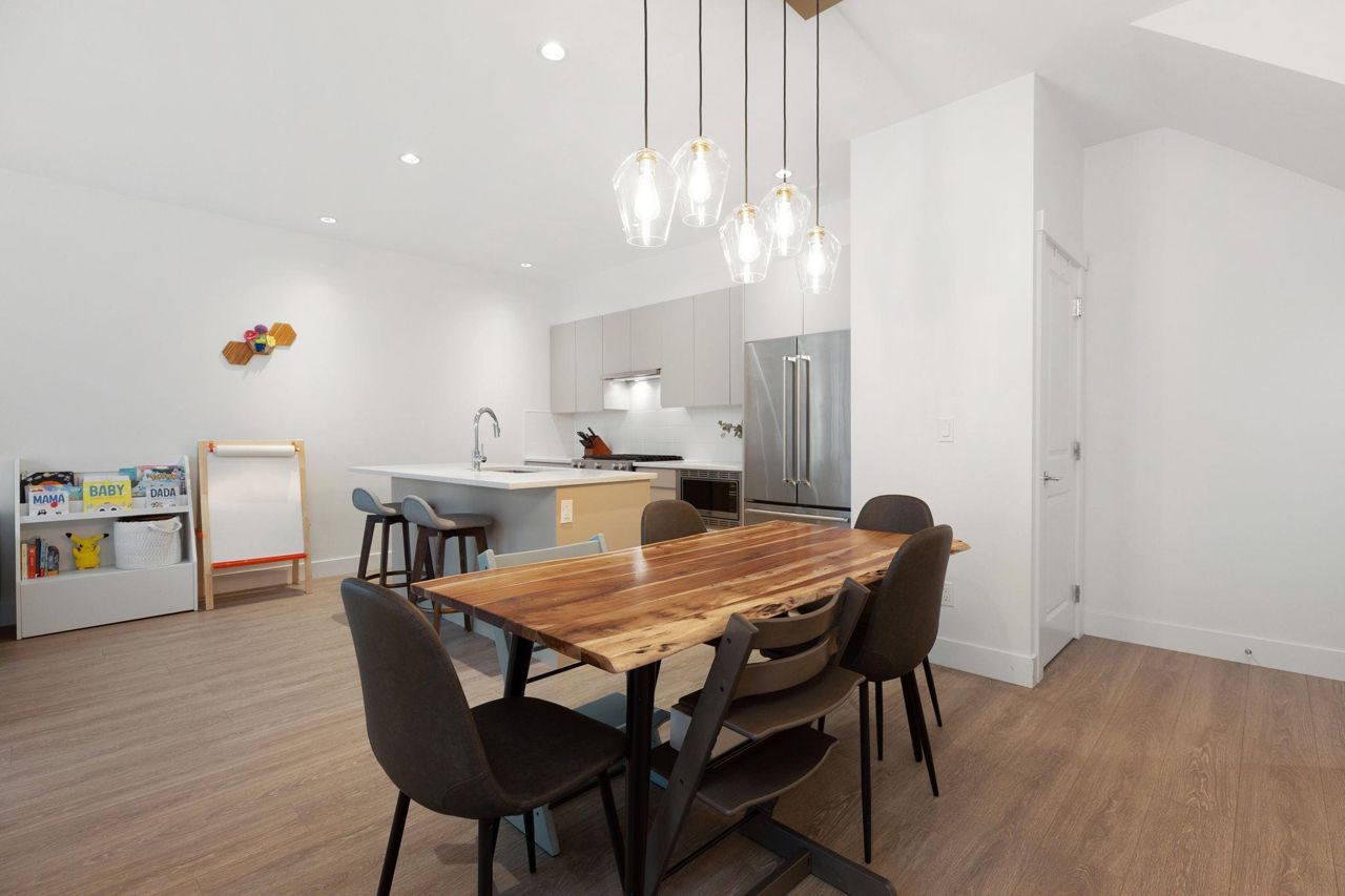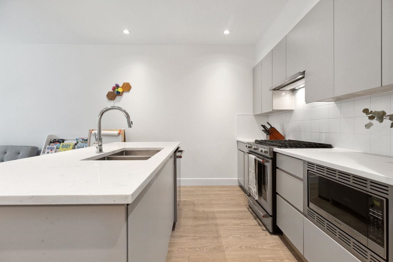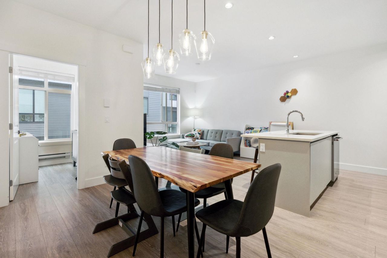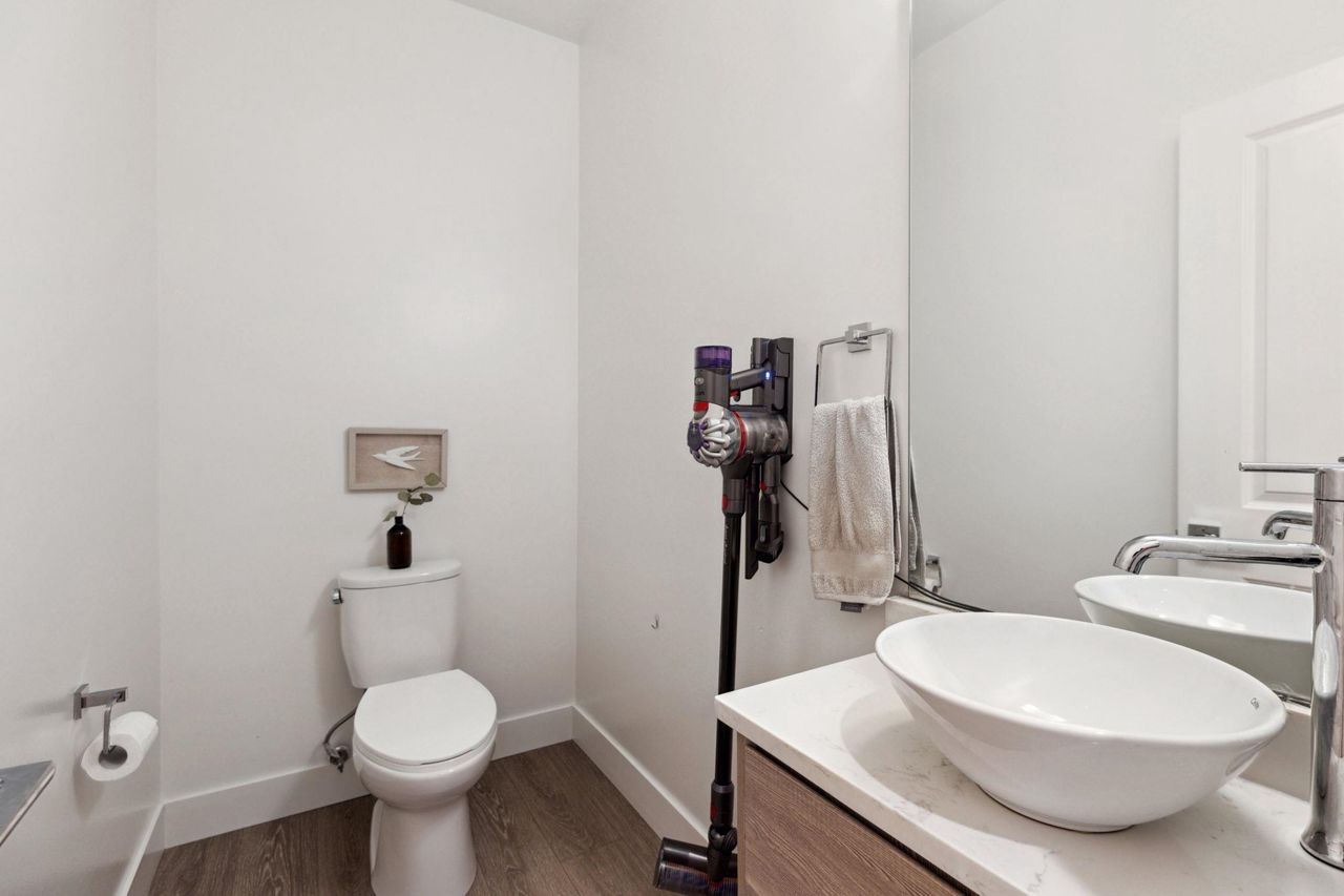 Welcome to Berkeley Village in South Surrey, a townhouse complex built in 2019. This 2 bed + den and 2.5 bath home has a double side by side garage and spacious open concept main floor. The well equipped kitchen features a gas range, large island, and a spacious dining area. Also a den for an office or nursery and a powder bath. The two bedrooms are and the primary suite features a walk in closet with custom organizer and ensuite bath. Laundry is conveniently on the above floor. The top floor boasts a huge rooftop patio with gas bib. Amenities include club house, gym, guest suite and playground. Minutes to shopping at Morgan Creek/Grandview Central/Grandview Central and Edgewood Park and Elementary School. Open House Sat/Sun Nov 4&5 2-4PM