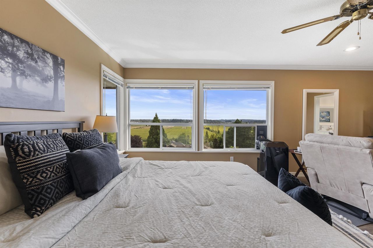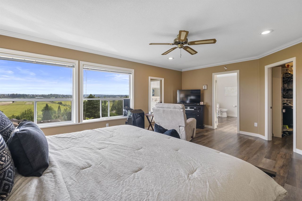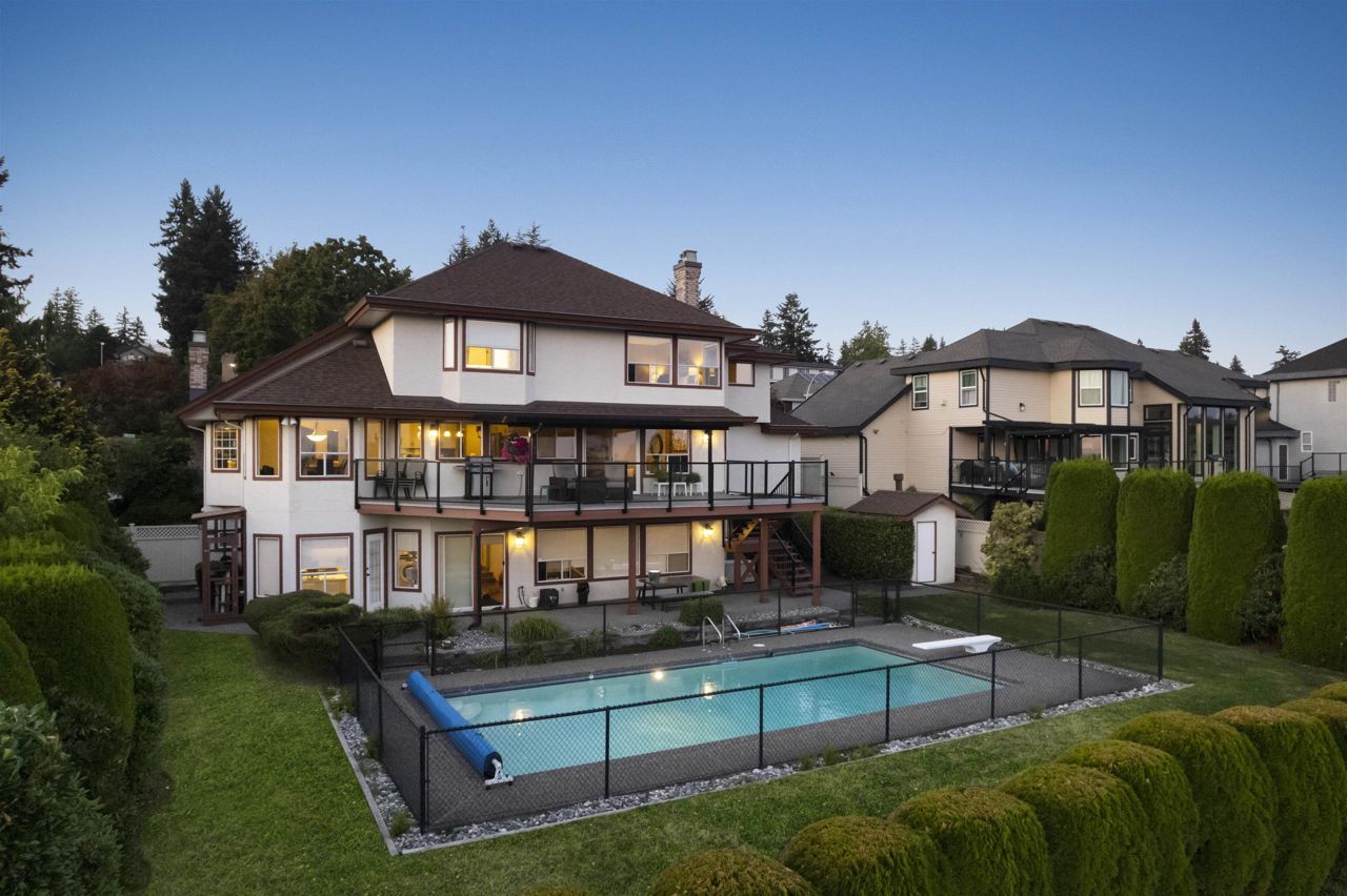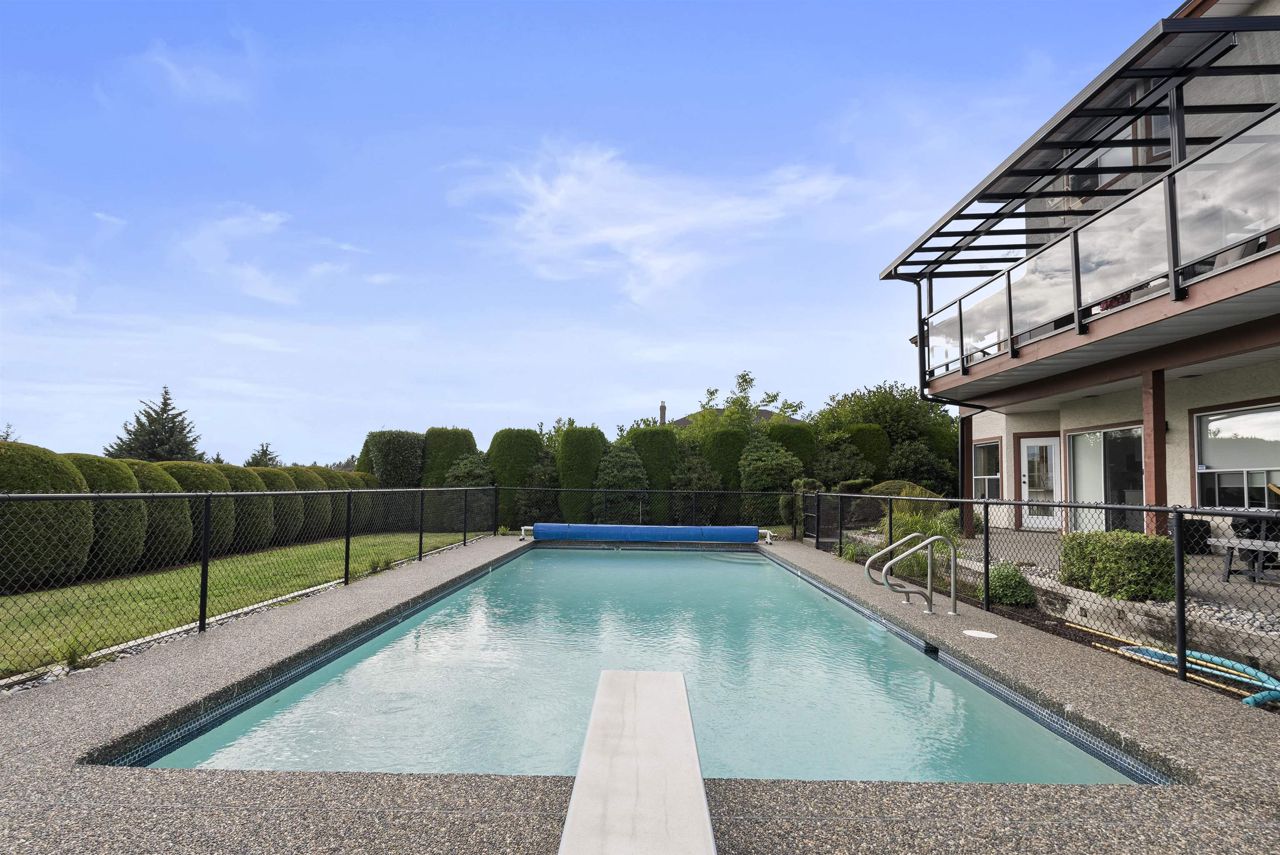 Palatial 6BR 4.5BTH in prestigious Coast Meridian Estates. This luxurious 4,890 sqft residence sits atop a tastefully manicured 12,000 sqft+ corner lot w/ 3 car garage & expansive driveway. French doors open into a bright & airy foyer drawing you into elegant, refined spaces w/ thoughtful details throughout. Your chef-inspired kitchen features crisp, granite counters alongside stainless steel Jenn-Air appliances & a walk-in pantry. Enjoy unobstructed views of Northview Golf, Serpentine River Valley & Mt Baker from the comfort of your sprawling, 442 sqft covered balcony or your spacious primary bedroom boasting an enviable, spa-like ensuite. Updated ground level 2BR 1BTH w/ sauna below leads to a private, south-facing backyard w/ in-ground pool - perfect for in laws or as a mortgage helper.