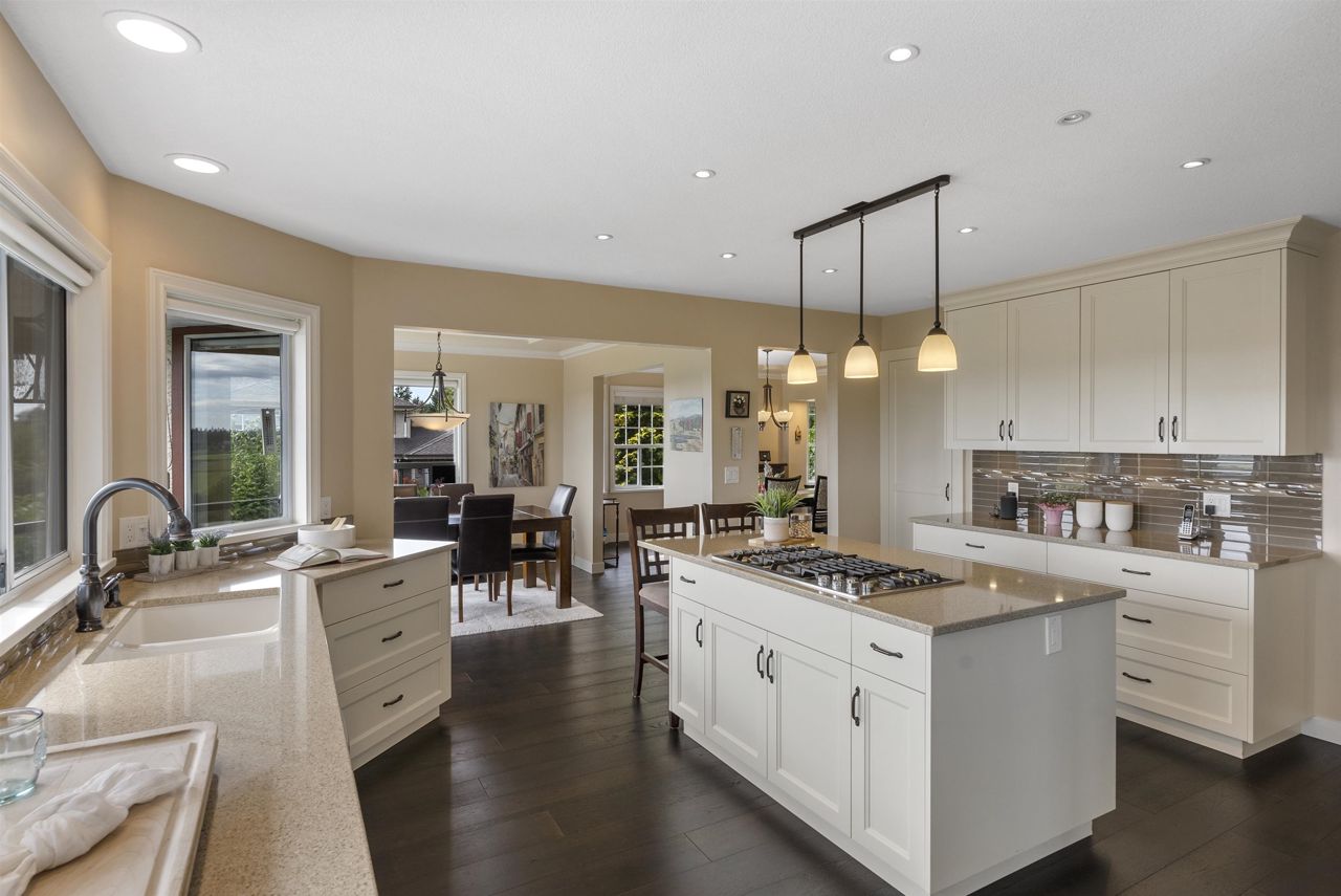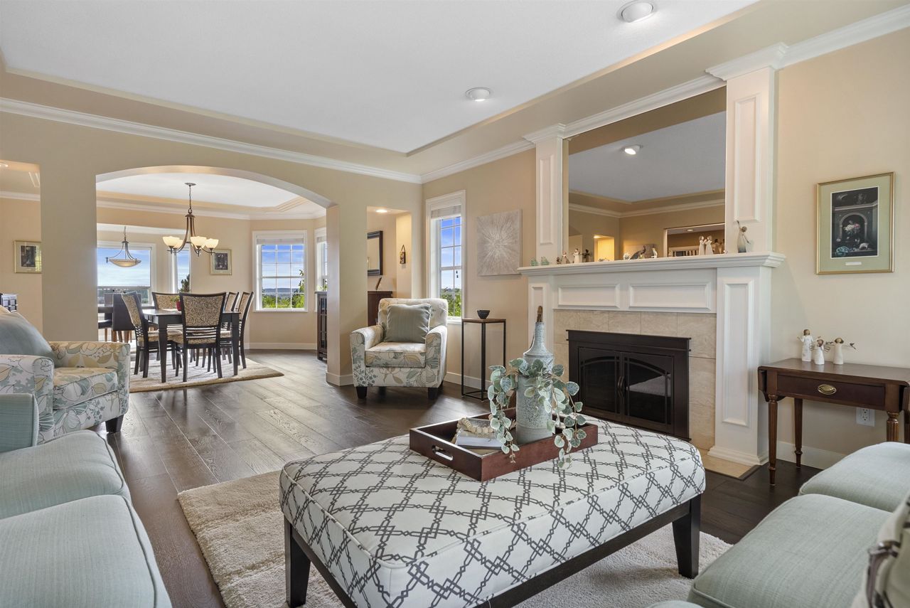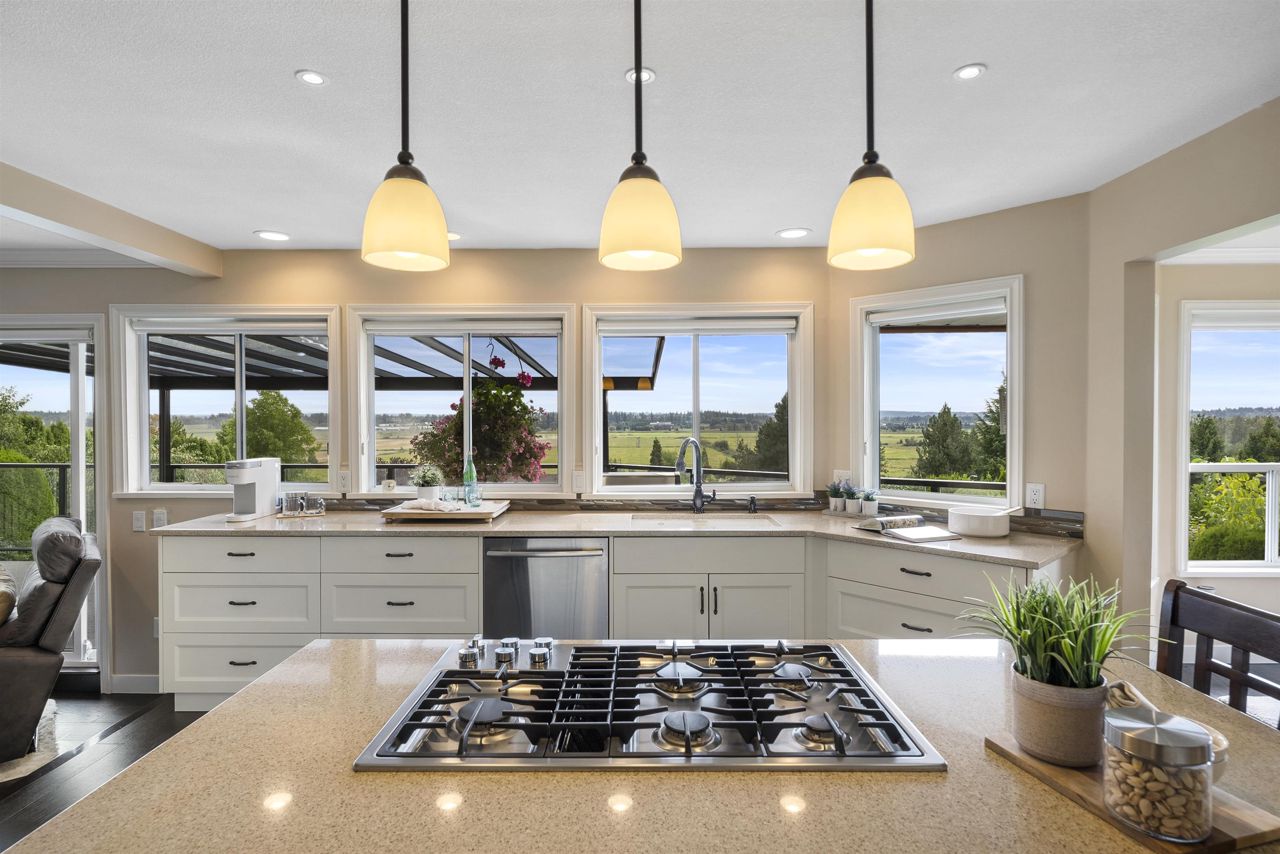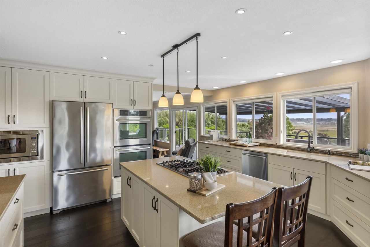 Palatial 6BR 4.5BTH in prestigious Coast Meridian Estates. This luxurious 4,890 sqft residence sits atop a tastefully manicured 12,000 sqft+ corner lot w/ 3 car garage & expansive driveway. French doors open into a bright & airy foyer drawing you into elegant, refined spaces w/ thoughtful details throughout. Your chef-inspired kitchen features crisp, granite counters alongside stainless steel Jenn-Air appliances & a walk-in pantry. Enjoy unobstructed views of Northview Golf, Serpentine River Valley & Mt Baker from the comfort of your sprawling, 442 sqft covered balcony or your spacious primary bedroom boasting an enviable, spa-like ensuite. Updated ground level 2BR 1BTH w/ sauna below leads to a private, south-facing backyard w/ in-ground pool - perfect for in laws or as a mortgage helper.
