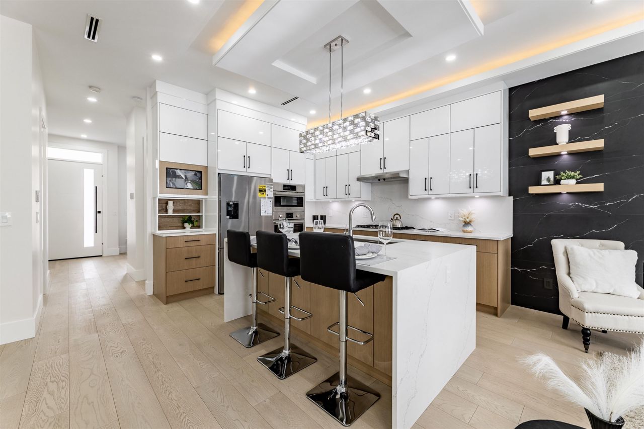 Welcome to this brand new family home! You're welcomed with high ceiling's and an open concept design that flows from the living to the kitchen, family & dining areas. The kitchen is equipped with top-of-the-line Bosch stainless steel appliances, custom cabinetry, quartz countertop & a large island. The main floor also features a wok kitchen and a den with central A/C. The upper level features a large primary bedroom with 2 walk in closets & a spa-like ensuite bathroom! Upstairs also features 3 additional spacious bedrooms with 2 additional bathrooms. Lower level of the home features a rec room. In addition, the lower level features a legal 2 bedroom suite with the potential to have another 1 bedroom suite. Central location!