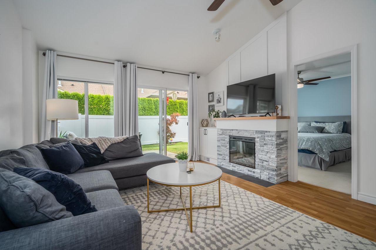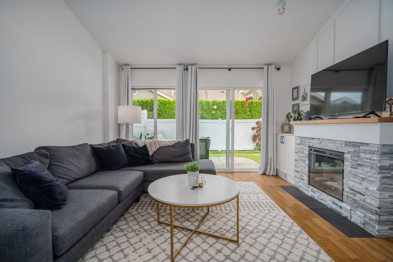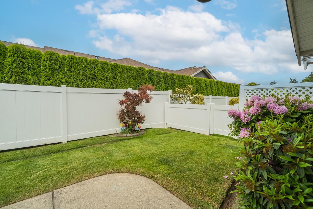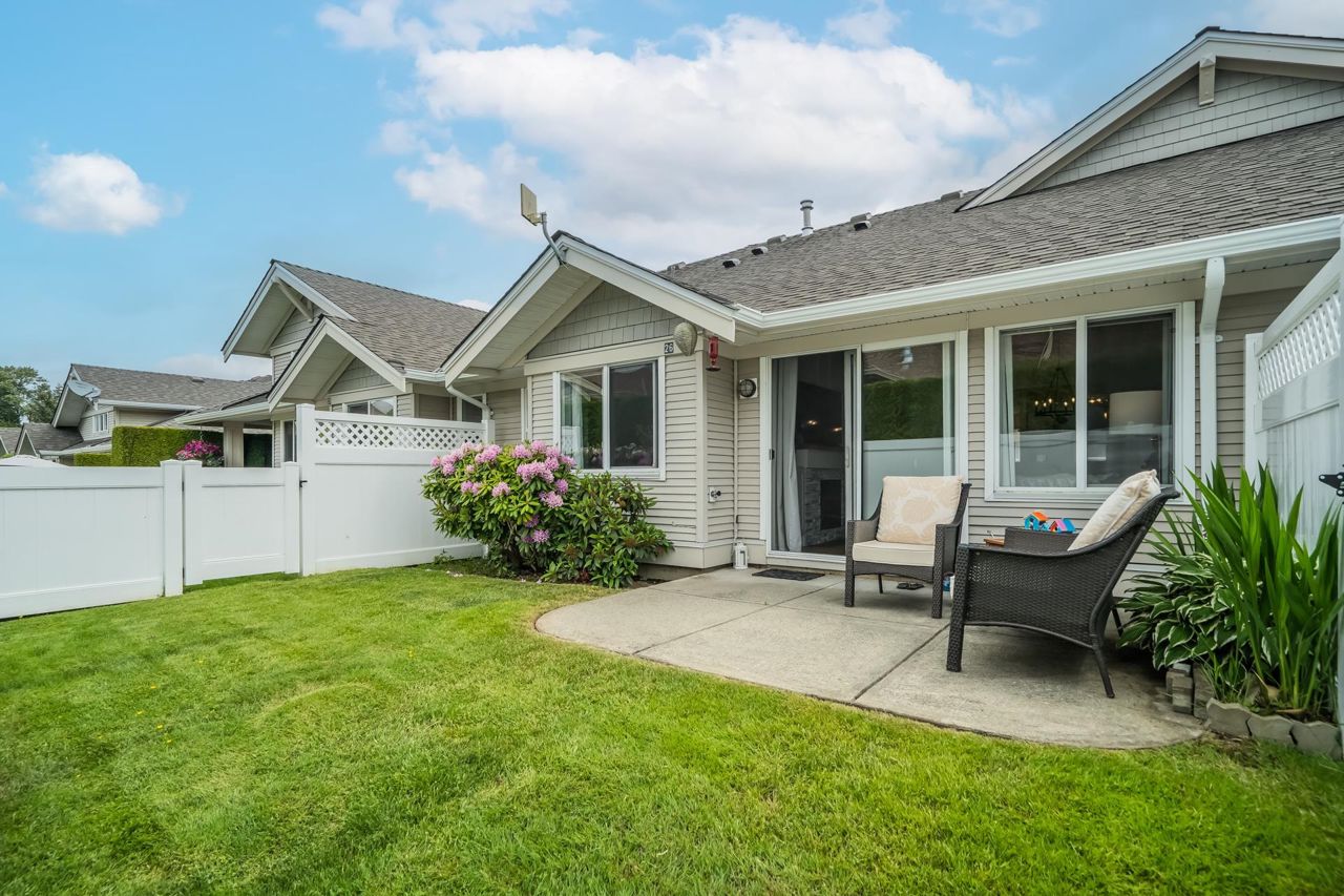 Welcome to Douglas Point! This 2 bed/2 bath RANCHER style townhome is in a gated complex in the popular neighbourhood of Summerfield. BRIGHT and BEAUTIFUL kitchen offers timeless white cabinetry, S/S appliances & looks out through your dining/living rooms to your backyard. Soak up the afternoon sun with the western exposure in your fully fenced yard. Living room features vaulted ceilings & a newer cozy fireplace with custom stone work. Large Primary room has a walk-in closet & a 4 piece ensuite with twin sinks. The roof was replaced in 2022! Possible RV parking - inquire with strata for availability. This complex has an amazing clubhouse & just minutes to the Pacific Border crossing, White Rock beach, Peach Arch Park, and Peace Portal golf course.
