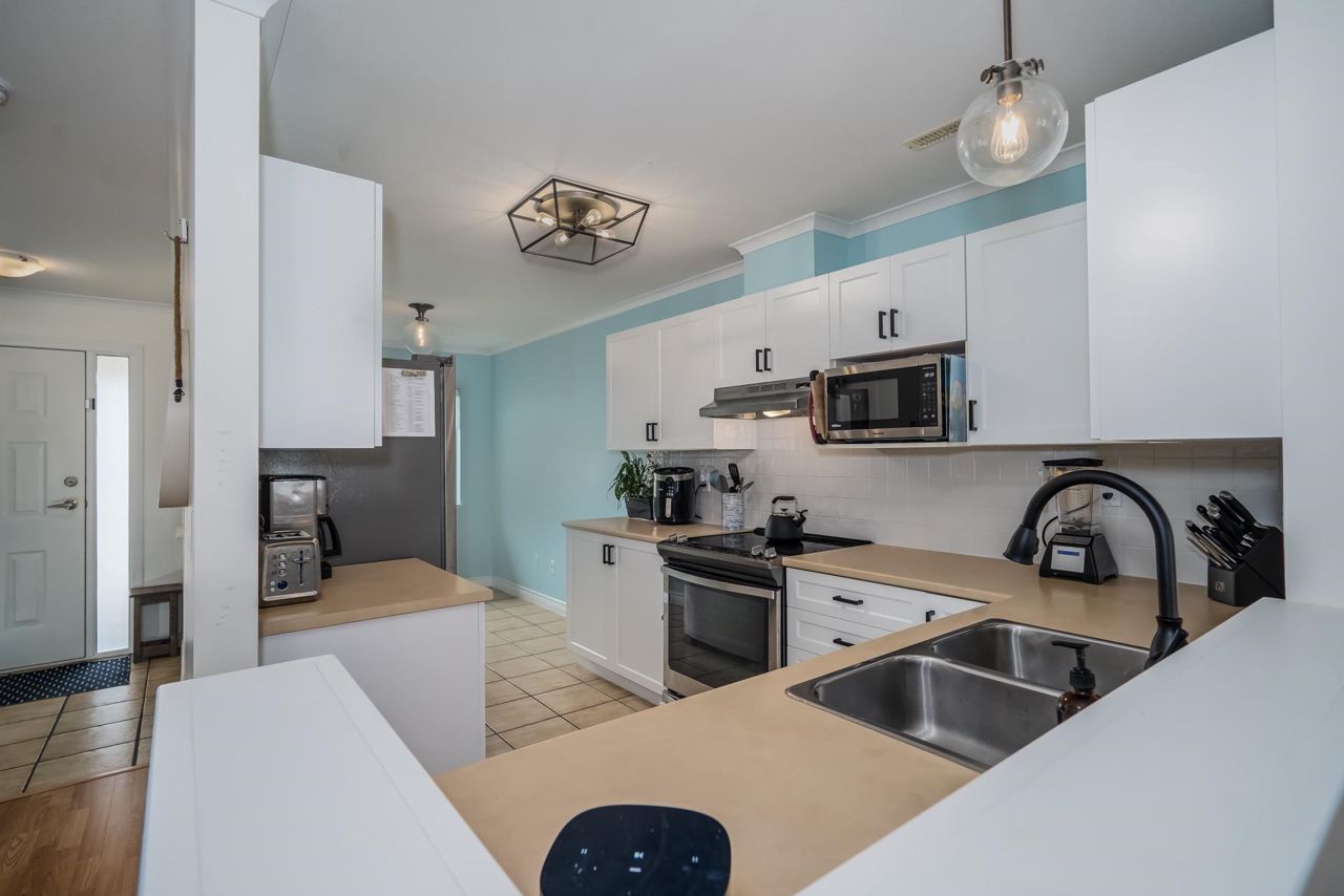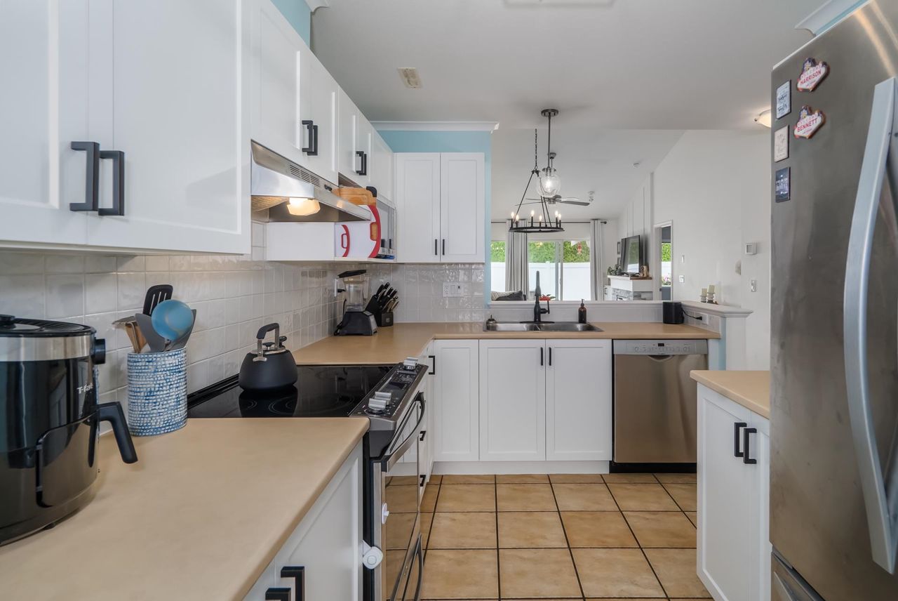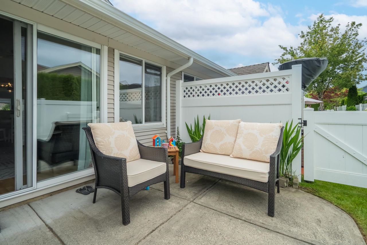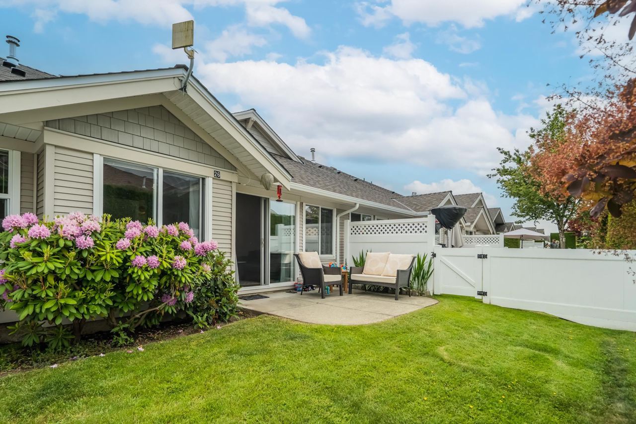 Welcome to Douglas Point! This 2 bed/2 bath RANCHER style townhome is in a gated complex in the popular neighbourhood of Summerfield. BRIGHT and BEAUTIFUL kitchen offers timeless white cabinetry, S/S appliances & looks out through your dining/living rooms to your backyard. Soak up the afternoon sun with the western exposure in your fully fenced yard. Living room features vaulted ceilings & a newer cozy fireplace with custom stone work. Large Primary room has a walk-in closet & a 4 piece ensuite with twin sinks. The roof was replaced in 2022! Possible RV parking - inquire with strata for availability. This complex has an amazing clubhouse & just minutes to the Pacific Border crossing, White Rock beach, Peach Arch Park, and Peace Portal golf course.