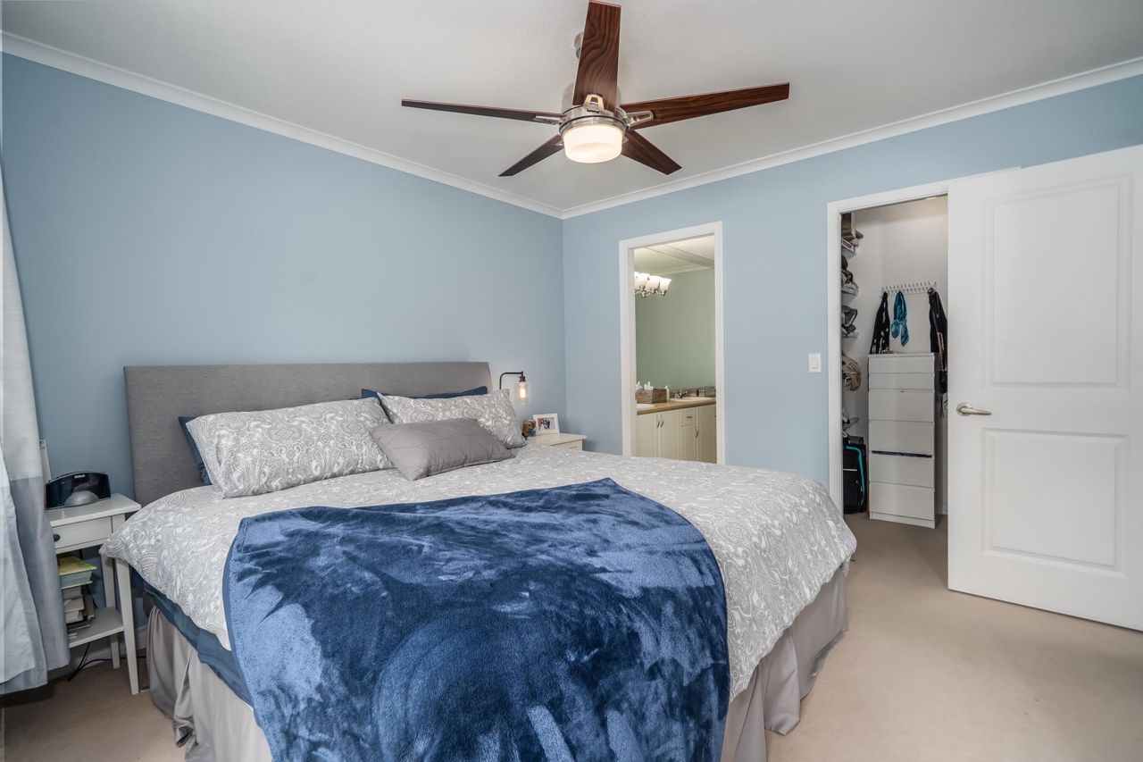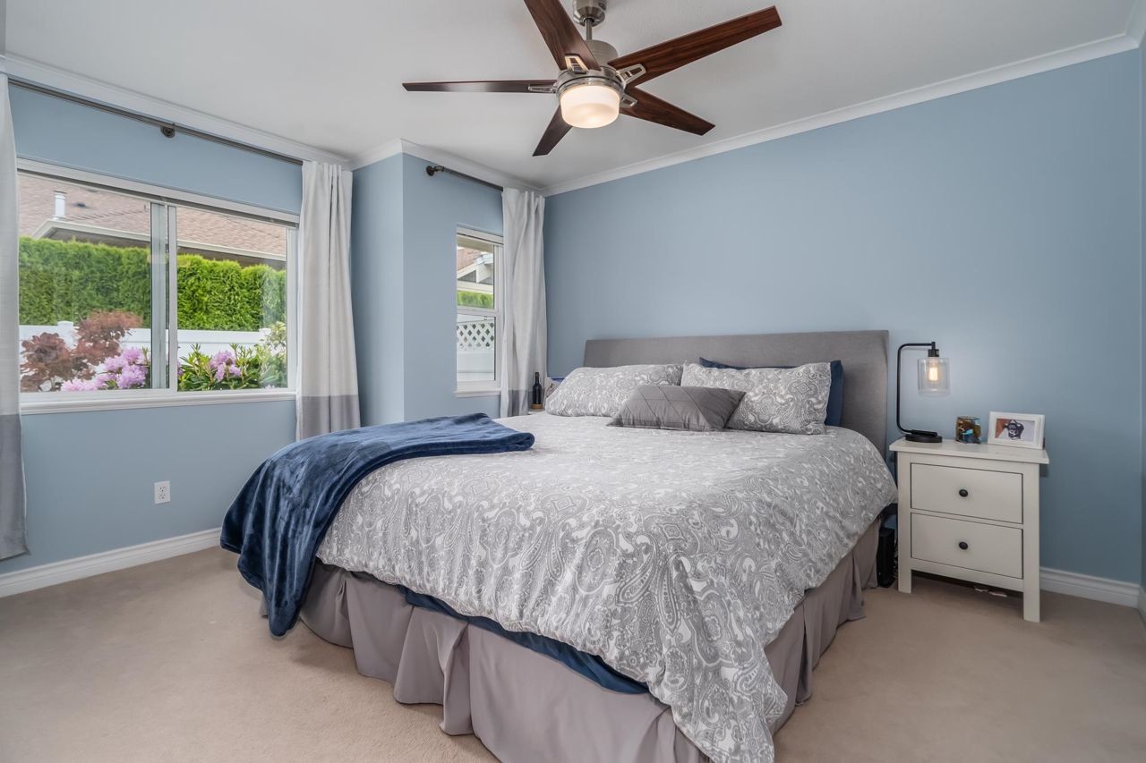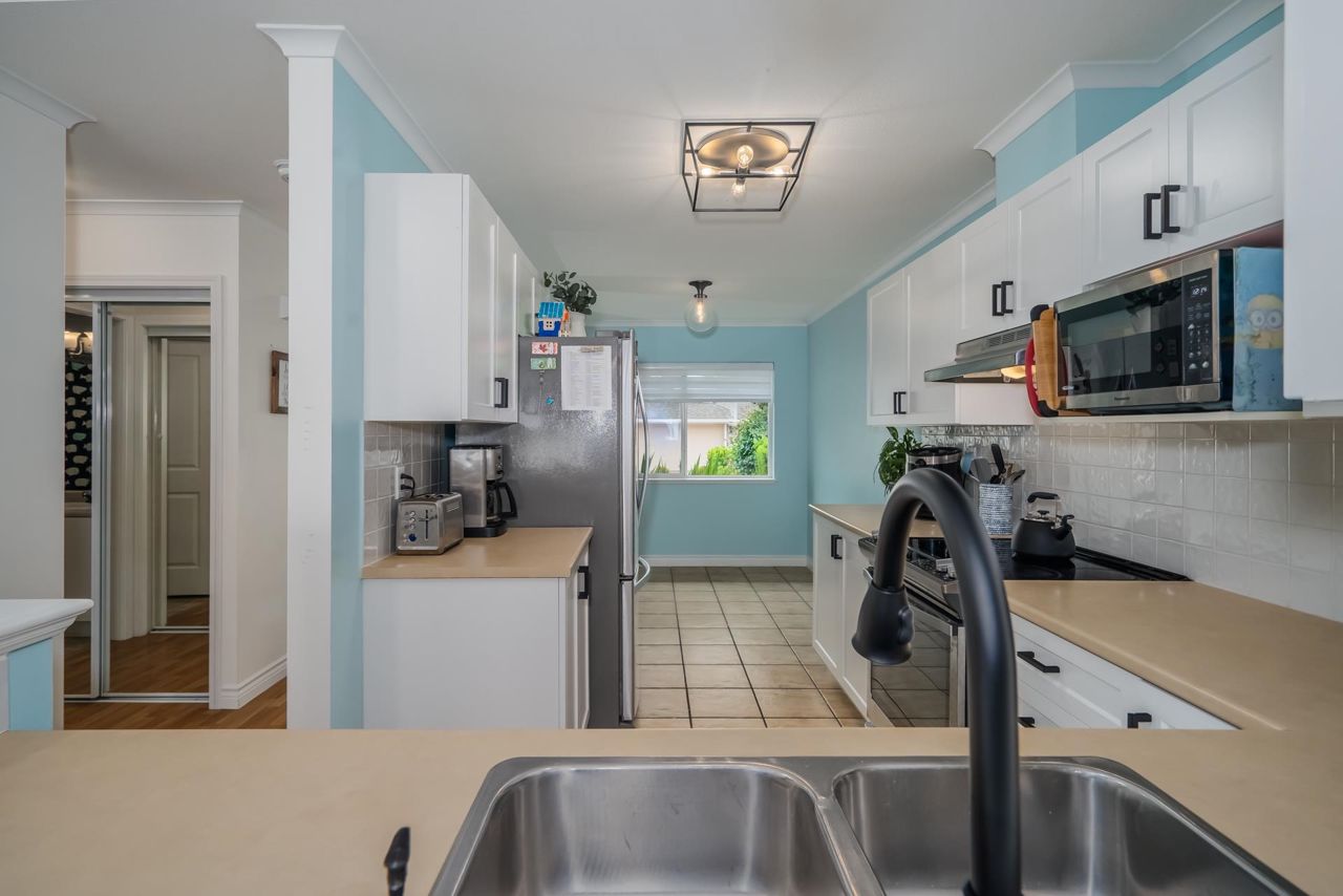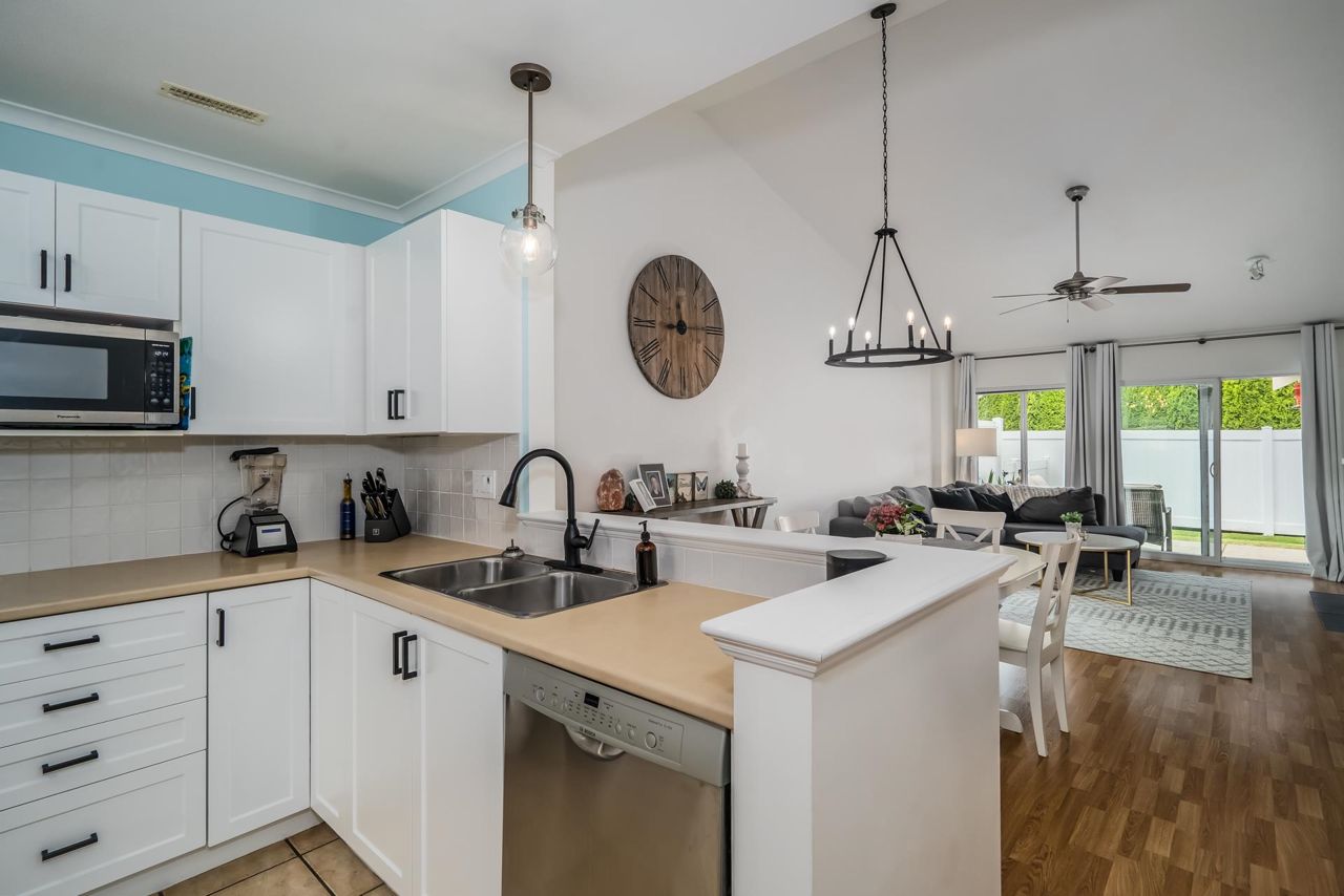 Welcome to Douglas Point! This 2 bed/2 bath RANCHER style townhome is in a gated complex in the popular neighbourhood of Summerfield. BRIGHT and BEAUTIFUL kitchen offers timeless white cabinetry, S/S appliances & looks out through your dining/living rooms to your backyard. Soak up the afternoon sun with the western exposure in your fully fenced yard. Living room features vaulted ceilings & a newer cozy fireplace with custom stone work. Large Primary room has a walk-in closet & a 4 piece ensuite with twin sinks. The roof was replaced in 2022! Possible RV parking - inquire with strata for availability. This complex has an amazing clubhouse & just minutes to the Pacific Border crossing, White Rock beach, Peach Arch Park, and Peace Portal golf course.