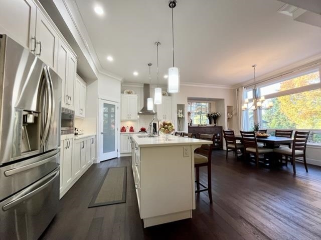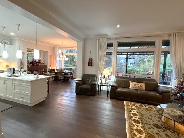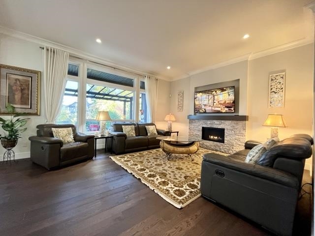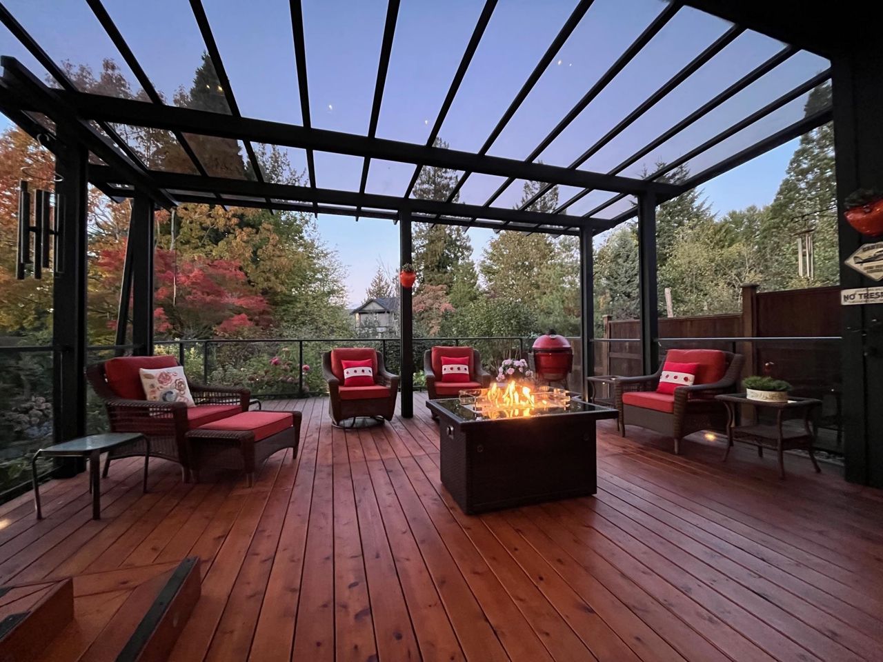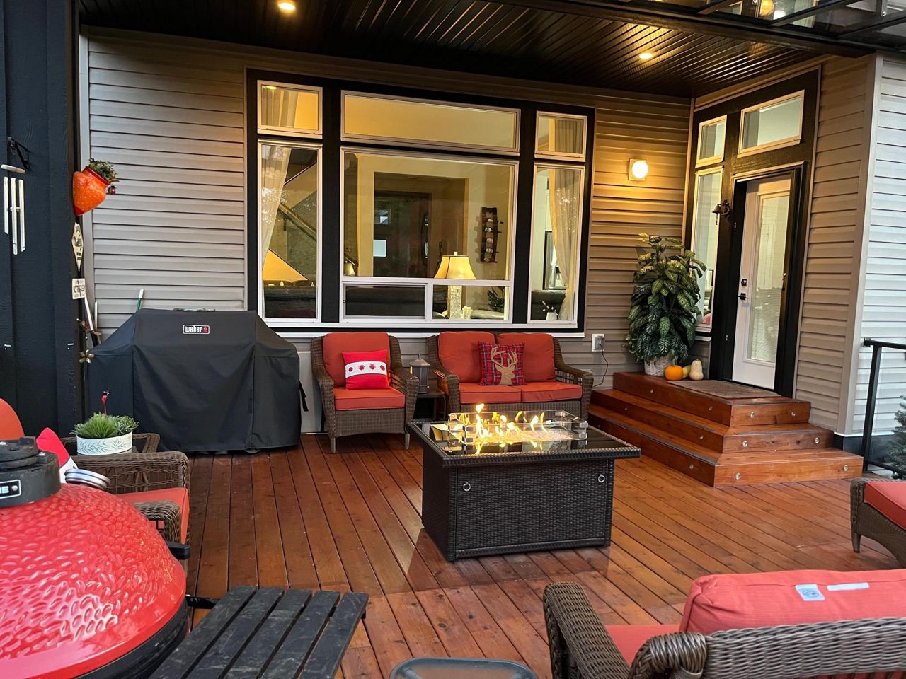 LOCATION,QUILITY & VALUE that you will enjoy for many years to come. Like in brand new condition rarely offered for sale Foxridge built home back onto beautiful green space. This luxurious home boast 6 bedrooms, 3.5 bathrooms, LEGAL one bdrm suite, large balcony off the primary bdrm, A/C, oversized covered deck, very private custom designed back yard. Main floor featuring 10 ft ceilings, crown moldings, hard wood floorings, chef's dream kitchen with white cabinets, floating display shelving, big island, quartz counters, SS appliances & fabulous pantry. Specious cozy living room w/gas fireplace, remarkable dining room, both overlook the greenbelt picturesque for all seasons. Upstairs boast 4 specious bdrms, 2 full bath, laundry. Mortgage helper basement suite.
