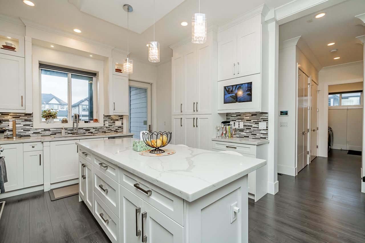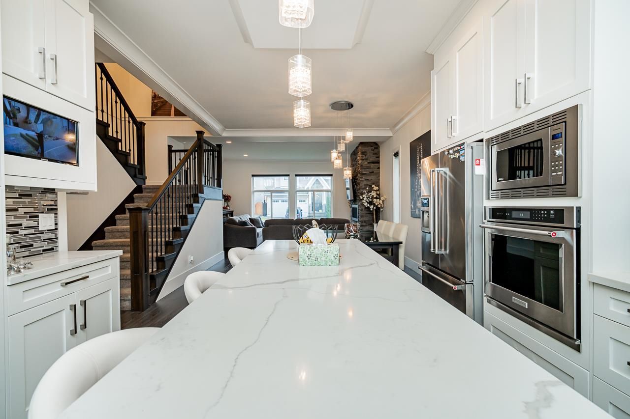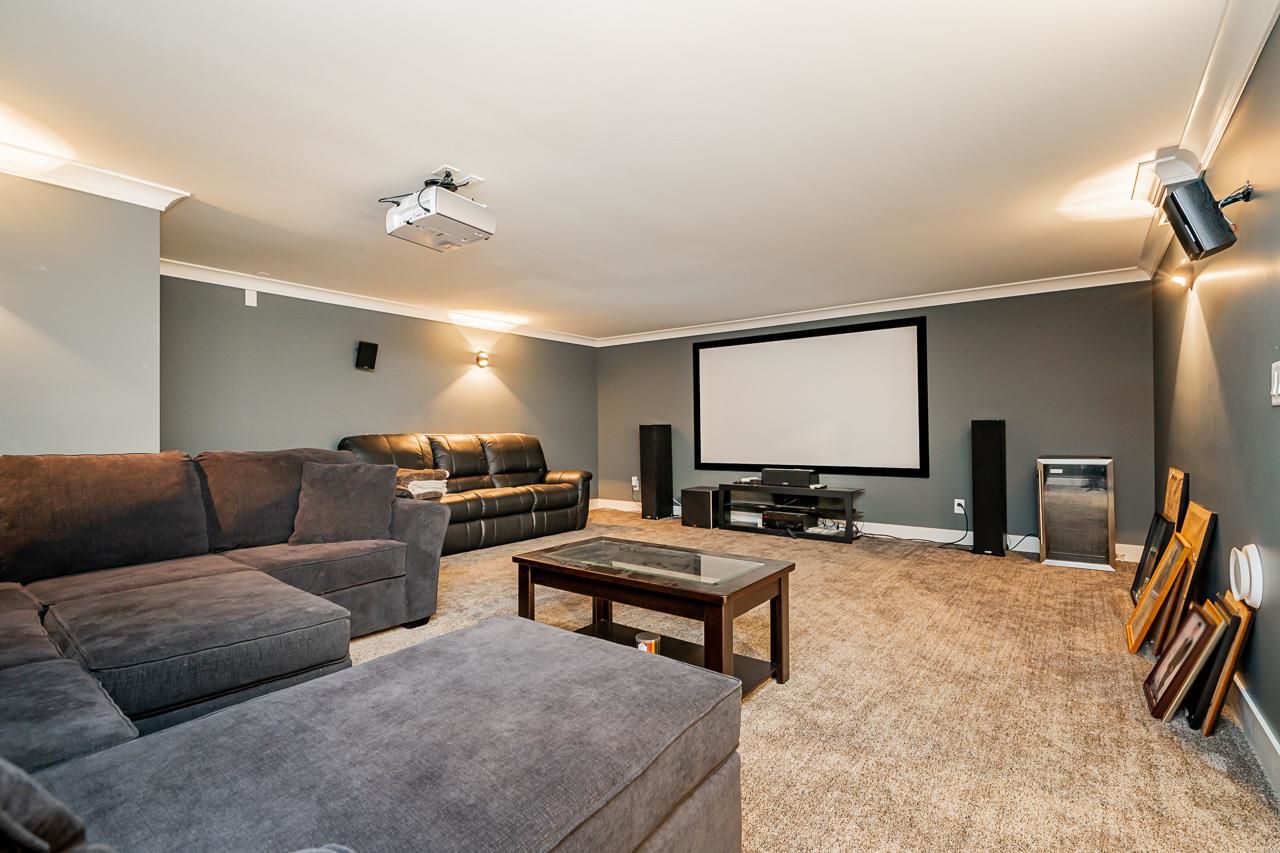 This is one of the best custom homes built on a corner lot in Cloverdale. On the main floor there is a bedroom with it's own 2 pice bathroom, Livingroom with fireplace, dining area and laundry. Beautiful open concept with white kitchen that has gas stove, built in oven, microwave and white quartz countertops. Upstairs you will find not just one but two Primary bedrooms with also a family room & another bedroom. Extensive crown molding with 10 foot ceilings, sound proof Theatre room downstairs and a 2 bed legal suite. Double garage with RV parking. You will fall in love with this home once you step into it. Do not hesitate to view today.