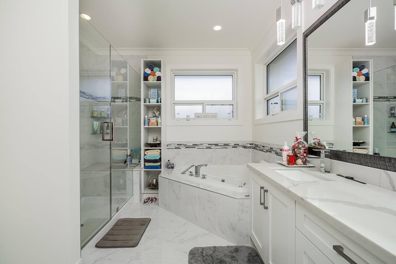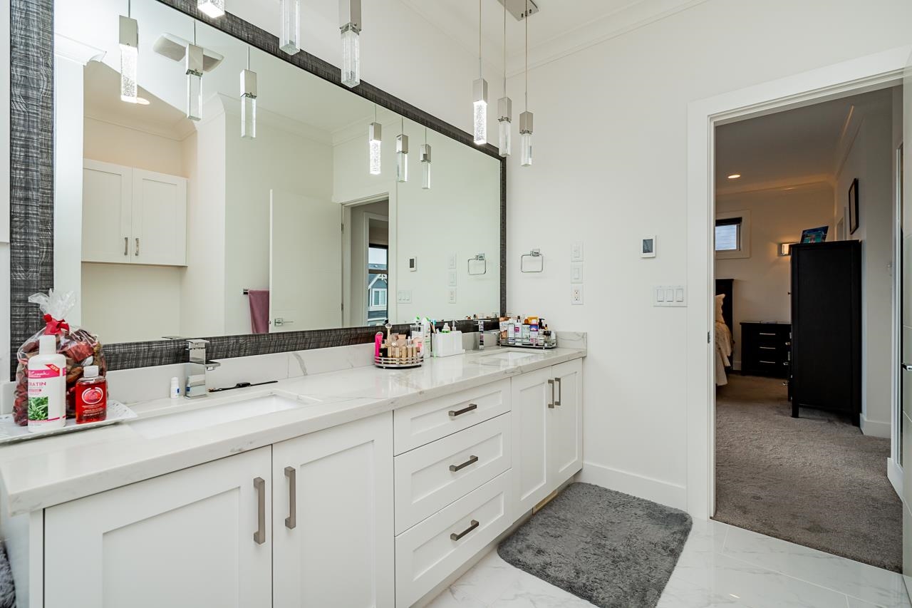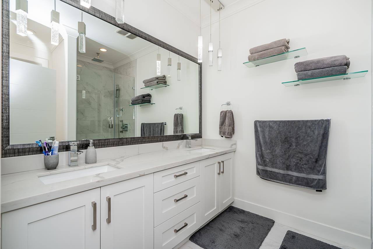 This is one of the best custom homes built on a corner lot in Cloverdale. On the main floor there is a bedroom with it's own 2 pice bathroom, Livingroom with fireplace, dining area and laundry. Beautiful open concept with white kitchen that has gas stove, built in oven, microwave and white quartz countertops. Upstairs you will find not just one but two Primary bedrooms with also a family room & another bedroom. Extensive crown molding with 10 foot ceilings, sound proof Theatre room downstairs and a 2 bed legal suite. Double garage with RV parking. You will fall in love with this home once you step into it. Do not hesitate to view today.