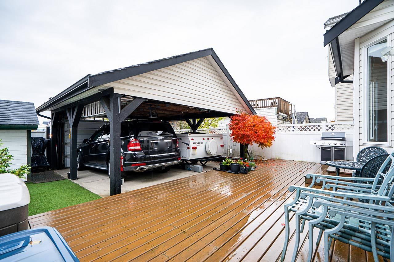 Welcome to Clover Valley Station, a Sought-after neighbourhood in booming cloverdale. This spacious 5 bedroom 4 bathroom home features 9ft ceilings on main, gas fireplace, practical layout with a bright open family room, dining area and kitchen with ample storage space.The top floor features 3 bright bedrooms including peaceful master bdrm with vaulted ceiling, walk-in closet & full ensuite. Lower level has 2 bedrooms with recreation room. Lane access to double carport has garage door for security. Close to all levels of schools, shopping, transit and Park. Future transit station will be constructed at the intersection of 184th and fraser highway. Huge potential. Do not miss. (id:22211)