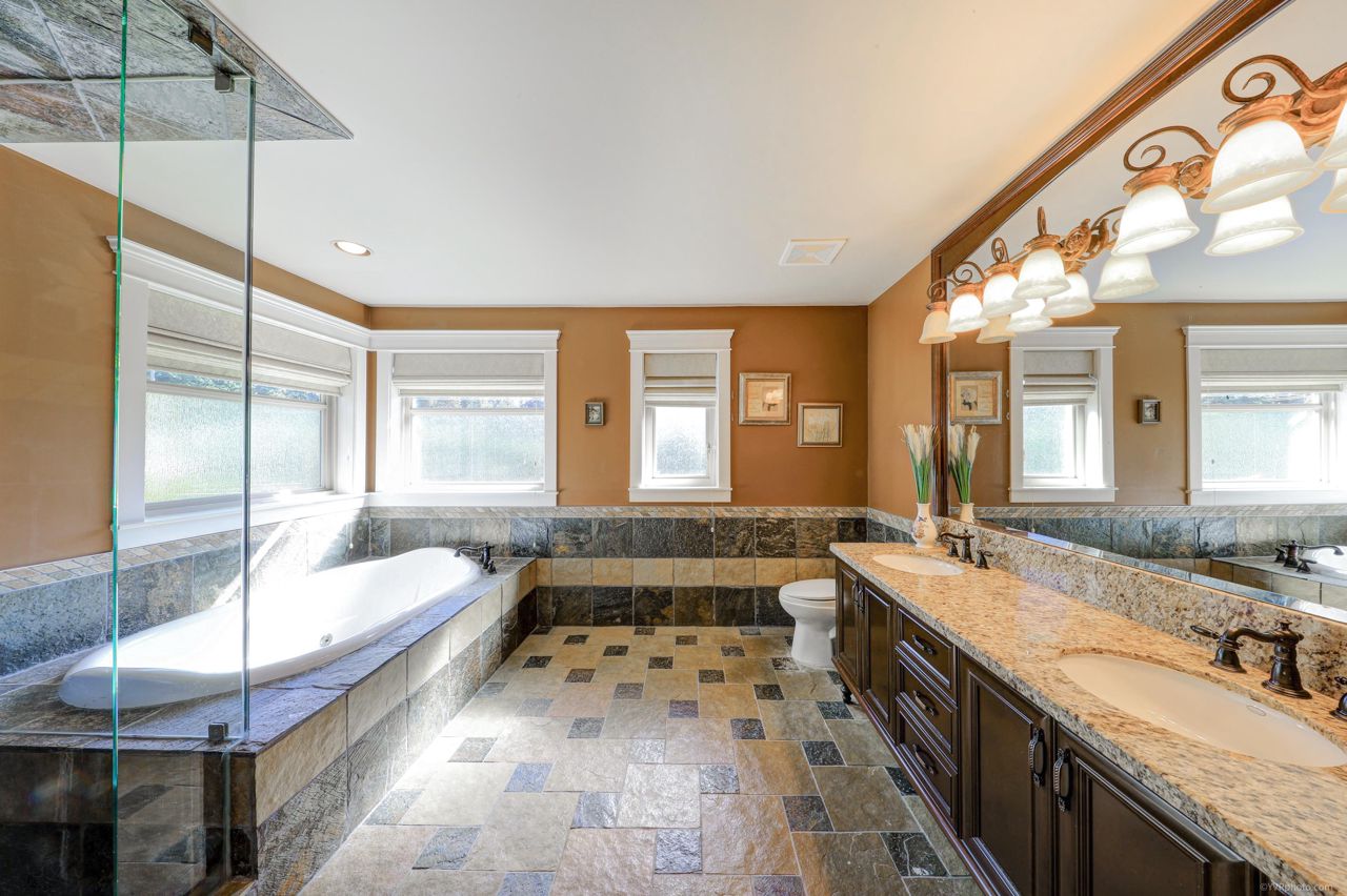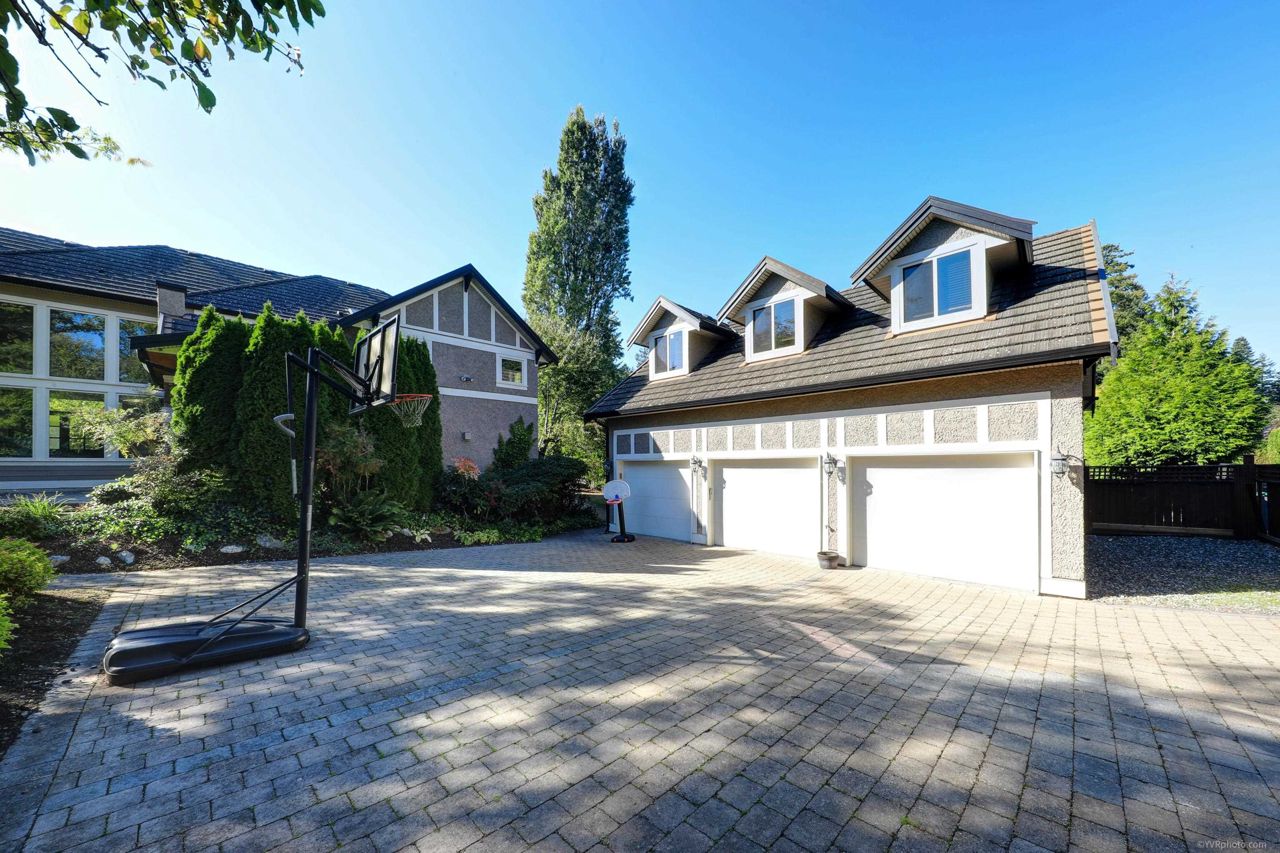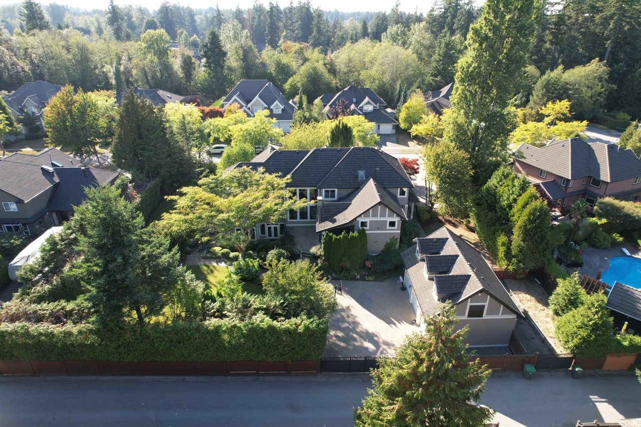 Magnificent family home in Peninsula Park! This custom built luxurious home come completes with a fully self-contained guest house. Boasting 2 master bedrooms with fabulous ensuites and WIC's (one on the main and upper level), 4 additional bedrooms (ensuited), an open kitchen with professional grade appliances plus 2nd wok/spice kitchen. Brazilian hardwood floors & custom finishes adorn this elegant home. The full walkout lower level features an exercise room, media room, spacious games room, guest bedroom and lots of storage. This exclusive estate home sits on a gated 24,001 sqft lot with three gated driveways, 5 garages, nanny/in law suite and mature landscaping. Chantrell Creek and Elgin Park school catchments. Truly the finest location in one South Surrey's most exclusive neighborhoods