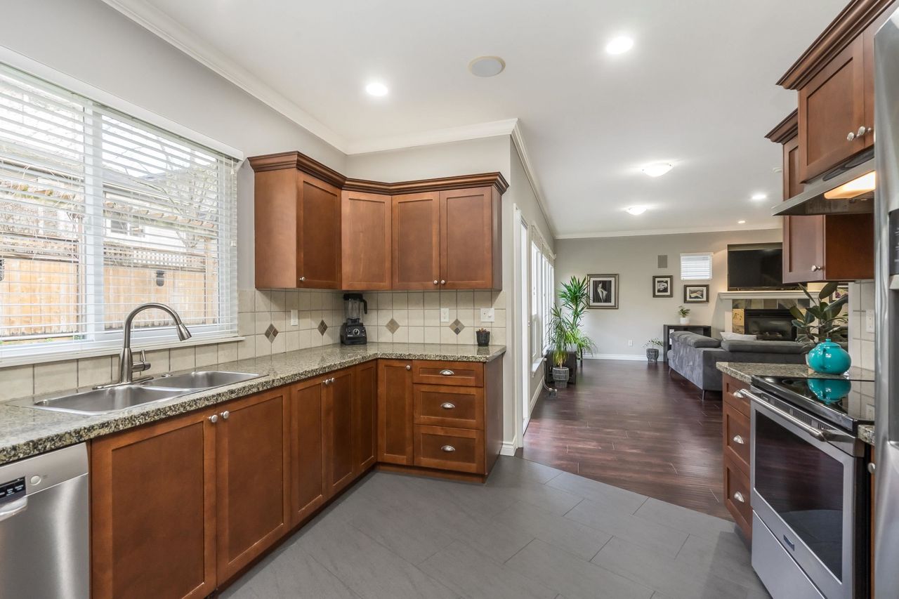 This immaculate & spacious family home is the one you have been waiting for. The main floor is an entertainer's dream and boasts an open concept plan, built-in speakers, gas fireplace and tons of natural light from the huge windows overlooking the yard. The kitchen features updated ss appliances, granite counters, a large pantry & lots of work space. You will love the large primary retreat with walk-in closet and spa-like ensuite. The additional spacious bedrooms share a Jack-and-Jill bath. The basement is more great family space with a rec-room, den and large bedroom with full bath. This move-in perfect home shows pride of ownership and is ideally located close to hwy 99, and just steps from shopping, restaurants & transit. You will love living here!