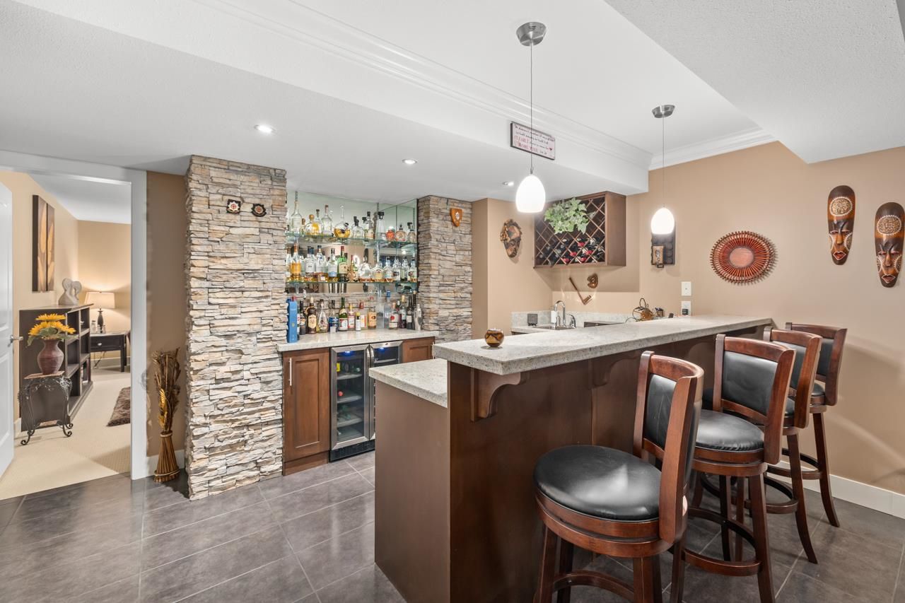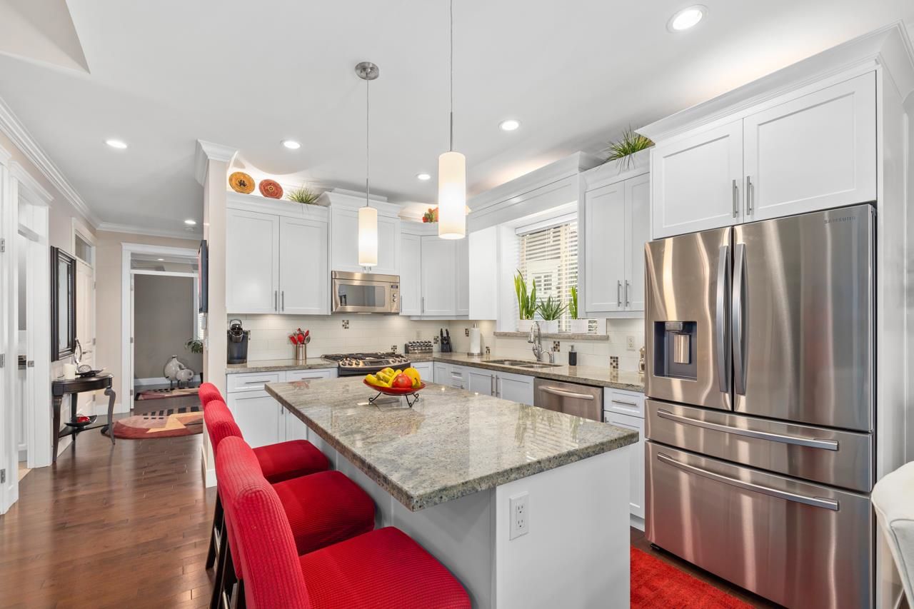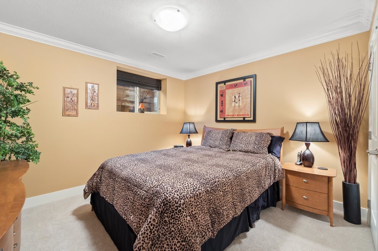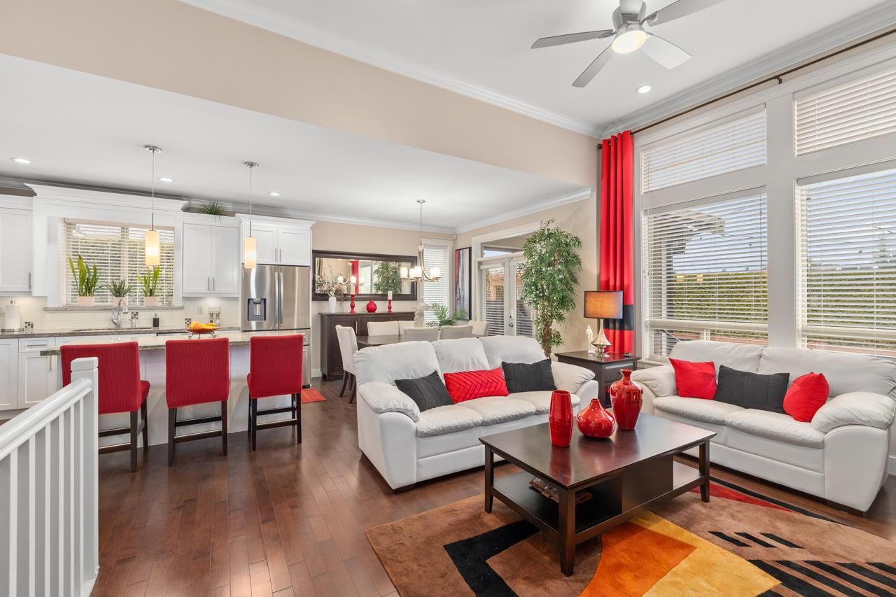 Welcome to your dream home! The deck features a ceiling-attached heater for year-round outdoor enjoyment, strategically placed backyard lights, and a tranquil waterfall. With two gas hookups, one for summer and one for winter, making entertaining a breeze. A modern heat pump ensures comfort indoors, while hardwood floors grace the main level. The primary bedroom, conveniently located on the main floor, offers accessibility and a retreat-like ambiance. This corner unit home is bathed in natural light, with a southwest-facing orientation and stunning sunset views. Upgrades abound, from the custom-designed primary ensuite with accent lights and ceiling speakers to the basement wet bar. With a very private backyard, you won't want to miss this one!