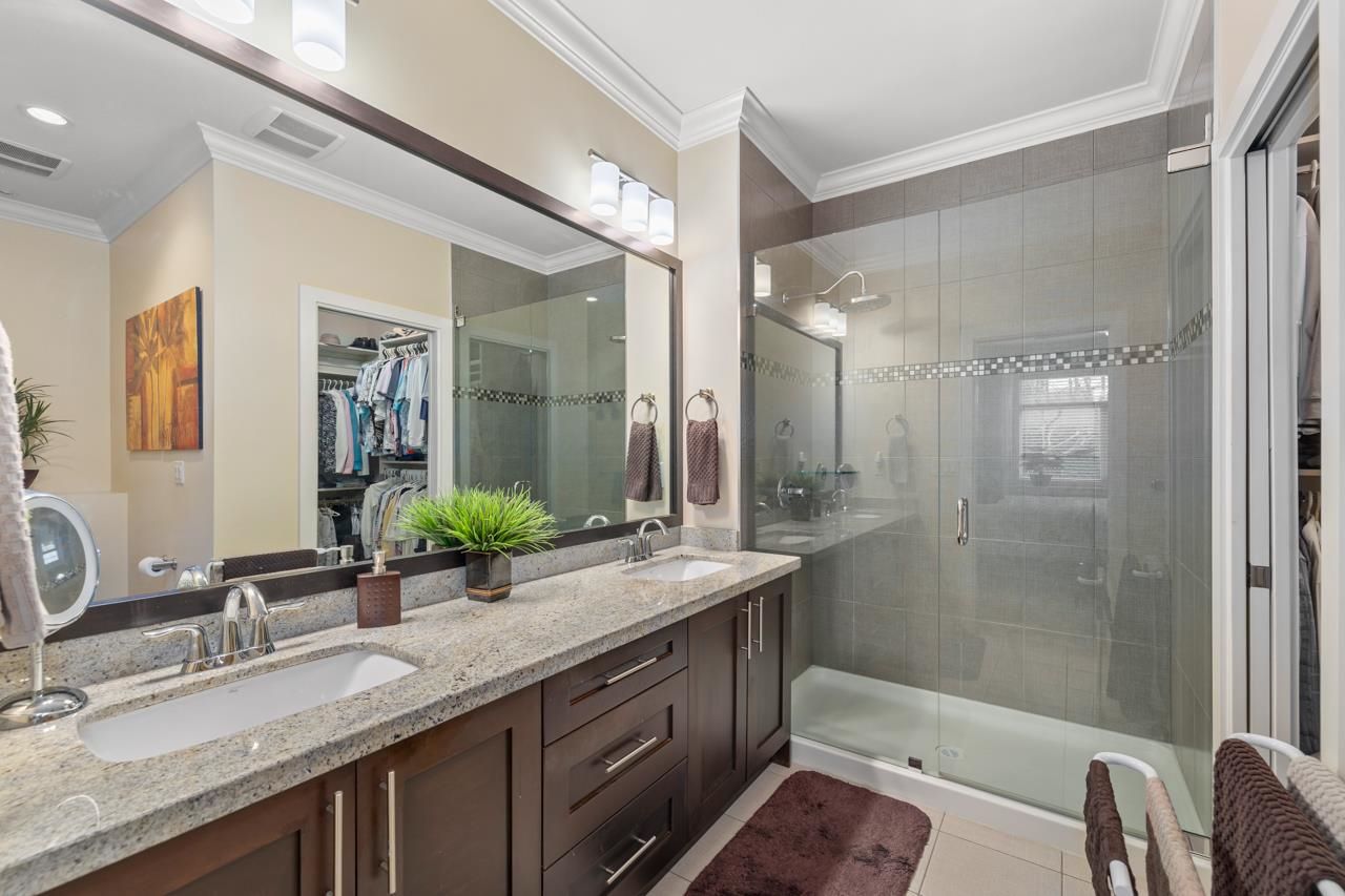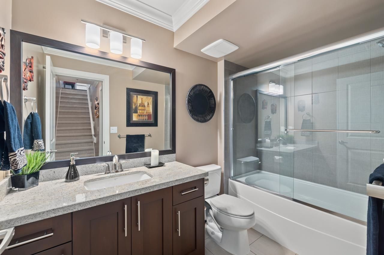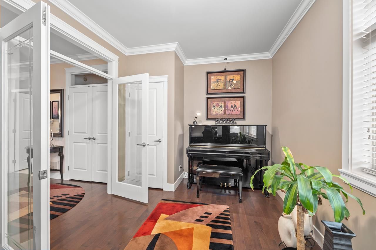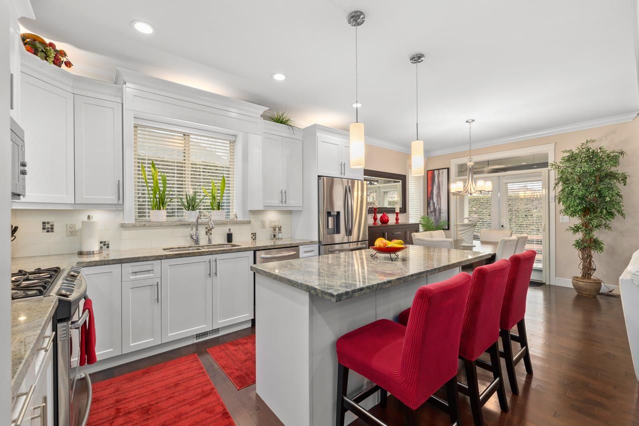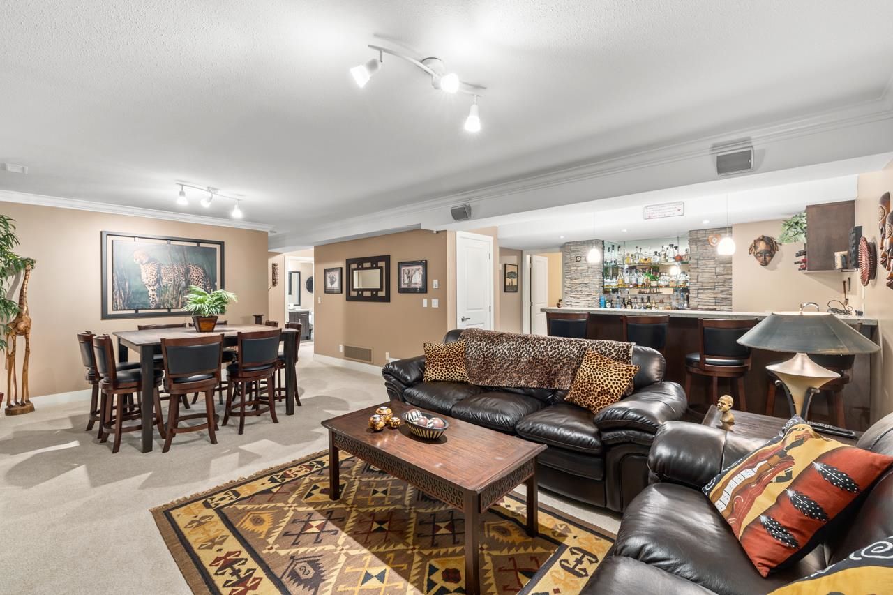 Welcome to your dream home! The deck features a ceiling-attached heater for year-round outdoor enjoyment, strategically placed backyard lights, and a tranquil waterfall. With two gas hookups, one for summer and one for winter, making entertaining a breeze. A modern heat pump ensures comfort indoors, while hardwood floors grace the main level. The primary bedroom, conveniently located on the main floor, offers accessibility and a retreat-like ambiance. This corner unit home is bathed in natural light, with a southwest-facing orientation and stunning sunset views. Upgrades abound, from the custom-designed primary ensuite with accent lights and ceiling speakers to the basement wet bar. With a very private backyard, you won't want to miss this one!