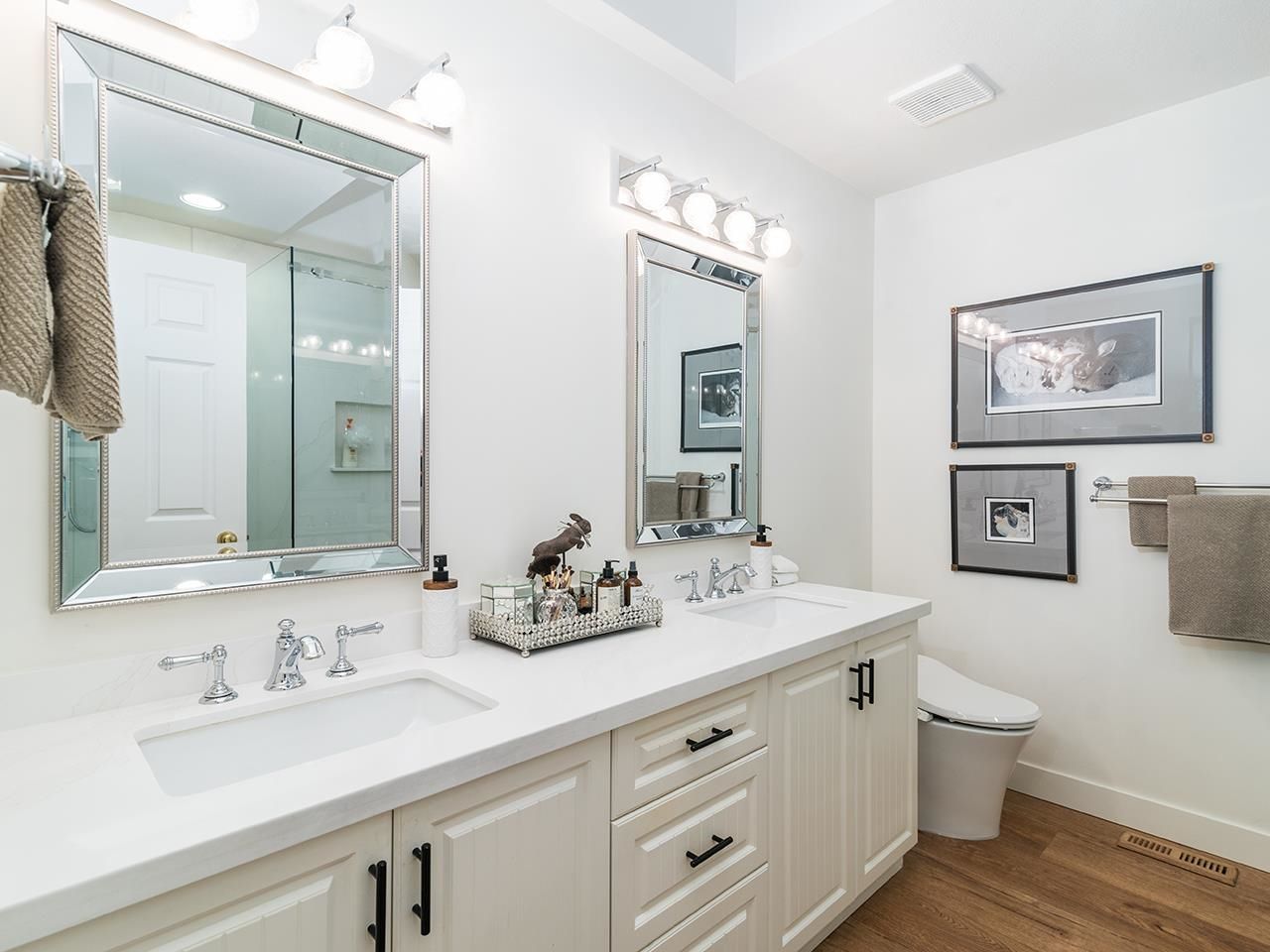EXCEPTIONAL & rarely available this Boundary Park 3488 sq ft. town home ticks EVERY box. Gorgeous home in sought after area close to EVERYTHING including trendy restaurants, coffee houses,shopping, med/dental + trails around beautiful small lake. This 3 level home is expensively updated including heat pump system, 2 yr old roof, vinyl plank flooring, lighting etc. The interior is spacious & well appointed with lg principle rooms, an updated kitchen featuring white cabinetry, quartz counters, Viking S/S appliances & E/A facing private stamped patio & fenced yd. 4 bdrms including XL Primary with 2 closets + luxurious updated en-suite with massive 3 head shower. Lower flr features amazing games & media rooms, lg bdrm + storage & laundry. Rare parking for 4. Act fast to make this your new home