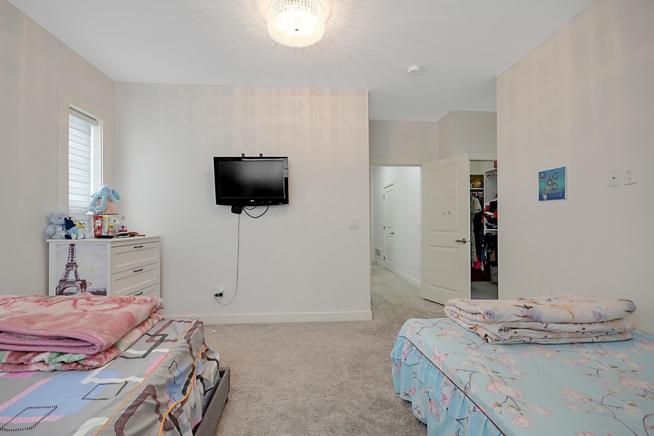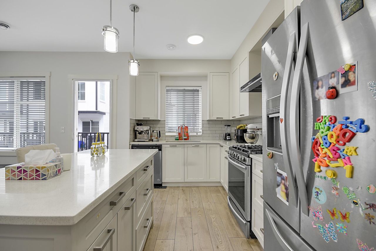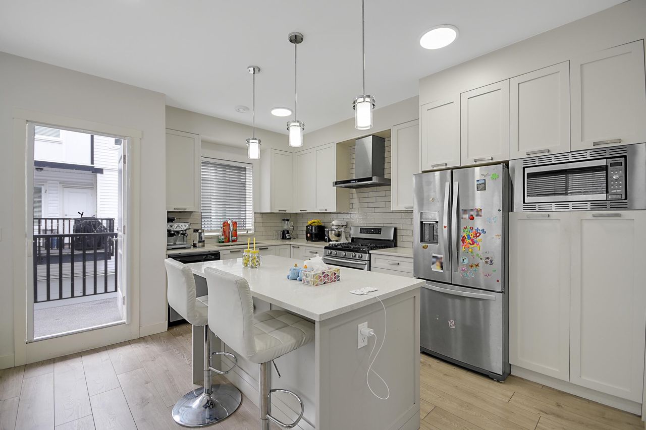 This 1,898 sq.ft. beautiful corner unit faces east on a quiet street in Panorama Mews. The bright kitchen features a natural gas stove, stainless steel appliances, granite countertops, an island & opens to a beautiful family room complete with fireplace. There are two master suites on different levels + two additional bedrooms, 2 ensuites plus 2 additional baths & quality carpet throughout. The unit has lots to space to entertain, central air-conditioning, gas BBQ hookup & a double side-by-side garage with lots of street parking right out front. Close to school, transit & easy access to Highway #10, Vancouver & USA border. Best location in Panorama.