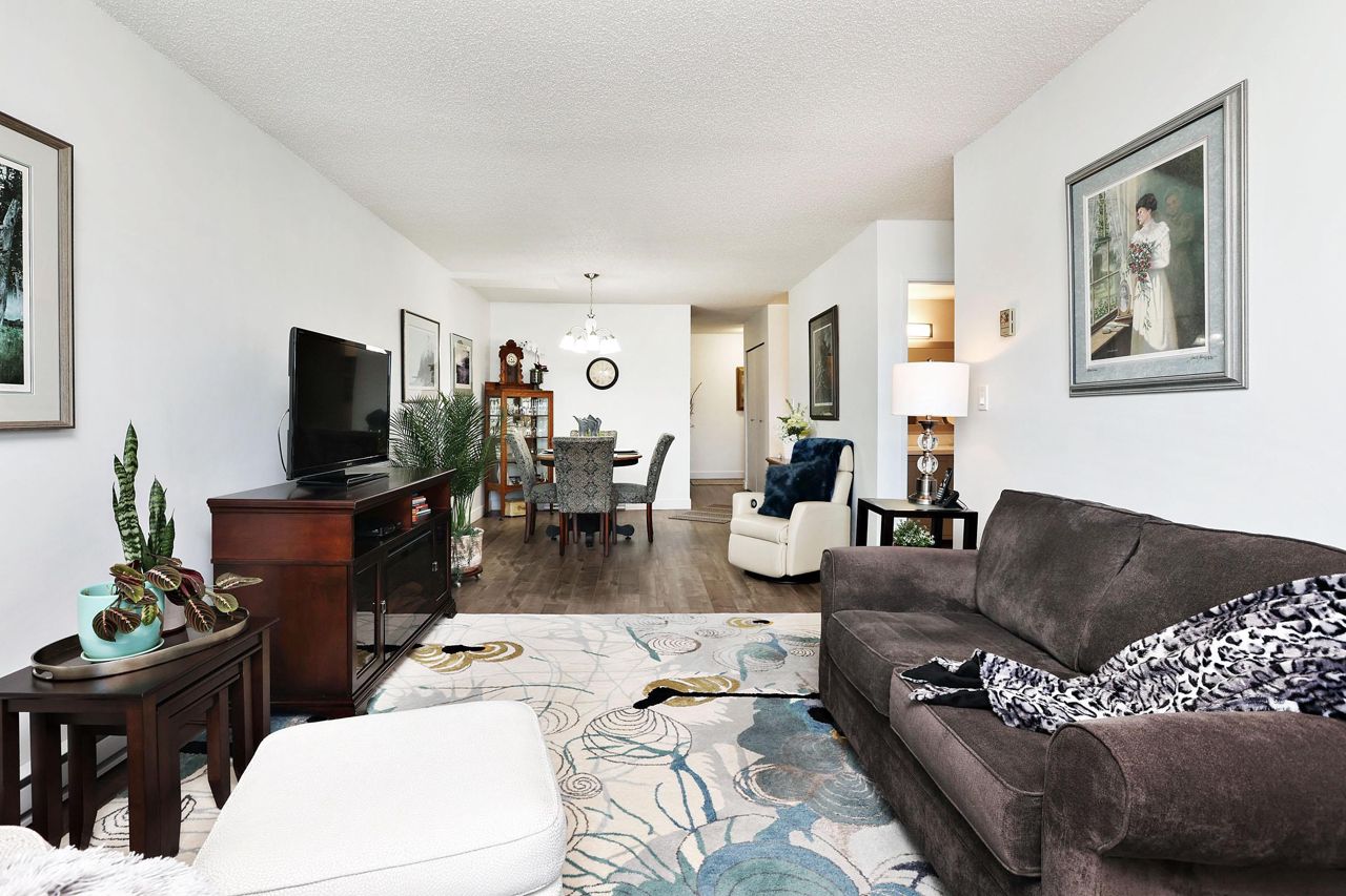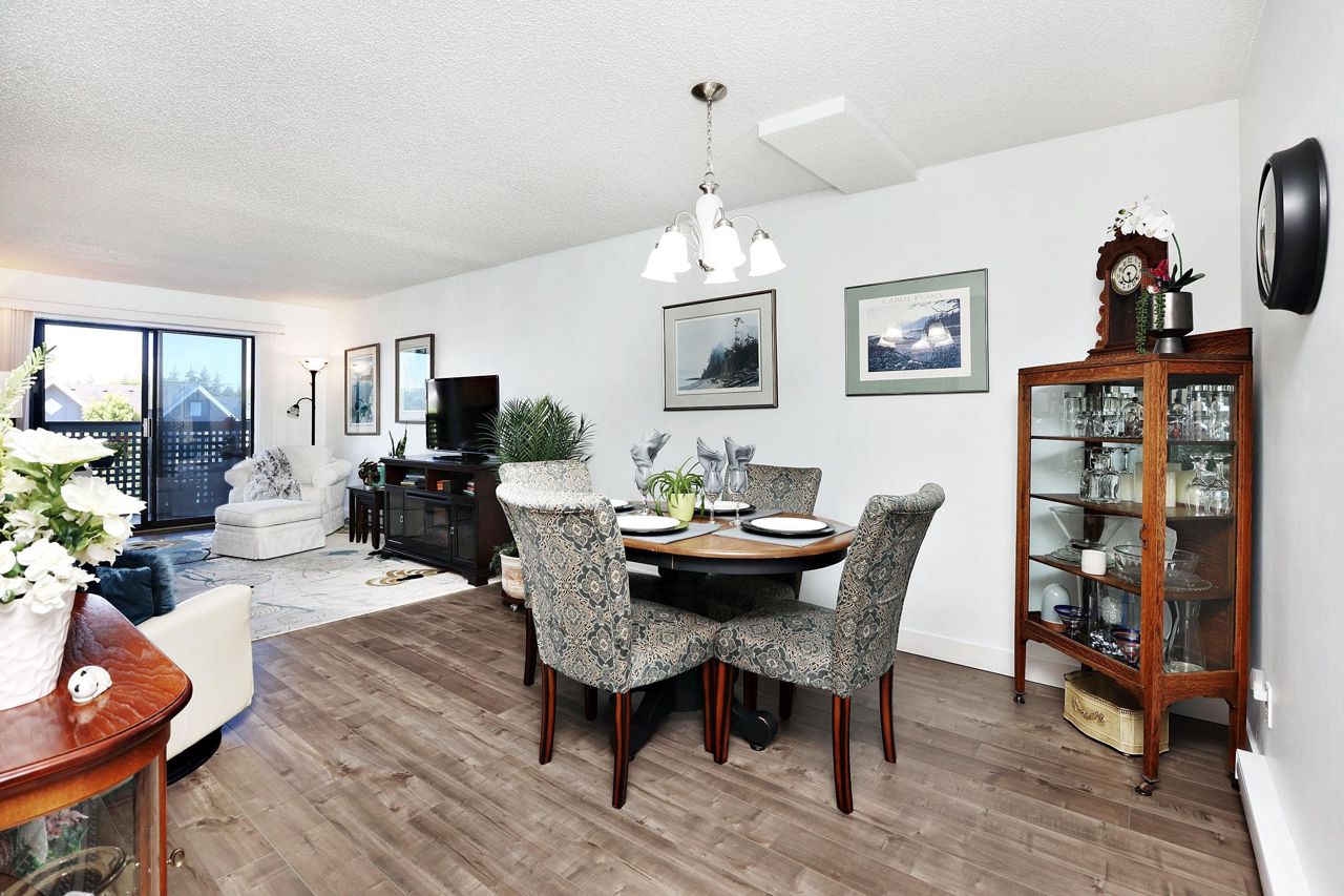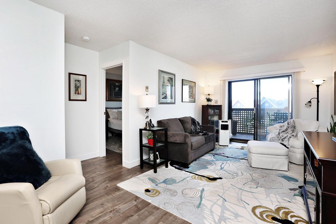 Beautiful remodelled condo with a southern view to White Rock towers from a very spacious covered balcony that extends living space. 1 spacious bedroom and den with walkin closet and could be used as a second bedroom. Top floor. Updated kitchen and bathroom. Newer appliances. Newer light fixtures. Good sized closet and laundry. Immaculate. Just move in. Fast possession possbile.