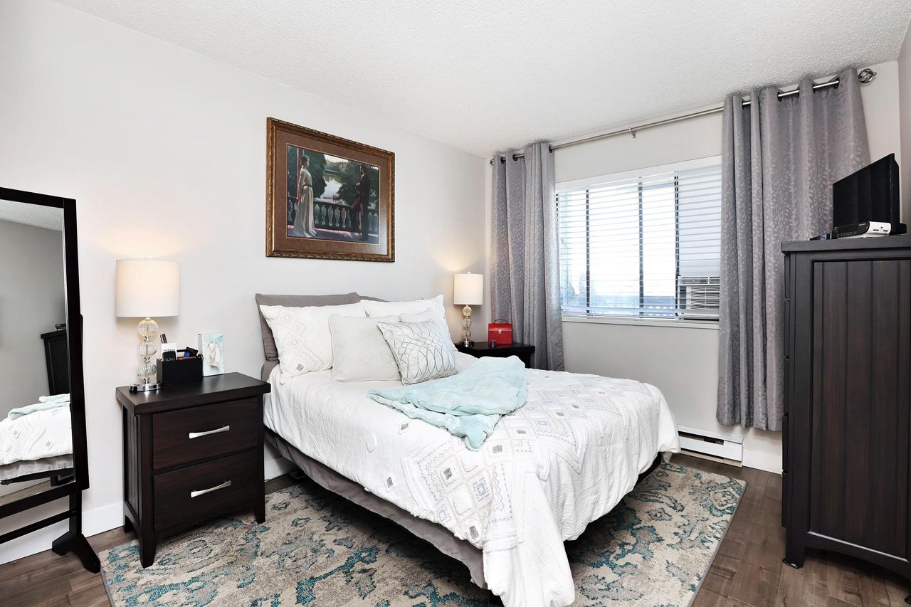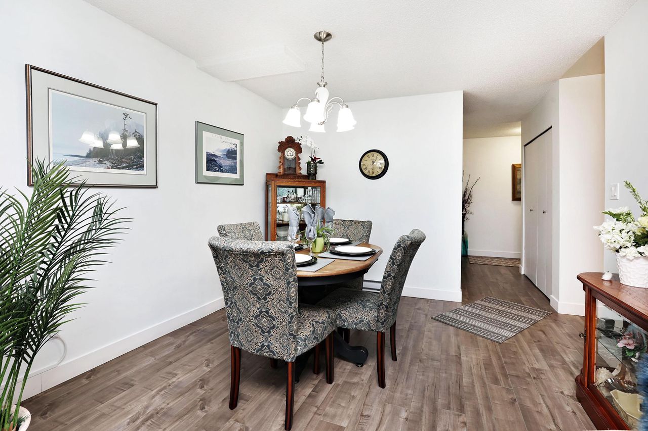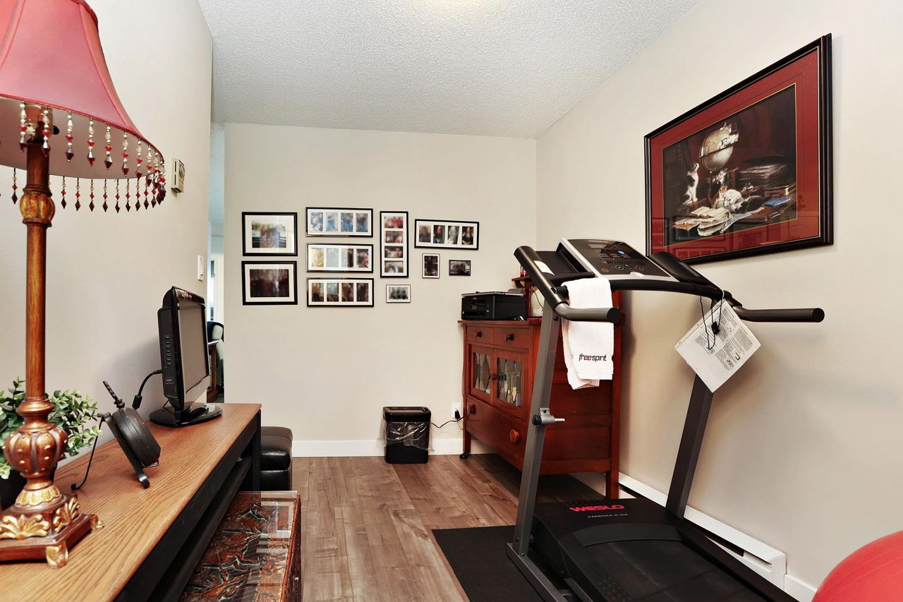 Beautiful remodelled condo with a southern view to White Rock towers from a very spacious covered balcony that extends living space. 1 spacious bedroom and den with walkin closet and could be used as a second bedroom. Top floor. Updated kitchen and bathroom. Newer appliances. Newer light fixtures. Good sized closet and laundry. Immaculate. Just move in. Fast possession possbile.