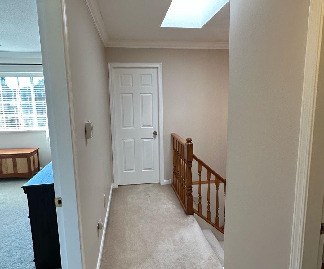 Great opportunity for executive living or downsizing adults. Stroll around a pond that is only minutes from your door. This end unit in a small 24 unit complex offering quiet privacy is only minutes from shopping, watershed park, major arterial roads to the airport and the border. This spacious 2 level property has a large primary bedroom plus 2 addition bedrooms for guests. 2 full baths with tub and shower in each with a 2pce on the main floor. Hand scraped engineered flooring, crown mouldings, spacious formal dining area, adjacent breakfast nook plus a generous family room. Park in your own double garage with additional surface parking. Loads of storage up and down. Very private and well priced for immediate sale, call NOW!