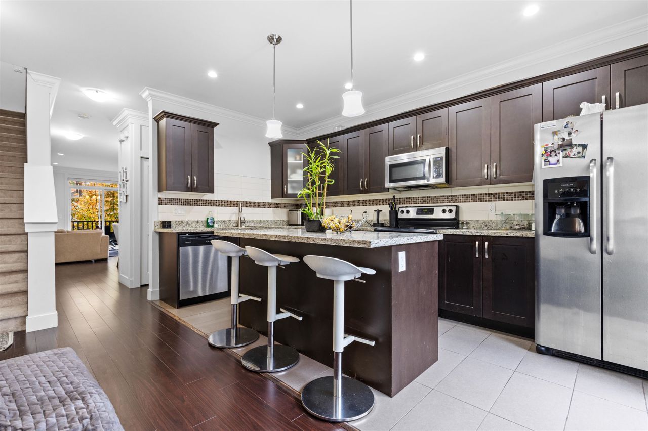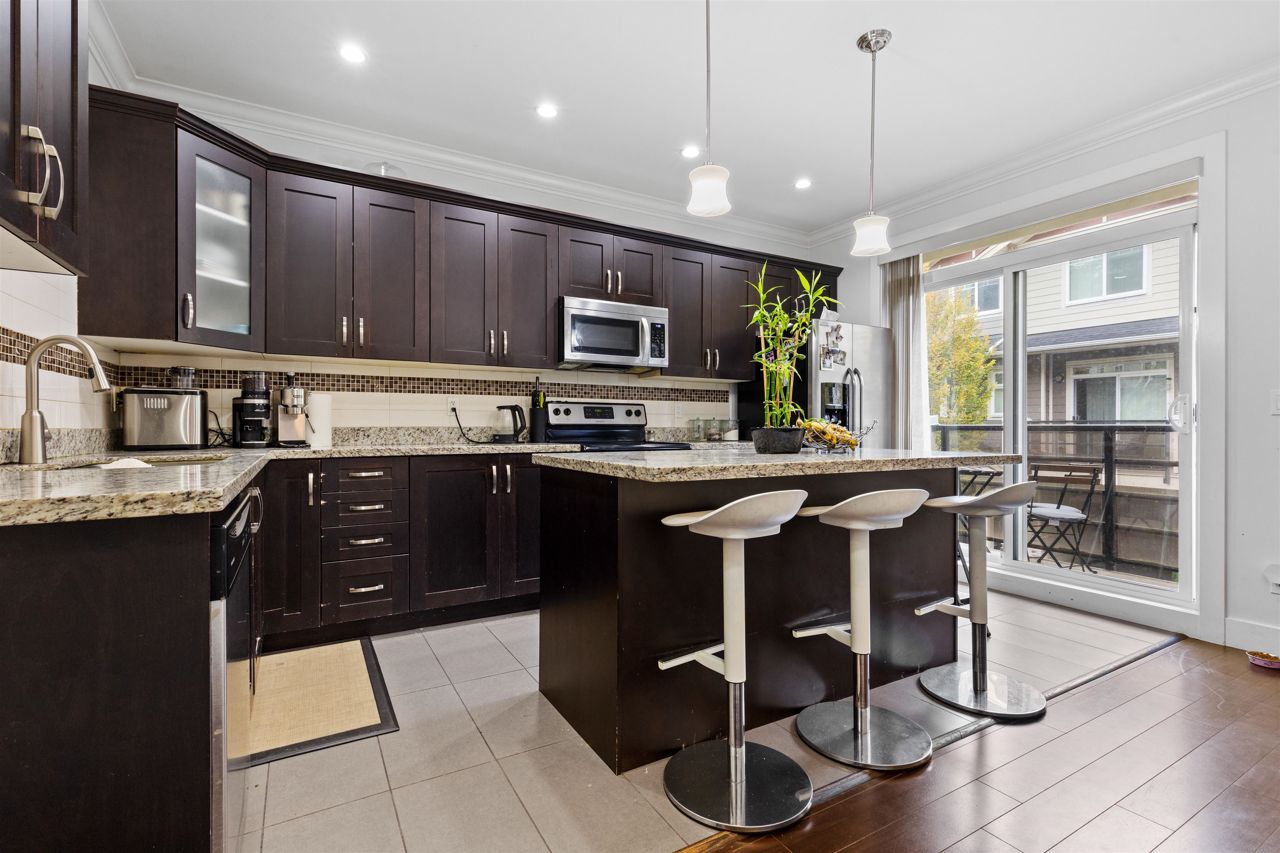 Welcome to Panorama West Village! This corner unit, executive townhome Features 4 Bed/4Bath, 2 Parking spaces (Carport+ Garage), 2 spacious balconies and backs ONTO lush green space. Upstairs, 3 bedrooms, Full bathroom, Laundry and The Master ensuite with walk in closet. The main floor features a very spacious living room with balcony access on both sides, spacious dining room, 2-piece bathroom and a Separate luxurious Kitchen with large island granite countertops, bonus balcony access from the kitchen too. With recent renovations, wainscotting on the wall, this impeccably maintained unit is sure to impress.
