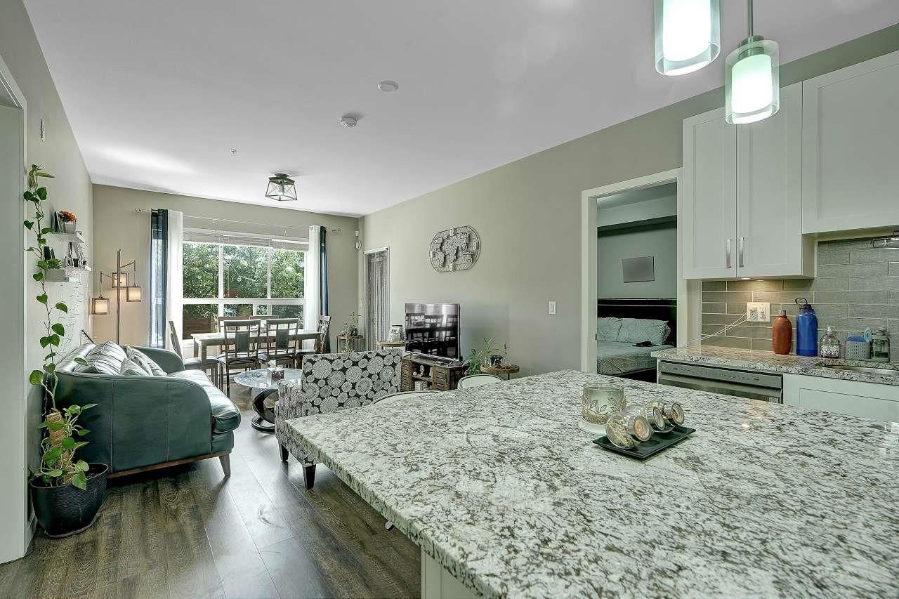 *****Waterstone living with a luxury feel in the heart of the city. This 2 bed 2 bath 912 sqft with gorgeous open concept kitchen, Granite counter-tops, premium quality shaker-style white cabinetry, stainless steel appliance package, heated bathroom floor, Master bedroom equipped w/large walk-in closet & en-suite with double sink vanity with a frame-less glass shower, built-in closet organizers, covered 110 sqft balcony, Approx. 15,000 sqft amenities include 60' indoor heated pool, hot-tub, steam room, sauna, fire pit, guest suite, 17 seat theater room, fireside lounge with deluxe kitchen and care taker. Side by Side parking stalls (147 &148) storage room around 128 sqft and 2 lockers, pets and rentals allowed. Easy access to Hwy and to USA Border. Walking distance to shopping's and parks.